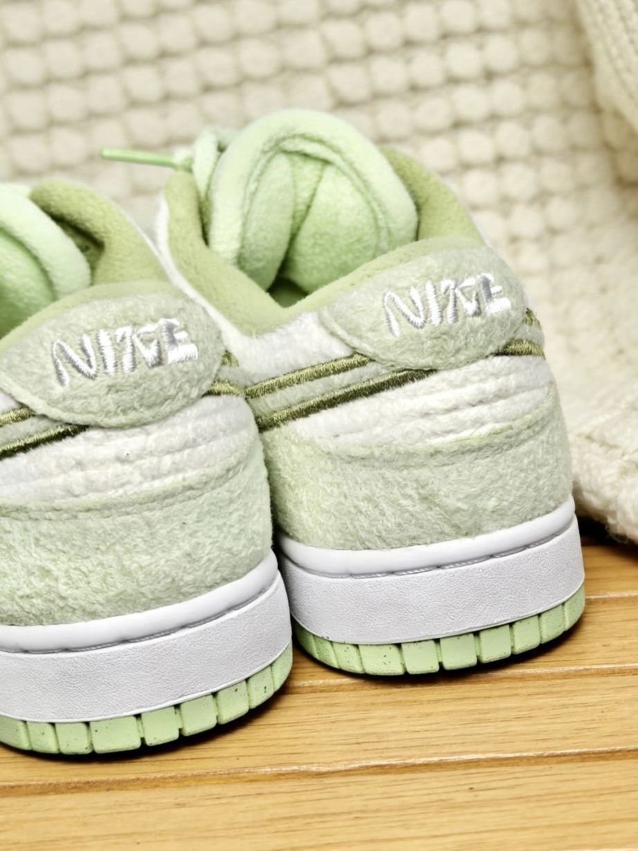 浅绿毛绒拼接+刺绣勾,软乎乎超治愈!复古Dunk版型,温柔又百搭,搭配毛衣超有氛围感,早春刚需✨