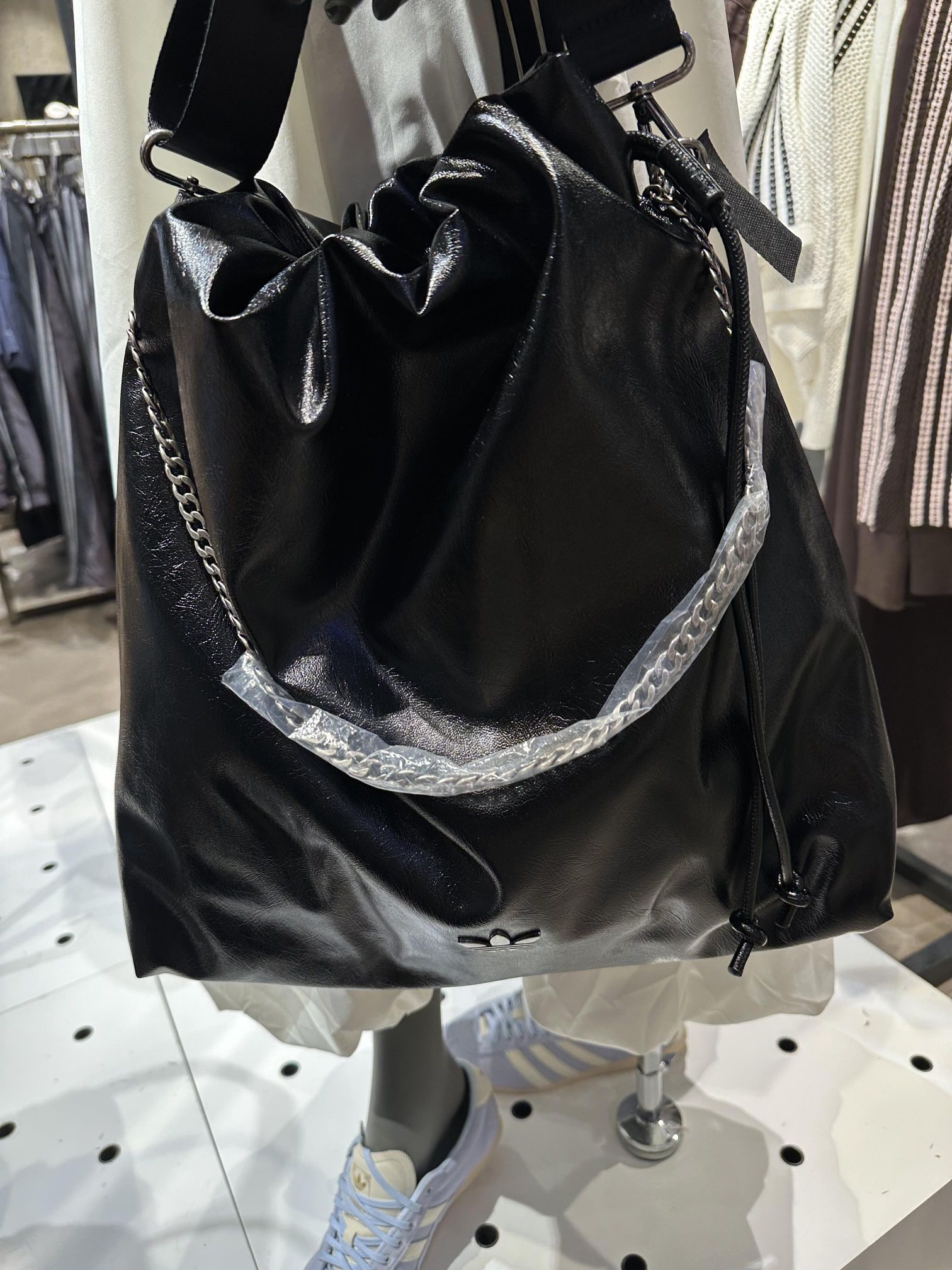 软fufu亮面皮质自带高级感, 小号尺寸更显精致利落 可单肩/可斜挎/可手拎✨ 抽绳收口+金属链条 日常出街容量刚好 三叶草细节低调又有辨识度 通勤约会都适配