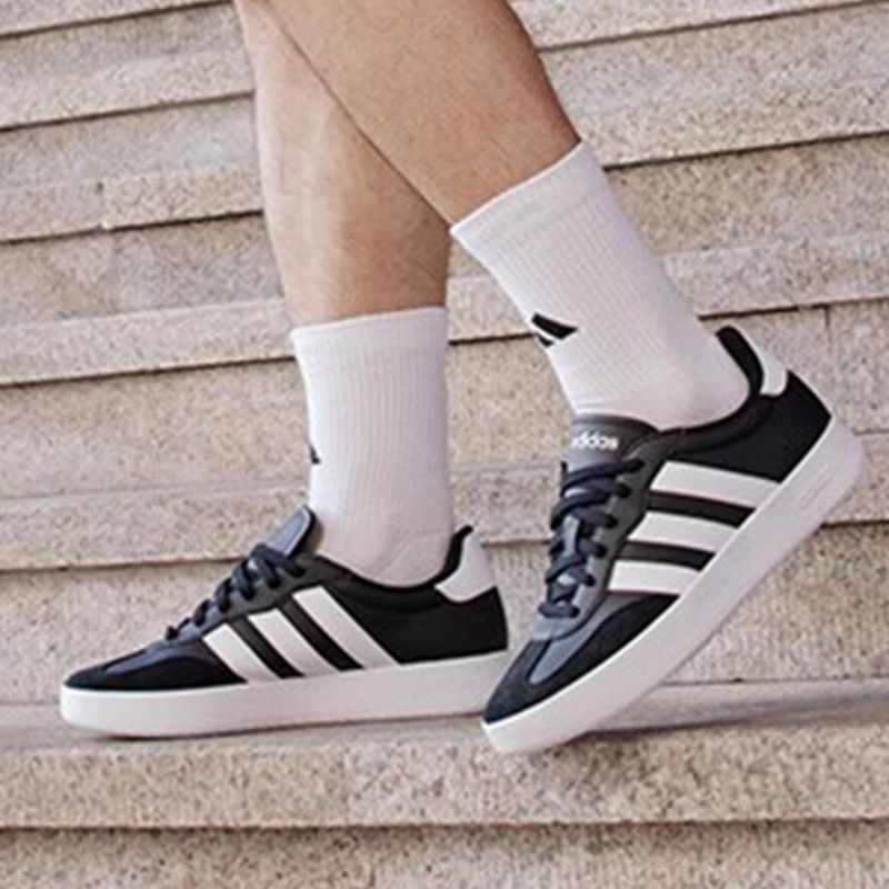 本篇笔记关联了adidas Barreda 运动休闲鞋 T头鞋 德训鞋 低帮牛剖层革薄底轻运动支撑平跟圆头 黑色/白色等商品,为用户提供真实的使用体验和购买参考。