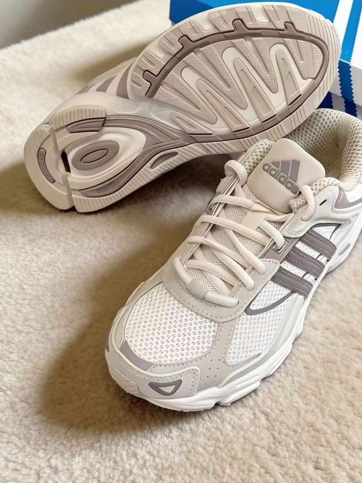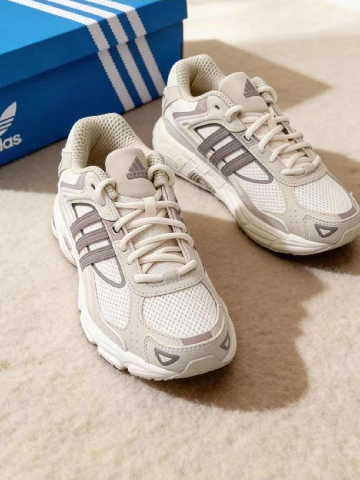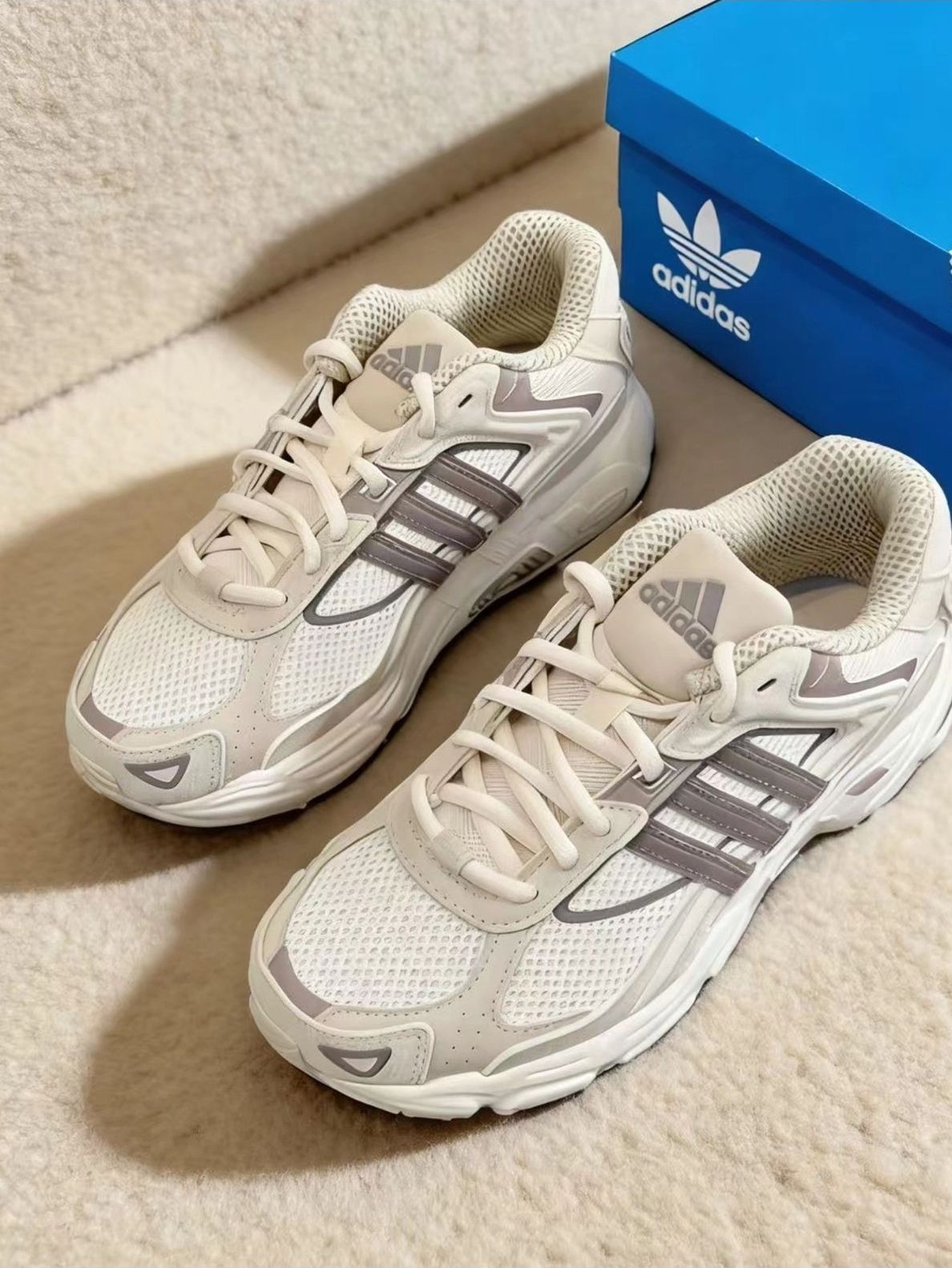 浅灰麂皮拼接鞋面,银灰三条杠经典标识点缀其中,流畅的机甲线条与厚底设计自带 Y2K 潮流感,透气网面保证夏日不闷脚,同时兼顾舒适脚感。 低帮版型轻便舒适,不管是搭配阔腿牛仔裤、运动裙还是 oversize 卫衣都很和谐,校园出行、街头潮搭都能轻松驾驭