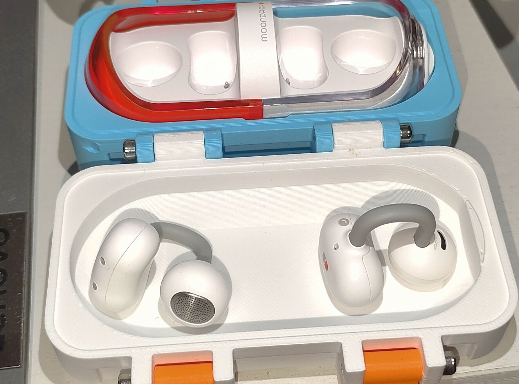 谁懂啊,跟对象出门约会想共享歌单,一人带一个耳机揣俩充电盒太麻烦,挤着分一副又戴得难受,这不就挖到宝了😭 就是这款👉水月雨 音乐胶囊PILL,开放式OWS,一个充电仓能塞下两对耳机!出门带这一个就够,不用各带各的,太省事儿了。 耳挂戴一天逛漫展逛gai都不闷,定向传声基本不漏音,水月调音也靠谱,颜值还高,放桌面跟我的卡拉手办摆一块也超搭! 情侣党想随时随地共享歌单的真可以冲,一个顶俩,轻装出门爽歪...