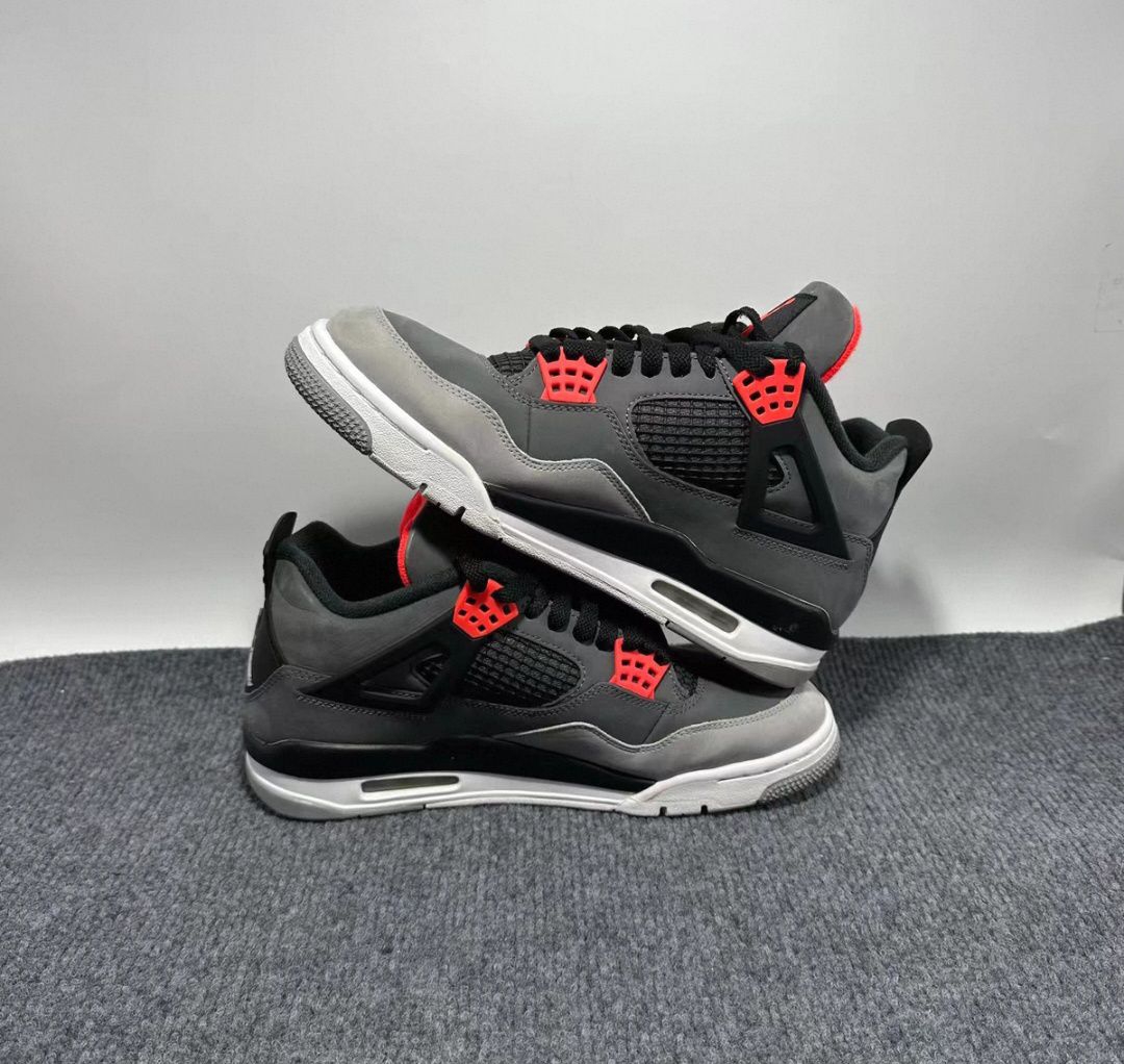 终于收到了这双 Air Jordan 4 Retro "Infrared"!作为AJ迷,这双红外线配色必须拥有名字!🏀✨ 🖤【经典黑灰红配色】 这双鞋的配色真的太绝了!大面积的黑色与灰色奠定沉稳基调,红色的细节点缀瞬间提亮整体视觉效果。既保留了AJ4硬朗的复古气质,又不会显得沉闷,上脚辨识度极高!💯 👟【颜值与质感并存】 经典的网眼面板和皮质拼接,层次感丰富。中底的红外线色调是灵魂所在,呼应鞋舌和...