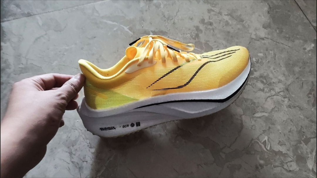 飞电4C这个正宗的黄色,上脚吸睛,脚感,抓地力稳,回弹也不错。日常通勤、运动训练和比赛,都可以穿。