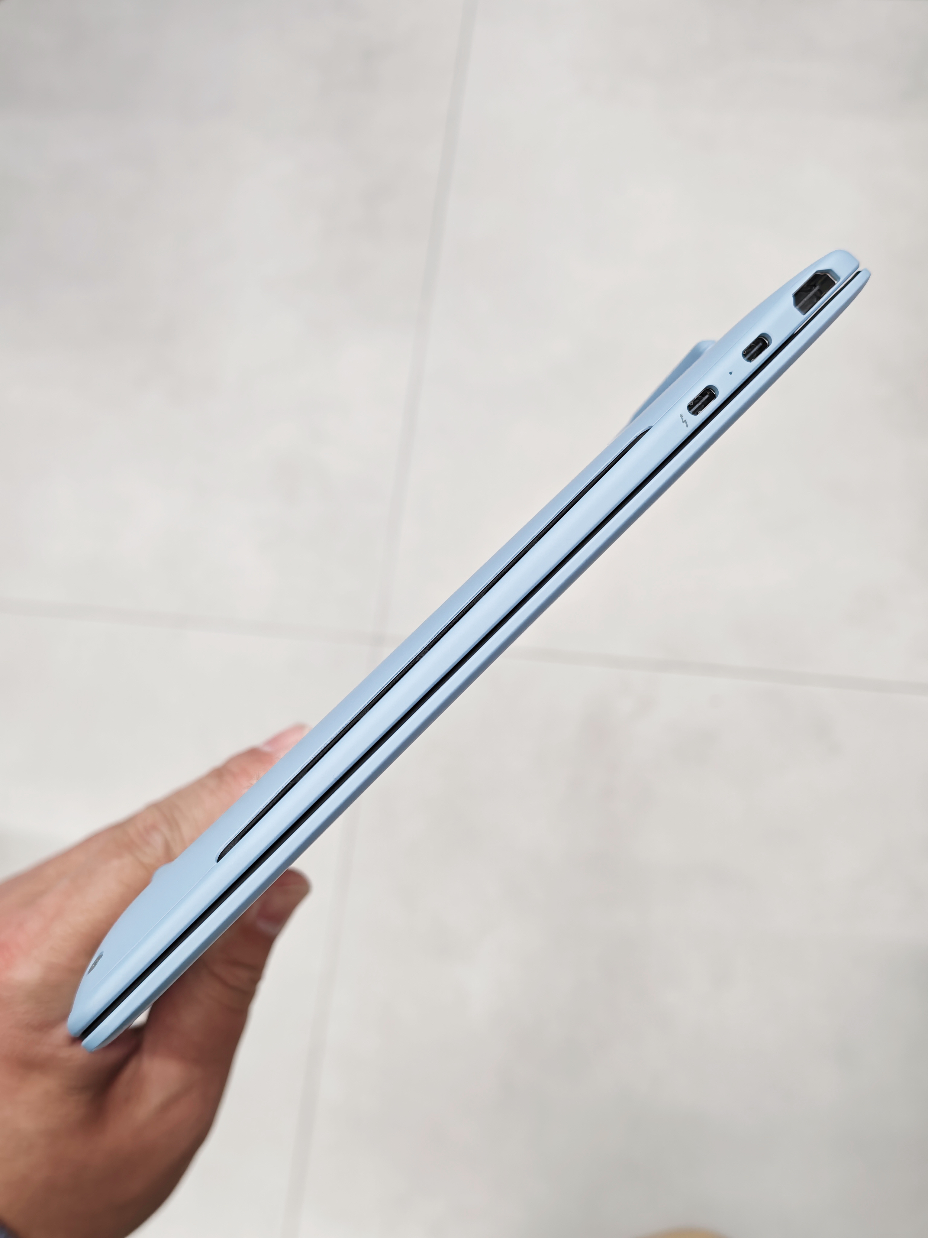 外观乍一看和华为MateBook视觉很接近,掀开后键盘布局与手感又有MacBook的味道。标配双USB-C、HDMI、USB-A、3.5mm音频口,日常不接一堆设备的话,肯定是够用的。不用多带一根拓展坞,还不影响常规使用,对于我这种出门能少带一件就少带一件的人来说,当然是满意💯的。 机身轻薄,键程表现出色,打字回弹跟手,大尺寸触控屏反应灵敏。这次只是浅浅体验了一把,至于散热表现与多程序运行能力,...