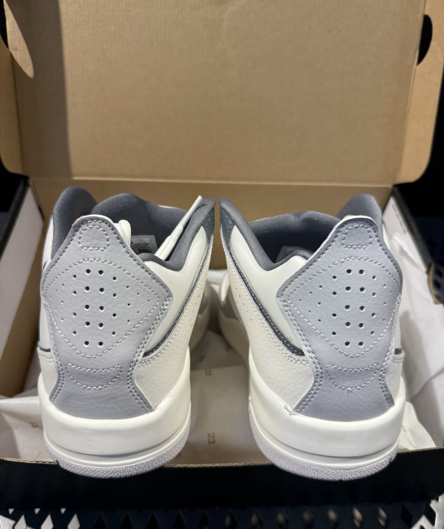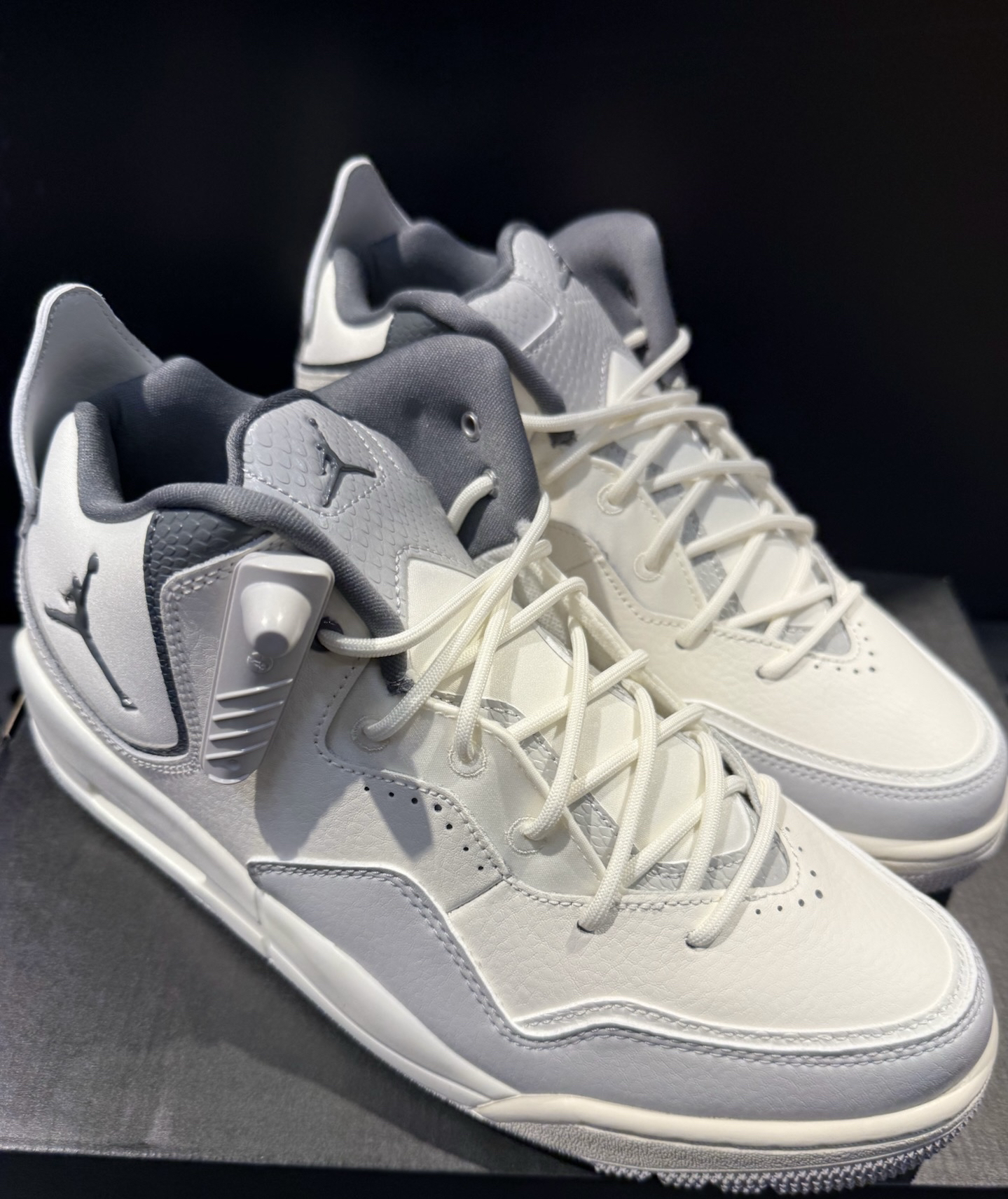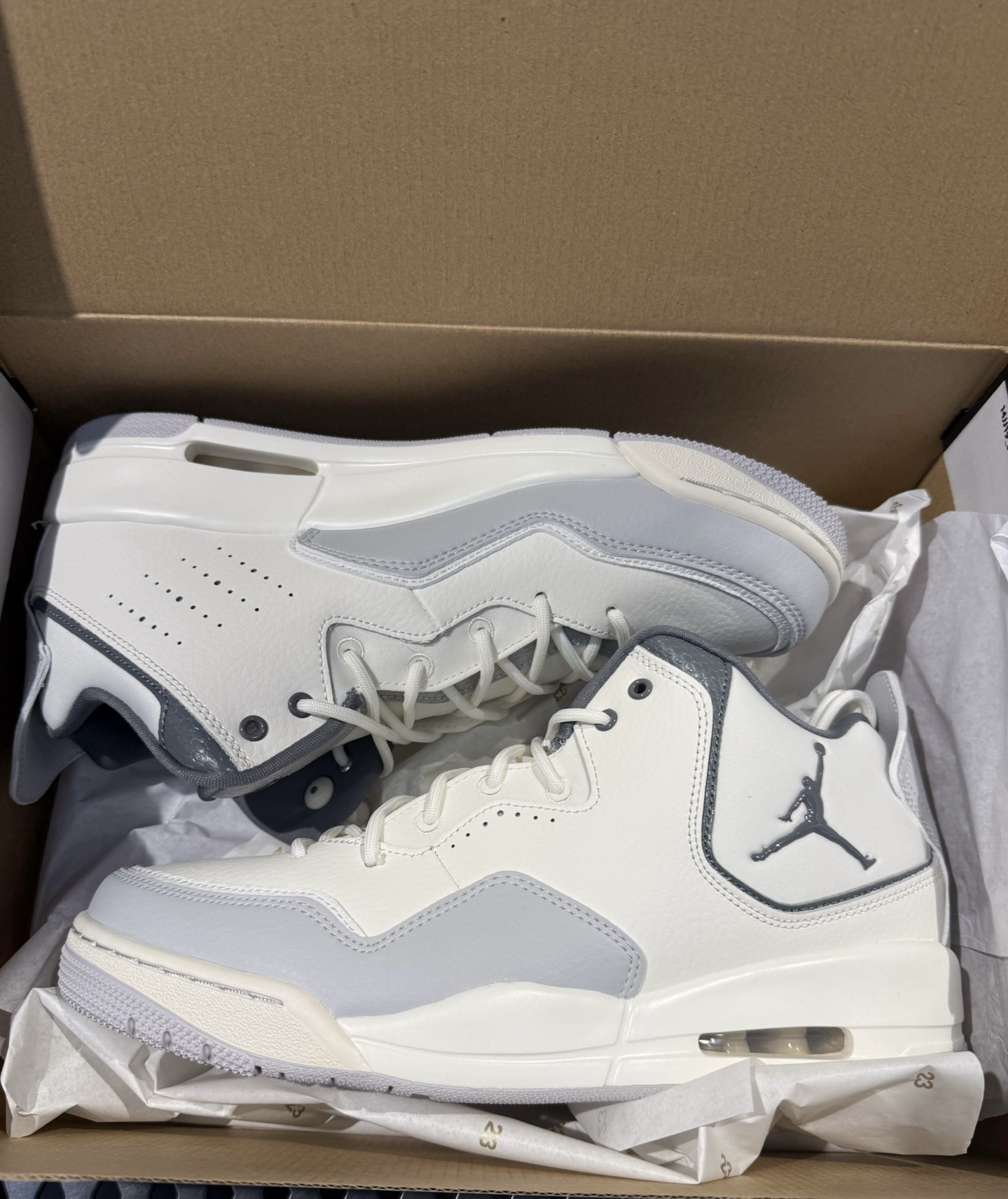 本篇笔记关联了Jordan Courtside 23 运动休闲鞋 防踢缓震潮流复古防滑耐磨支撑合成革织物人造革气垫 灰色/米白色等商品,为用户提供真实的使用体验和购买参考。