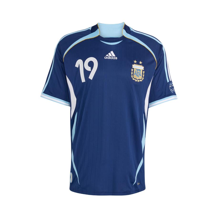 谁的青春又回来了😭 阿根廷2006年主场球衣真的太经典了 蓝白条纹+金色镶边,细节拉满💯 19号数字印在胸口,梦回那个夏天的绿茵场 阿迪达斯的复古设计真的很懂球迷的心 不管是收藏还是日常穿搭都超有氛围感 足球迷的衣柜里必须有一件这样的信仰战袍 谁穿谁是球场最靓的仔✨