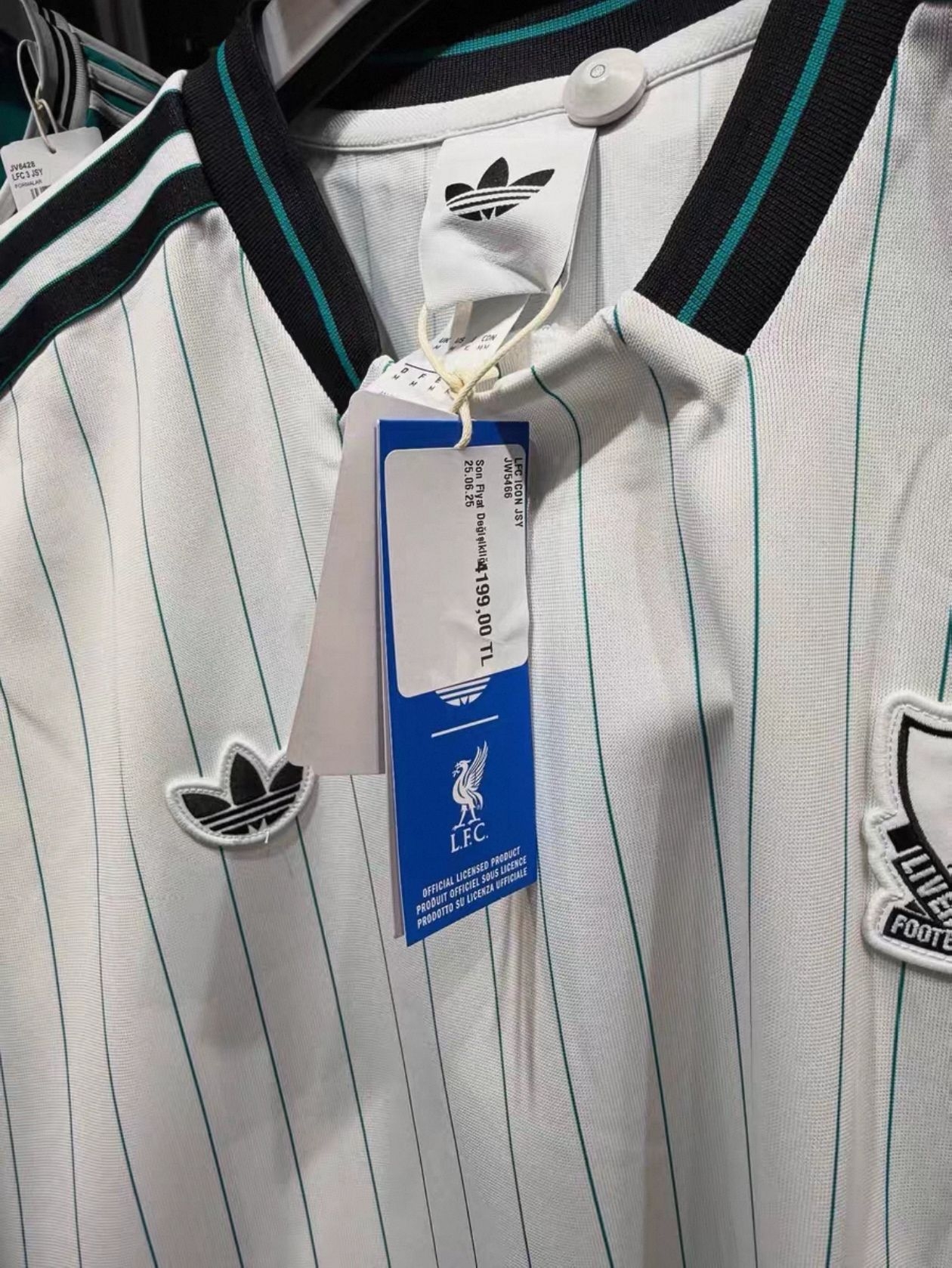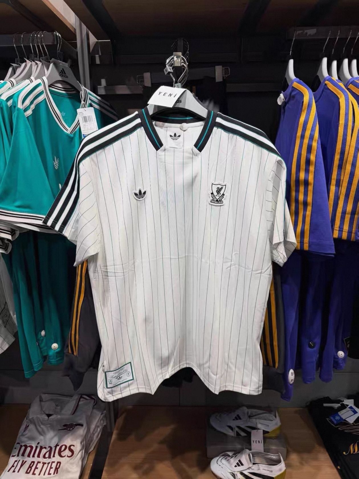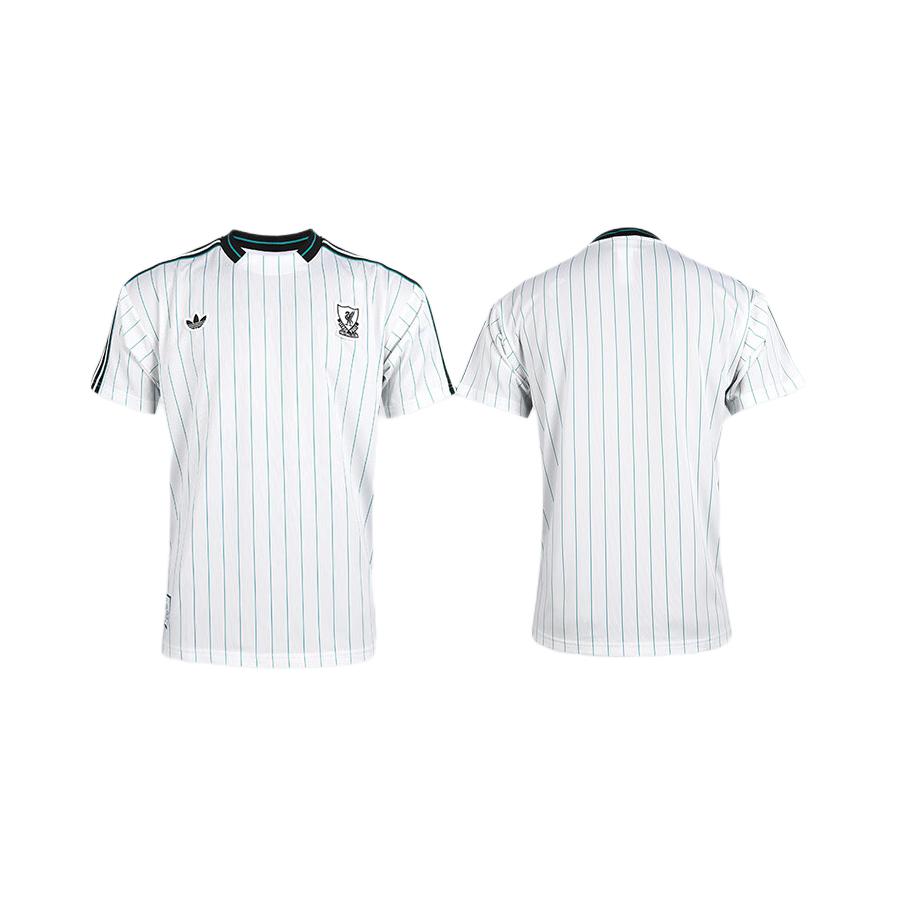 👕阿迪达斯x利物浦联名复古条纹T恤,白色底+绿色细条纹,经典又清新!胸前利弗鸟队徽+三叶草Logo,球迷身份感满满💚。速干面料,穿着舒适透气,日常或运动都OK。肩部三条纹+绿色领口,复古感拉满,少年感十足✨。搭配休闲裤or运动鞋,轻松get潮流运动风!