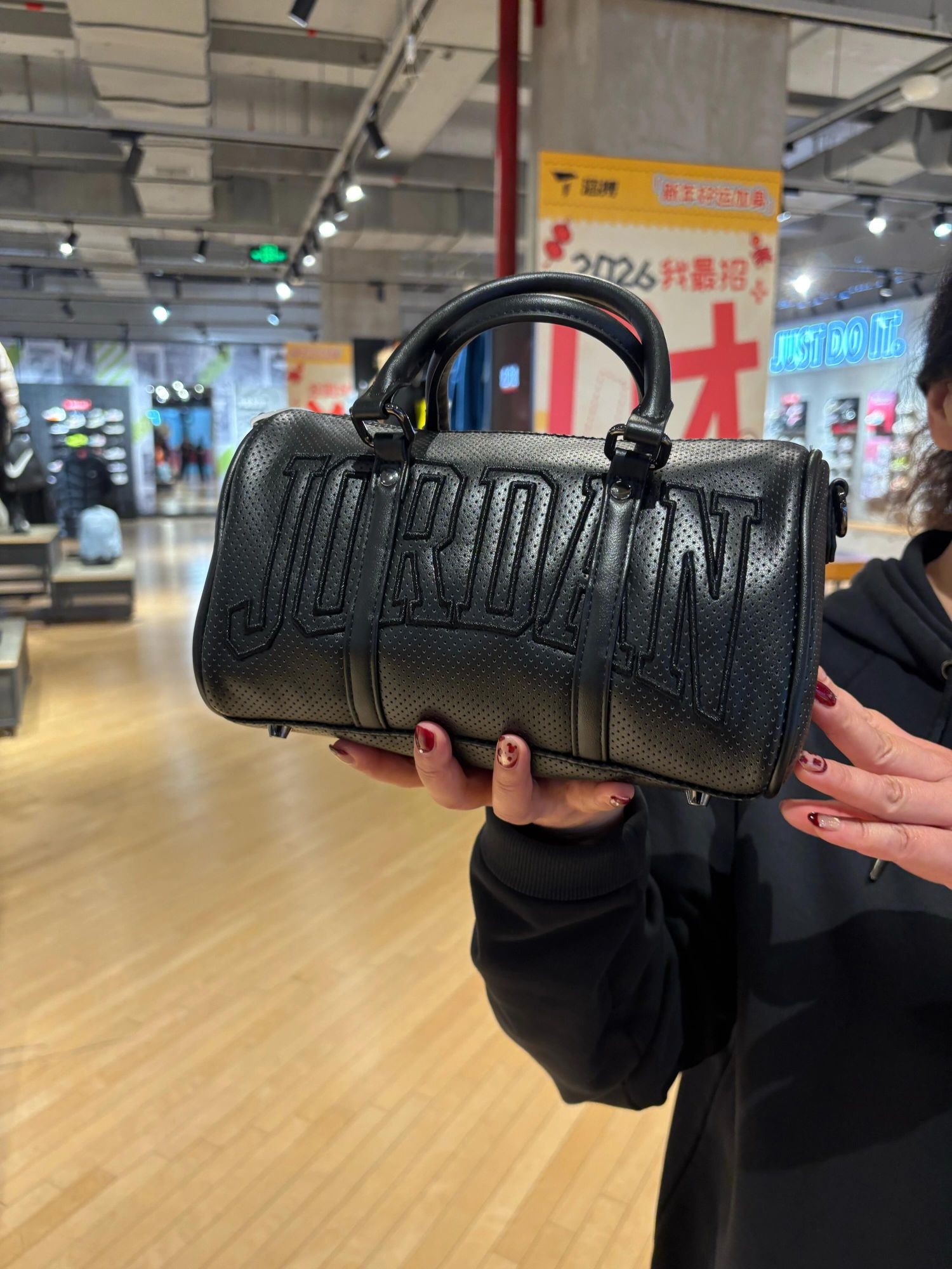 本篇笔记关联了Jordan 打孔配有刺绣字标标志可调节可拆卸肩带情侣款合成革旅行包手提包 黑色 IR8411-010等商品,为用户提供真实的使用体验和购买参考。