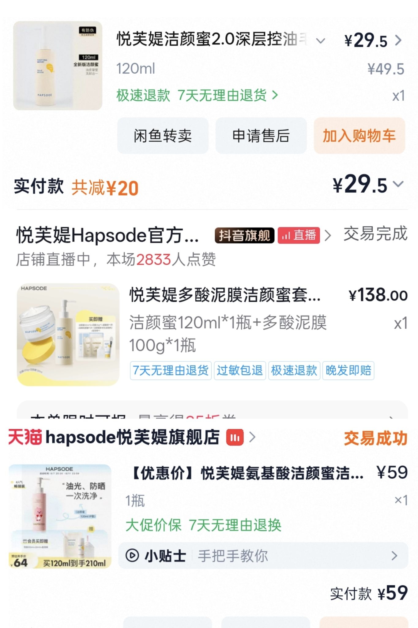 本篇笔记关联了Hapsode/悦芙媞 氨基酸晶透水感洁颜蜜 清爽去油面部清洁洗卸合一油皮敏皮 【2.0】油皮专研等商品,为用户提供真实的使用体验和购买参考。