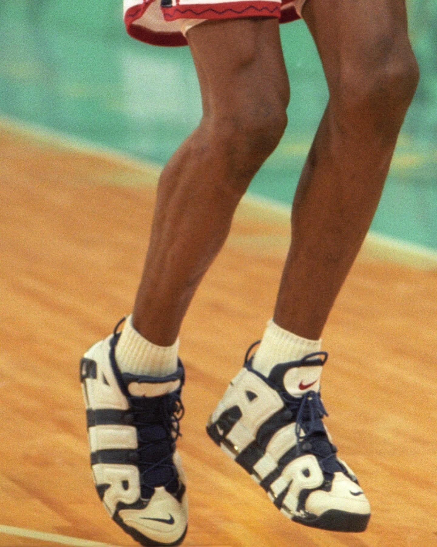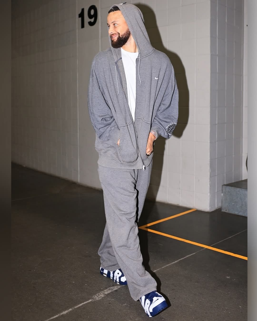 ✨ 库里最新上脚|这双奥运大Air也太有故事了! 谁能想到三分神射手库里,私下居然是复古球鞋爱好者👟 一身灰调休闲装搭配Nike Air More Uptempo 96「Olympic」配色, 瞬间把人拉回1996年亚特兰大奥运会—— 当年皮蓬穿着它,和梦之队一起拿下金牌, 鞋身的蓝白红配色,正是美国队的奥运战袍色调。 标志性的大“AIR”字母、饱满的气垫、复古的高帮轮廓, 既是90年代篮球鞋...