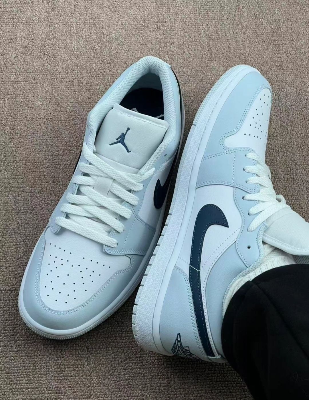 家人们谁懂啊! 小白鞋已经烂大街了,这双浅蓝AJ才是真正的“穿搭作弊器”! 浅蓝+藏青勾子的撞色,复古又干净,低帮版型直接把腿拉成2米8🦵 搭黑红条纹运动裤,秒变校园男神;配牛仔裤,通勤约会都能打! 关键是它真的太耐穿了! 不管是挤地铁、逛操场还是暴走一天,脚感舒服到不想脱下来👟 现在出门,我连香水都省了——这双鞋自带的“清爽感”,比任何香水都管用! 别犹豫了,早买早帅,晚买涨价!