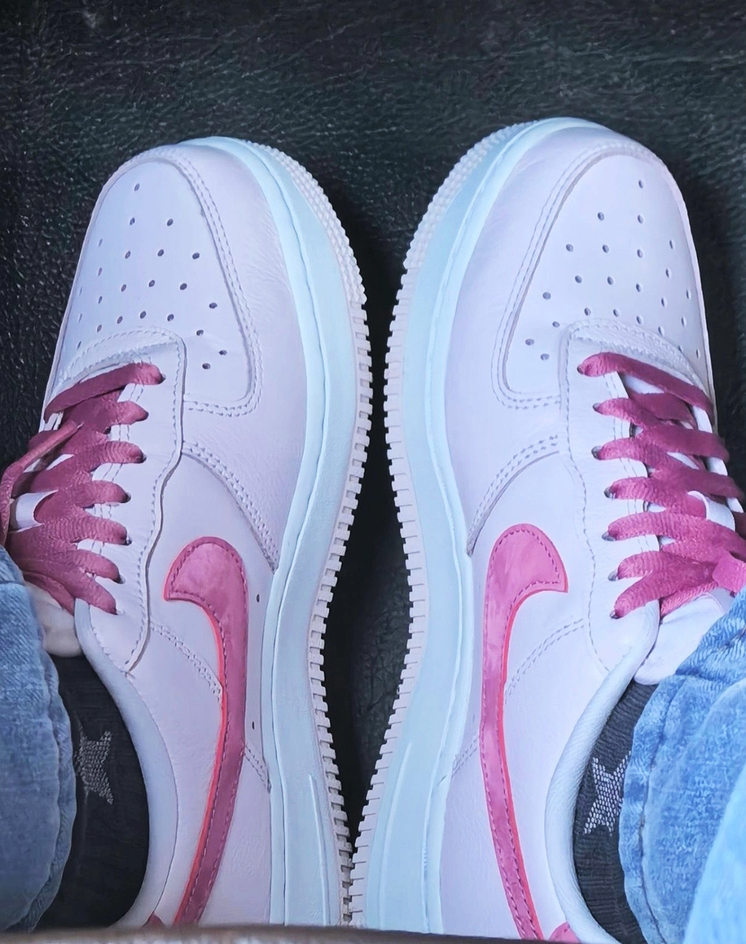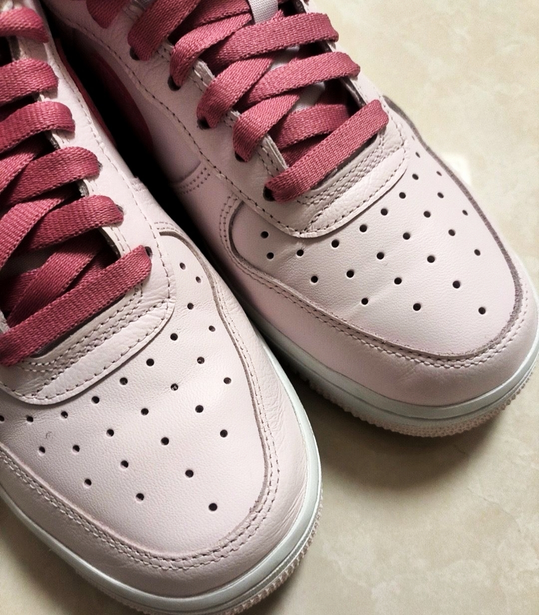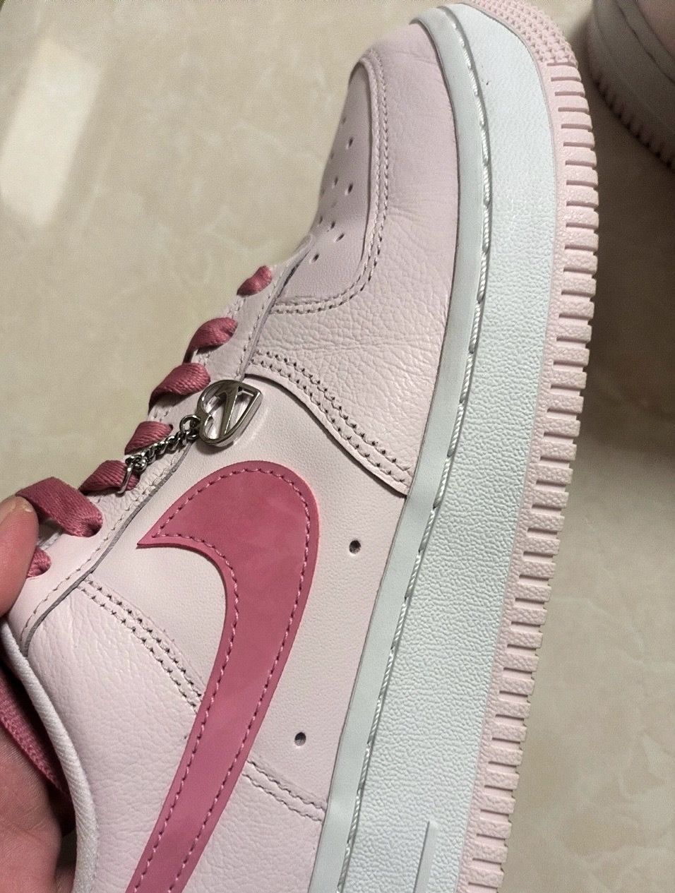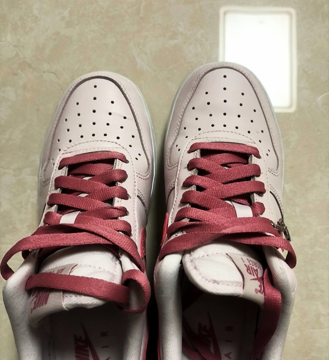 这双2026情人节限定Air Force 1,是我今年最纠结的一双鞋。 第一眼确实被戳中:浅粉皮革+玫红Swoosh,爱心吊坠挂在鞋带上,温柔又有细节。上脚后,经典的Air缓震还是熟悉的感觉,日常走路挺舒服,搭配黑裤或白裙都不突兀。 但缺点也很明显:粉色皮革特别容易显脏,稍微蹭一下就留印子,清洁起来很麻烦;鞋舌有点厚,夏天穿会闷脚;还有那个爱心吊坠,走路时会晃来晃去,偶尔会勾到鞋带,有点鸡肋。 整...