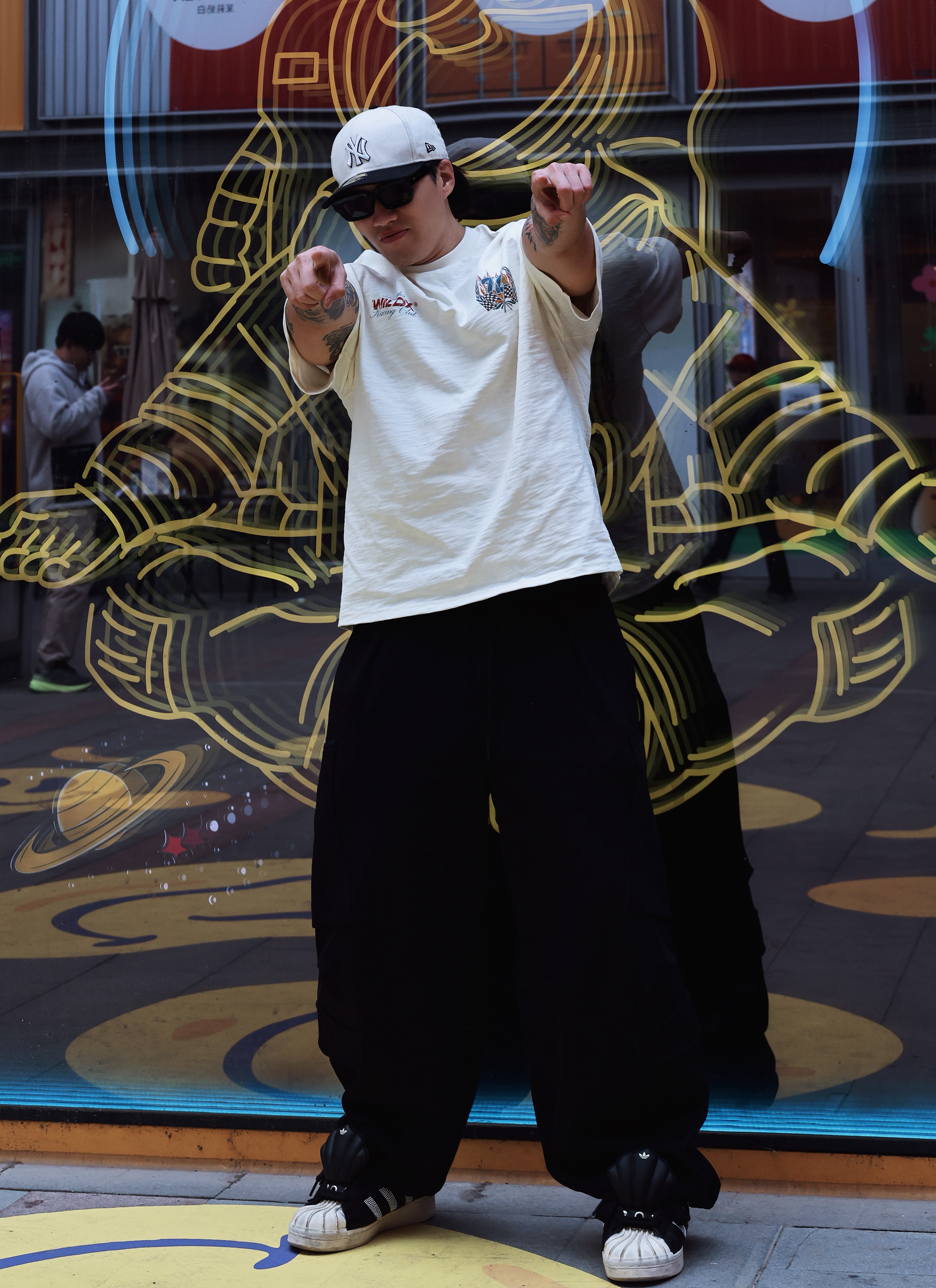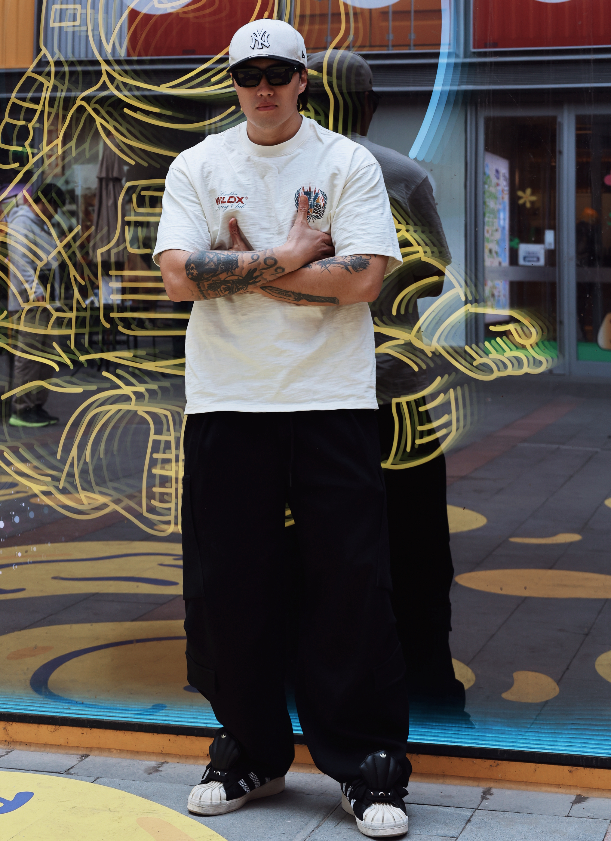 OOTD|黑白配永远的神 👕 上身:白印花T 软糯不透 微落肩自带直角肩特效 随便塞个衣角 慵懒氛围感拿捏 👖 下身:黑运动长裤 束脚设计+侧边小开叉 露出脚踝 显高显瘦的王牌操作 👟 鞋子:黑板鞋 帆布款轻便到飞起 跟裤腿无缝衔接 腿长直接拉满 📸 出片心得: 黑白组合永远不会背叛你 越简单越能打 随手靠墙一站就是杂志内页 💬 互动: 你的出片神器是哪件单品? 快来评论区反向安利我!