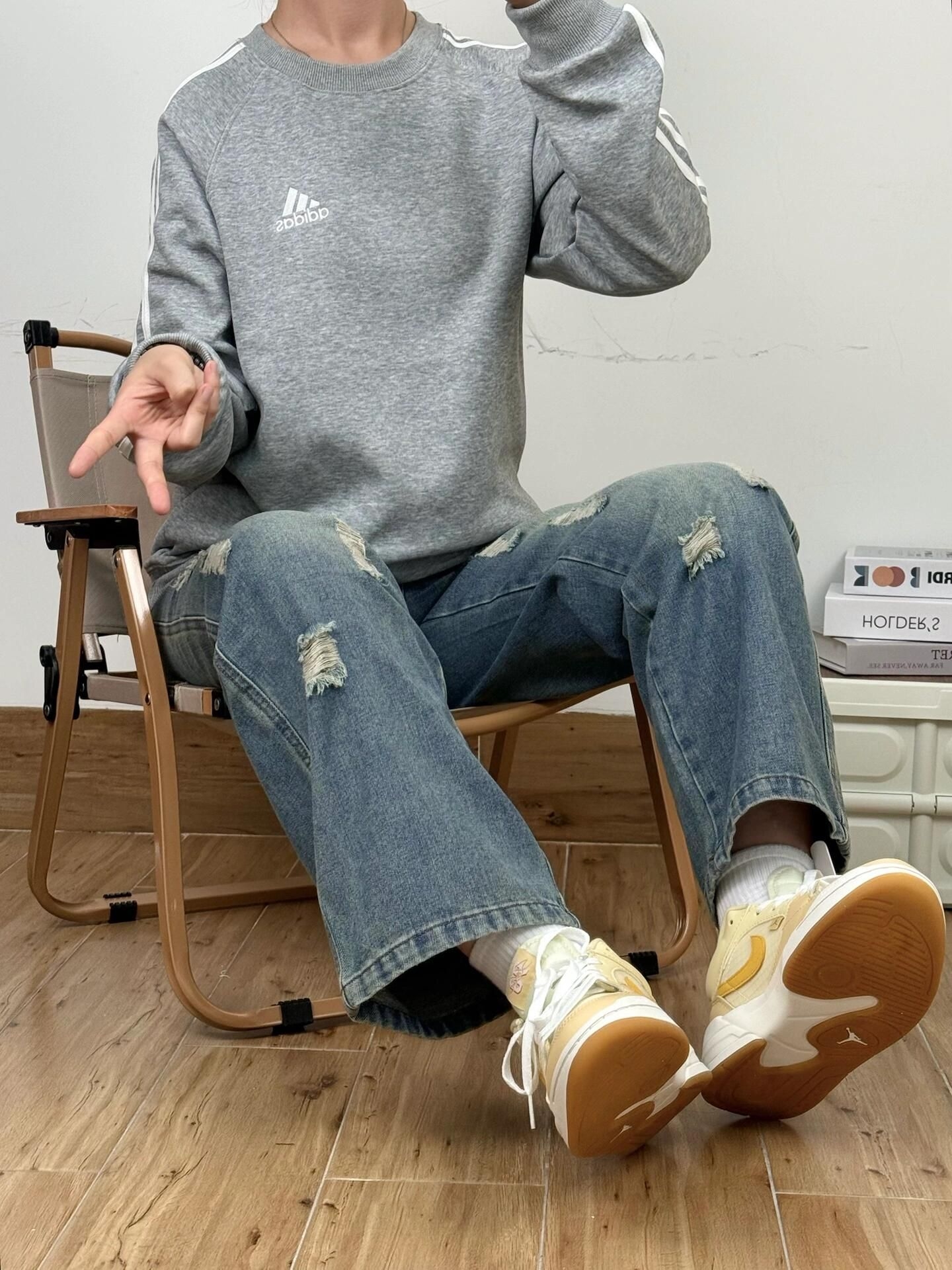🌟阿迪达斯经典三条杠灰色卫衣,宽松版型,棉混纺材质,内里加绒,秋冬穿超暖!袖子三条杠+胸前Logo刺绣,简约又有辨识度✨。灰色百搭,随手搭牛仔裤、半裙都OK,通勤休闲都能穿。衣长约58cm,胸围93cm,S码适合小个子或偏瘦姐妹,袖子略长,慵懒风轻松拿捏~