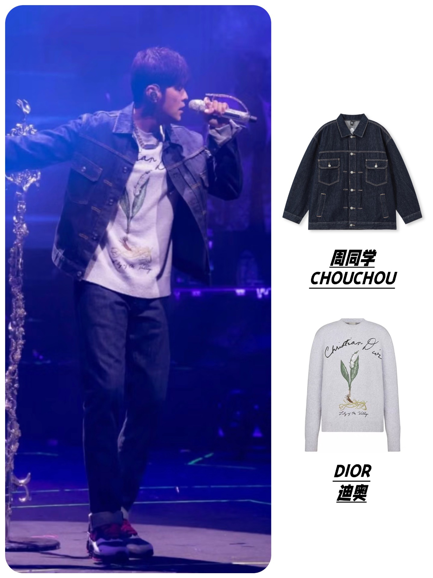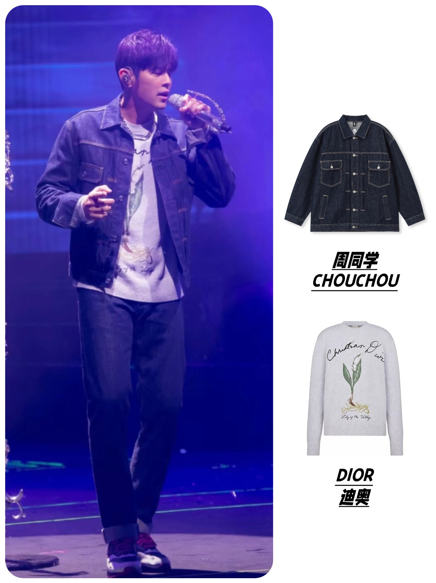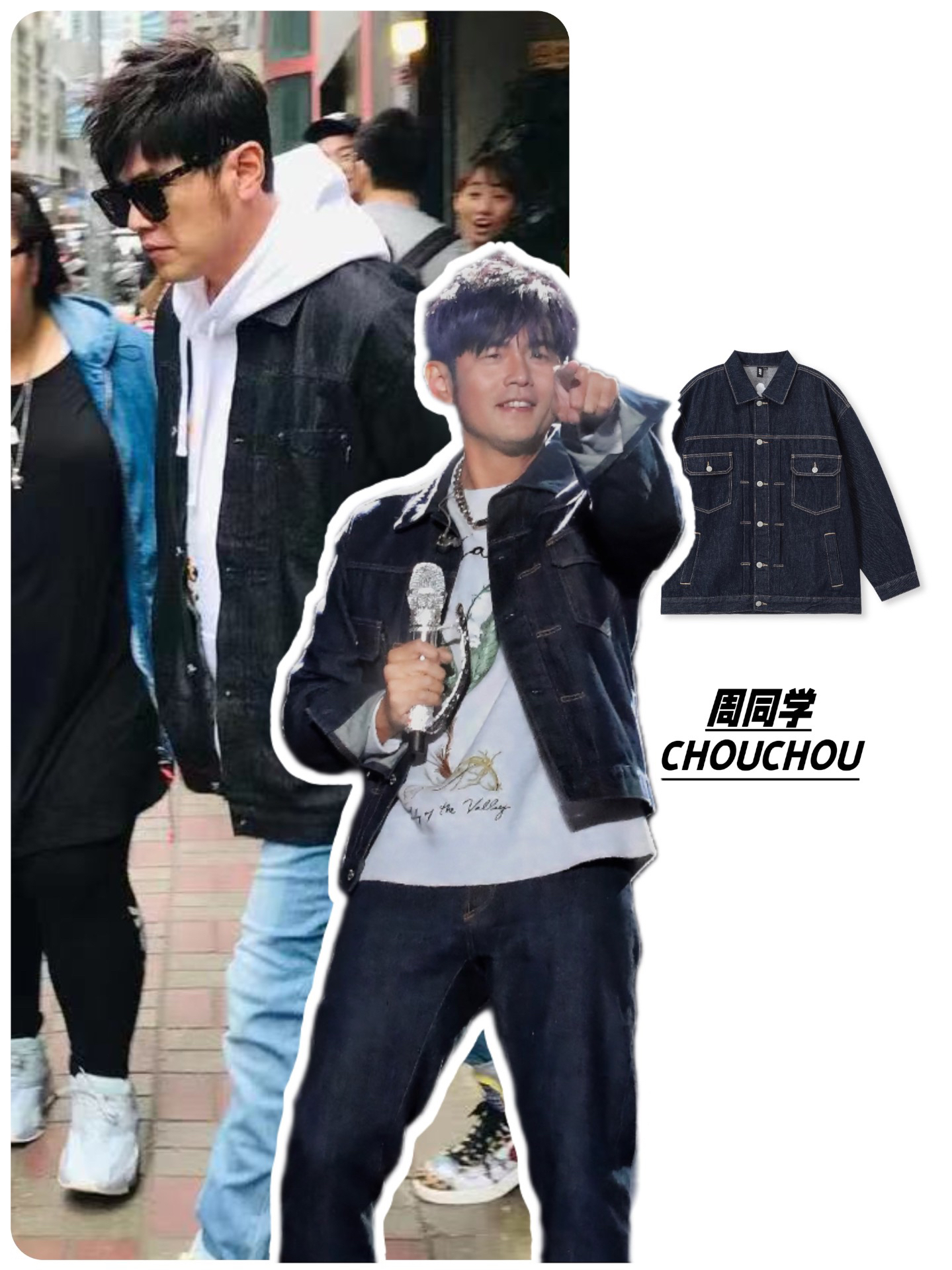 他是真的喜欢穿牛仔外套 不同场次的演唱会,铁打的牛仔造型 时而简约大方,时而重工时尚 杰伦自己个人IP #周同学 服装品牌 也常有出现,简约基础的款式超百搭 关键后背还有杰伦头像印花,泰酷辣! #周杰伦同款