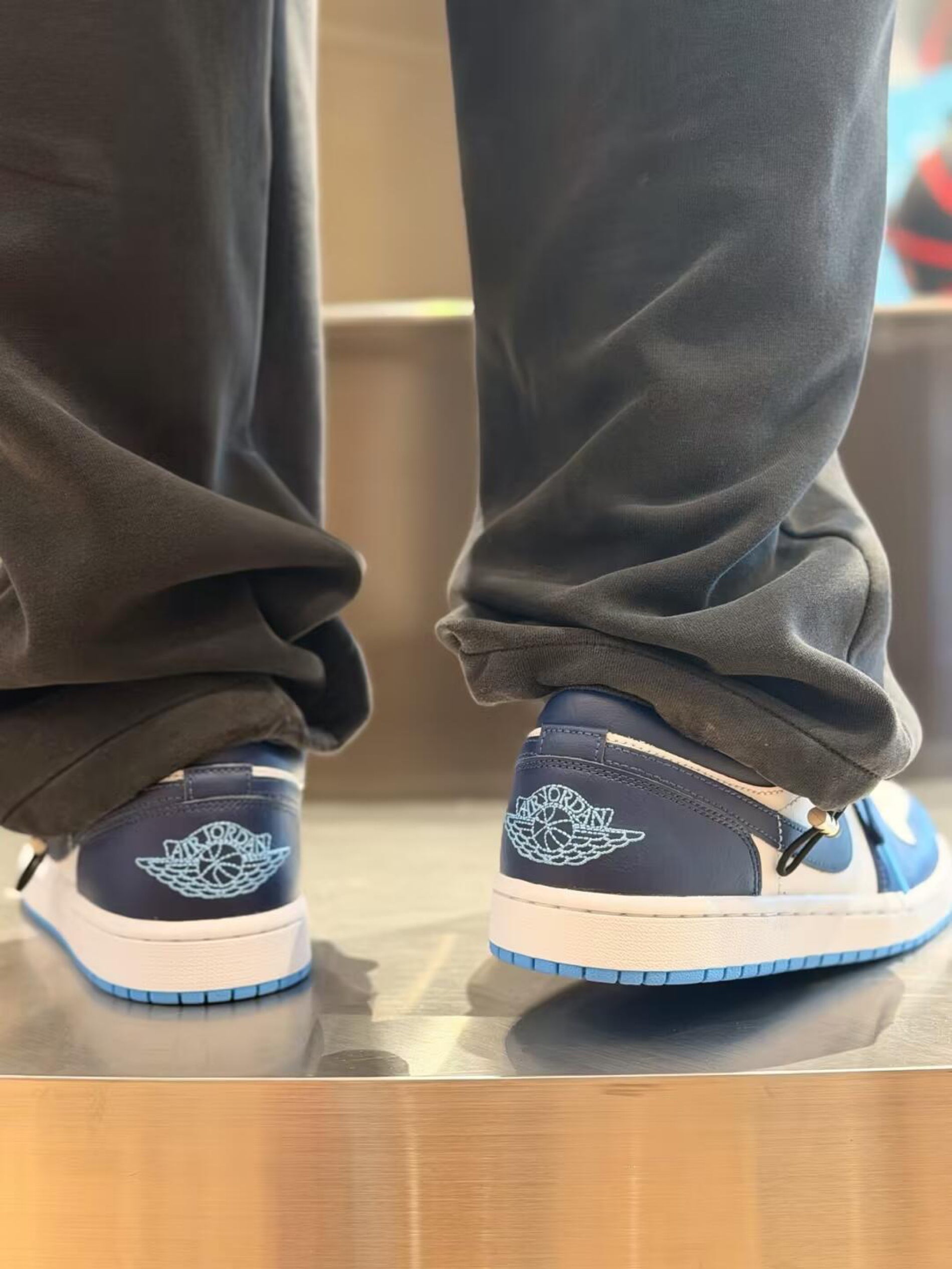 最近被问爆的AJ1海军蓝✨,干净高级感直接拉满! 经典黑白蓝三色拼接,简约又耐看,属于怎么穿都不会出错的永不过时款。 通透清爽的冰蓝外底堪称点睛之笔,层次瞬间提亮,细节控真的会狂喜 鞋身选用质感皮革,挺括有型还好打理,日常穿耐造不娇气。 不管是日常通勤、校园出行还是休闲运动都能轻松适配,百搭不挑风格,上脚利落又显气质。 一双搞定全年穿搭,颜值与实用性双在线💯