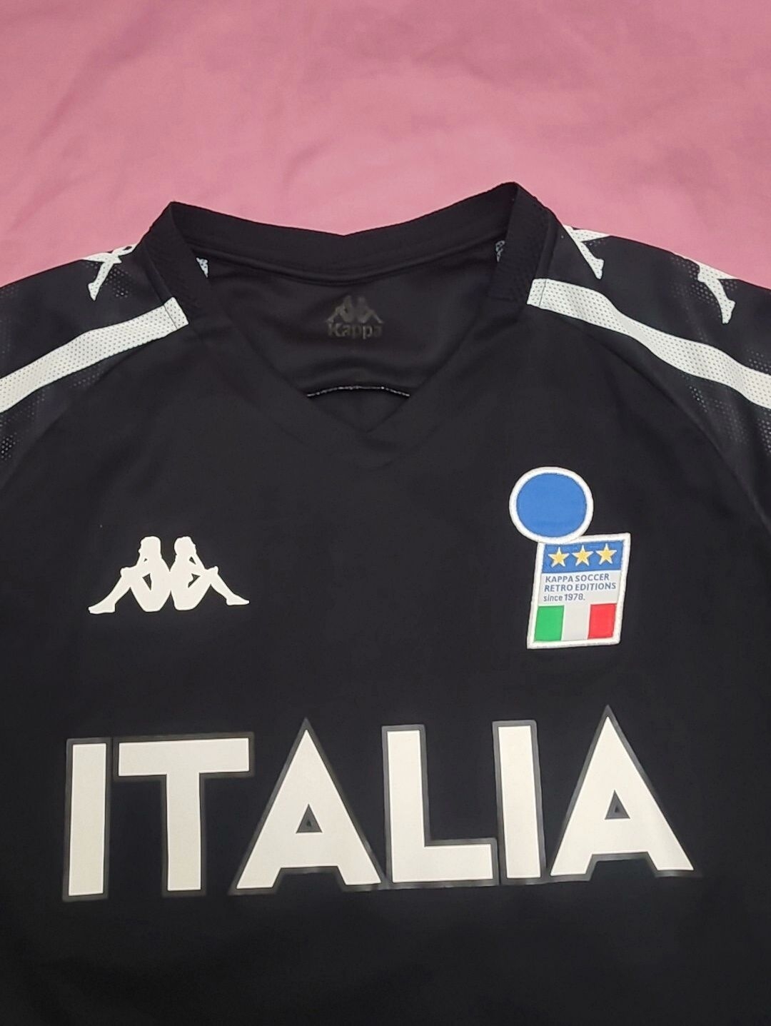 🖤Kappa意大利队球衣,黑色主色+白色“ITALIA”字样,简约又有辨识度!肩部白色条纹+背靠背Logo,复古运动感满满✨。聚酯纤维材质,透气舒适,适合足球运动或日常穿搭。胸前意大利队徽,彰显国家队身份,球迷比赛、citywalk都能轻松驾驭,运动与时尚兼具!⚽️
