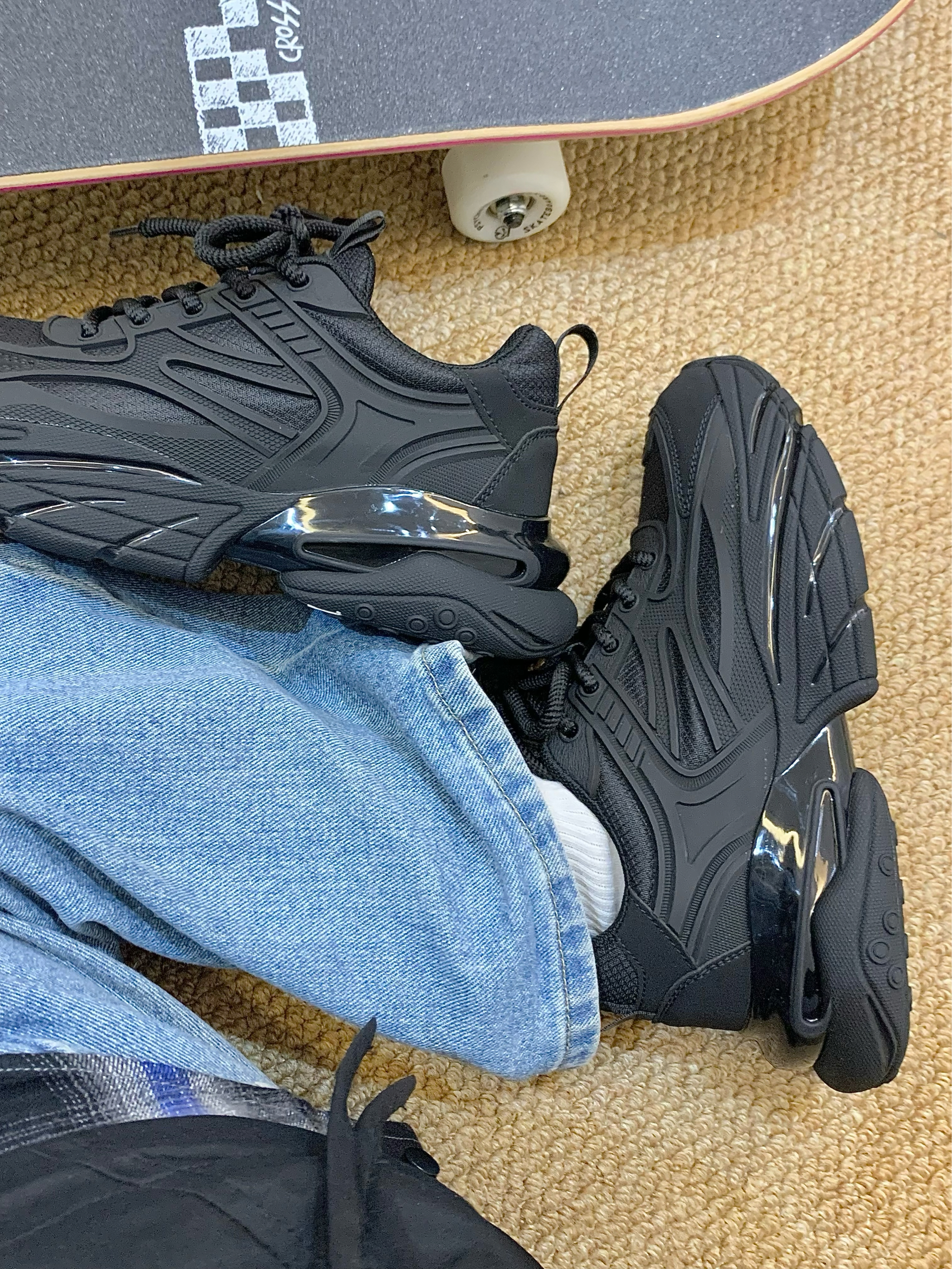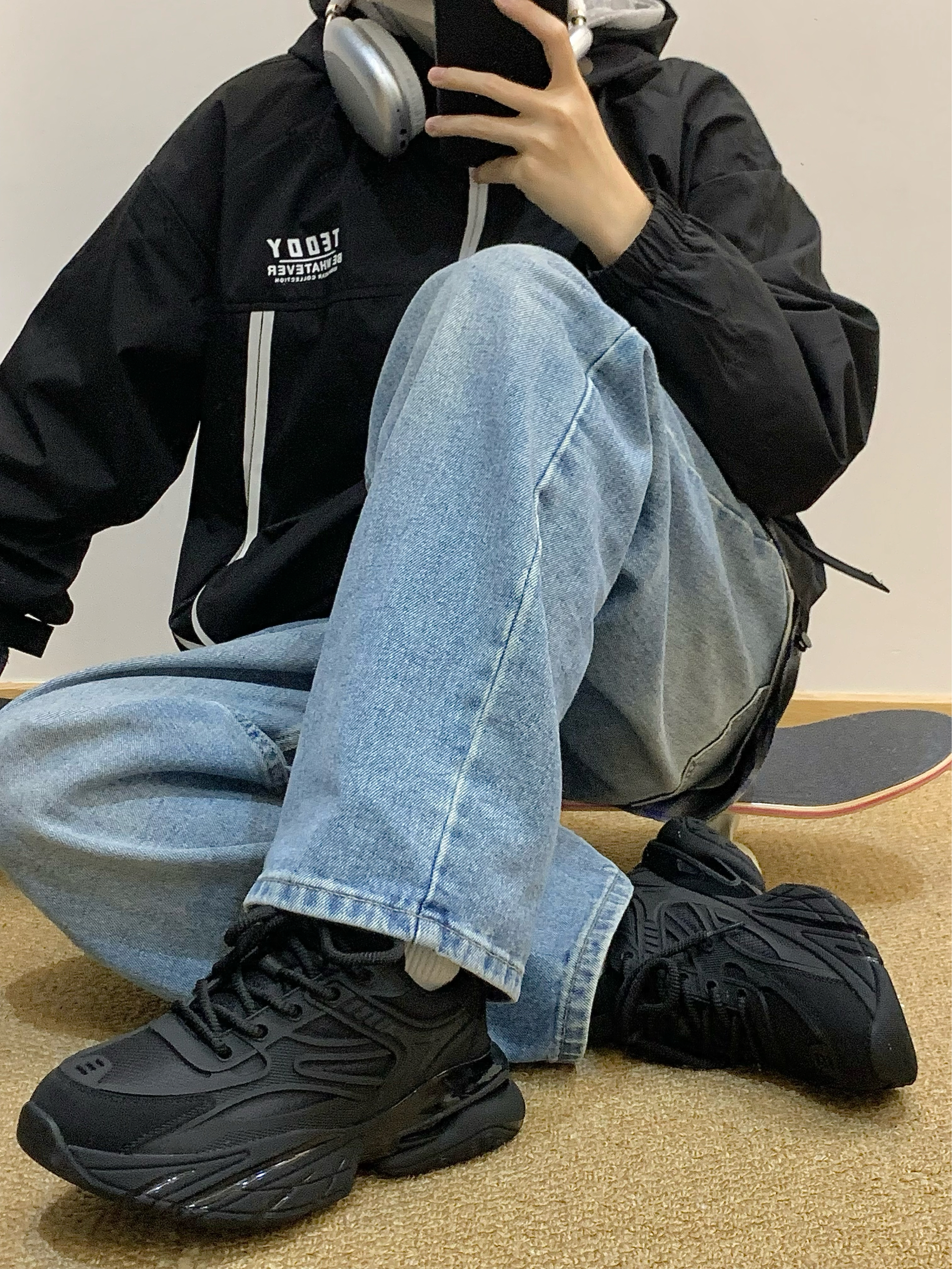 复古经典的造型拿捏时尚感 轻便泡棉的鞋底上脚柔软 还有增高效果 舒适显腿长 全黑鞋身随意搭配牛仔裤就嘎嘎出片