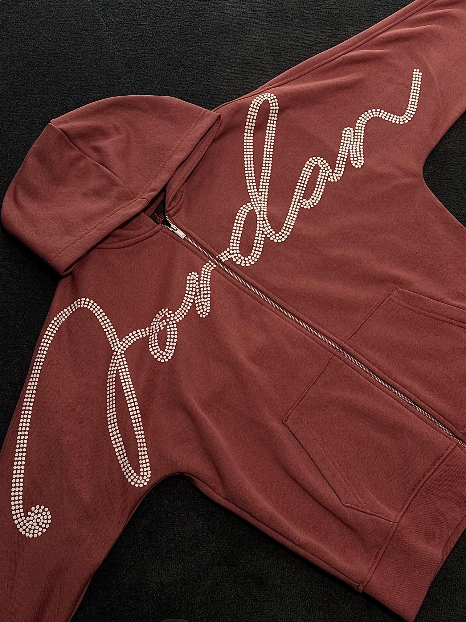 砖红色主调+贪吃蛇点阵“Jordan”字样,复古又潮流!棉质面料柔软舒适,内里加绒,秋冬穿超暖🧥。双拉链设计,穿法多变,连帽+袋鼠兜超实用,宽松版型街头感满满,日常休闲或节日穿搭都很出彩,轻松打造个性造型✨。