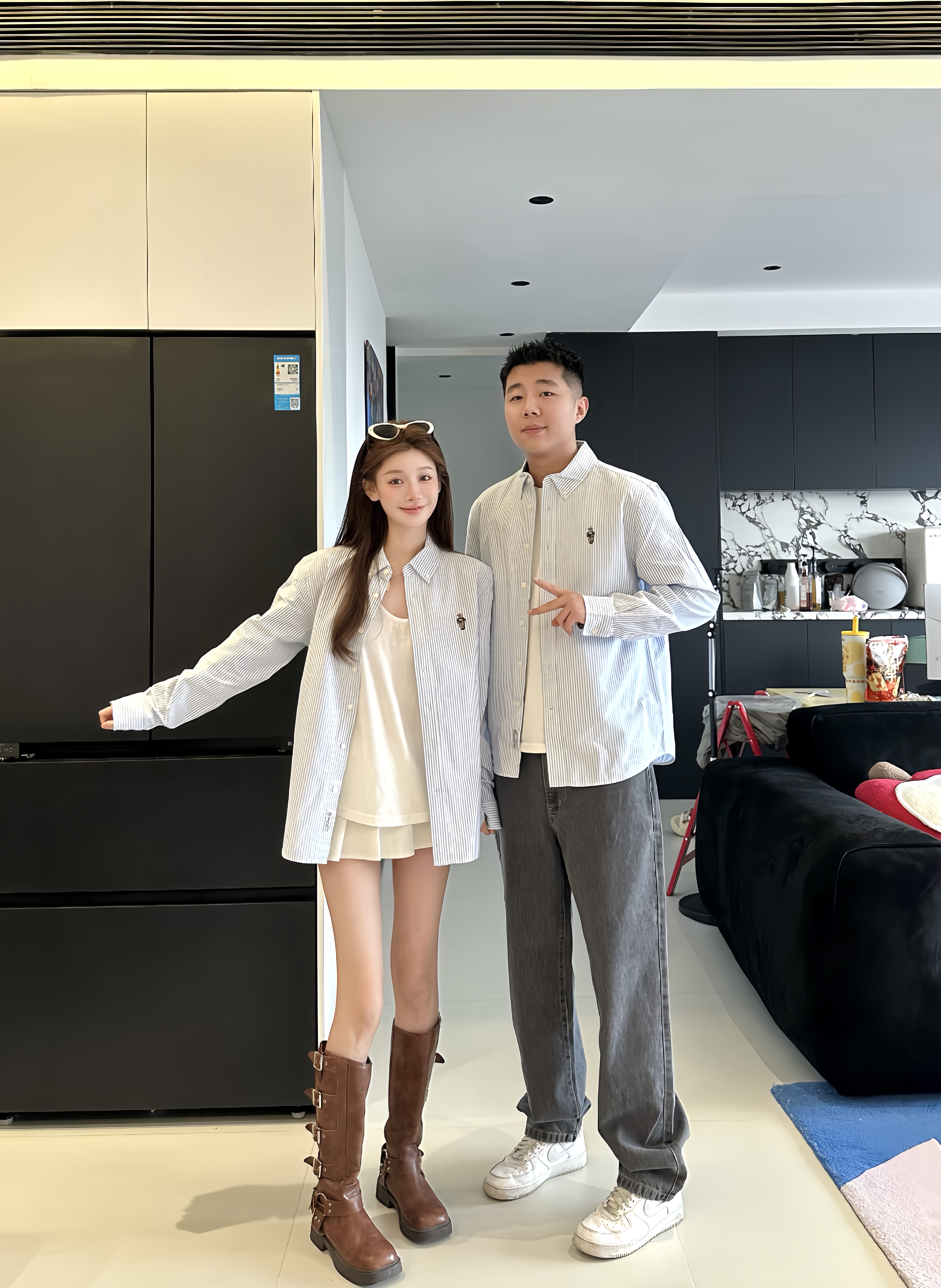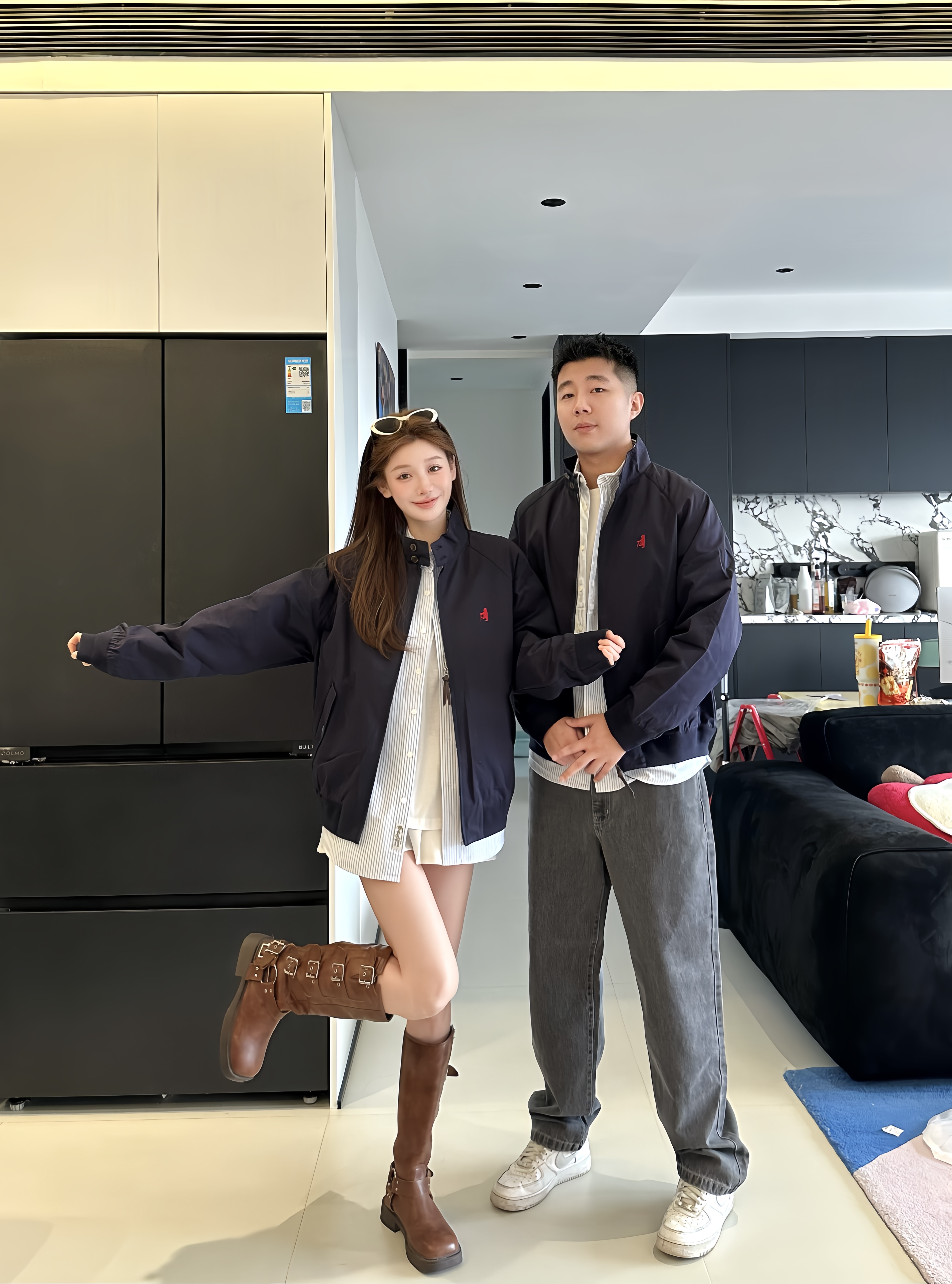 这套情侣夹克跟秋冬真的超级搭! 宽松的版型 上身遮肉而且没有束缚感 内搭衬衫高级又有层次感 日常通勤 约会 朋友聚会超级适配 #