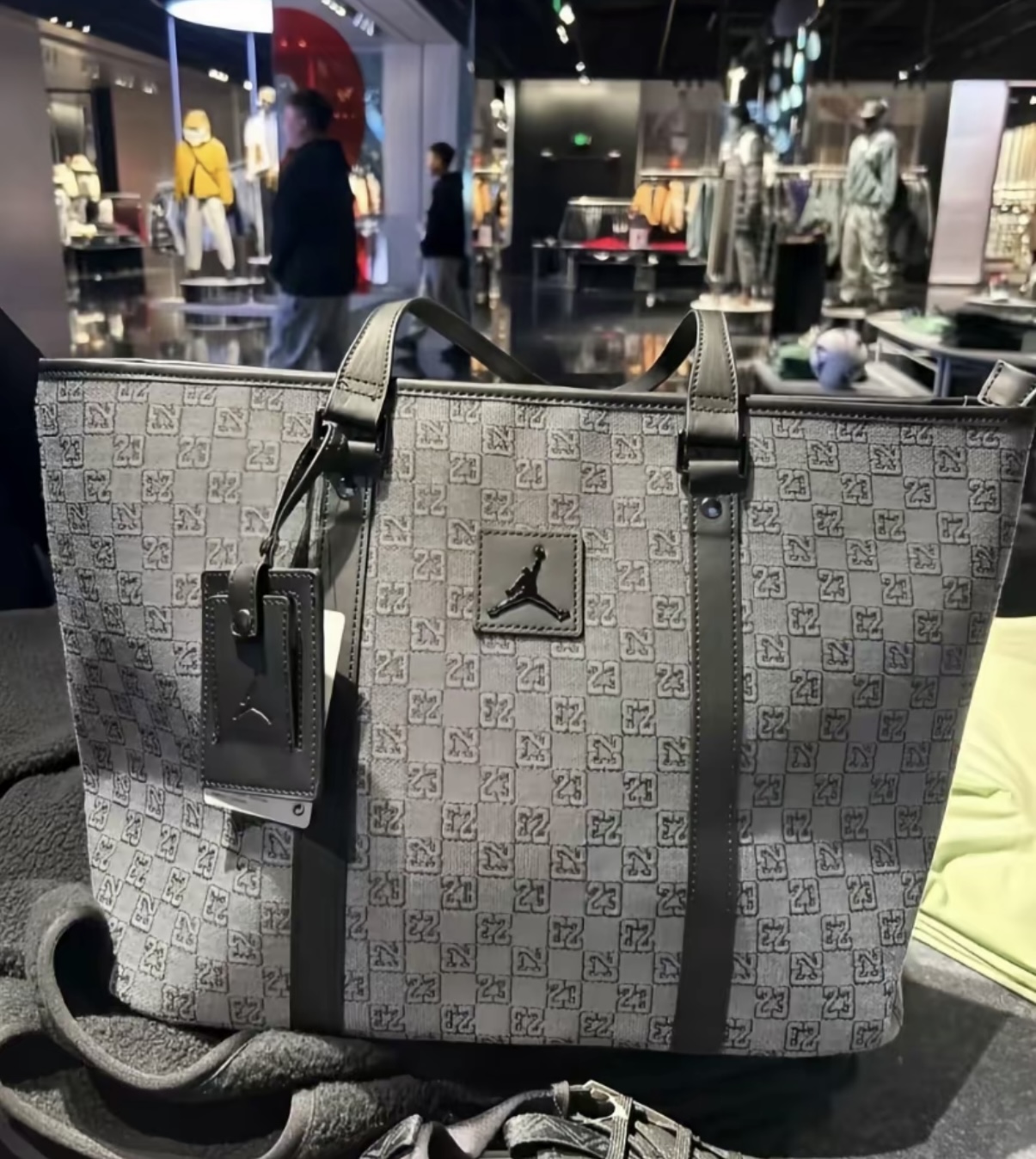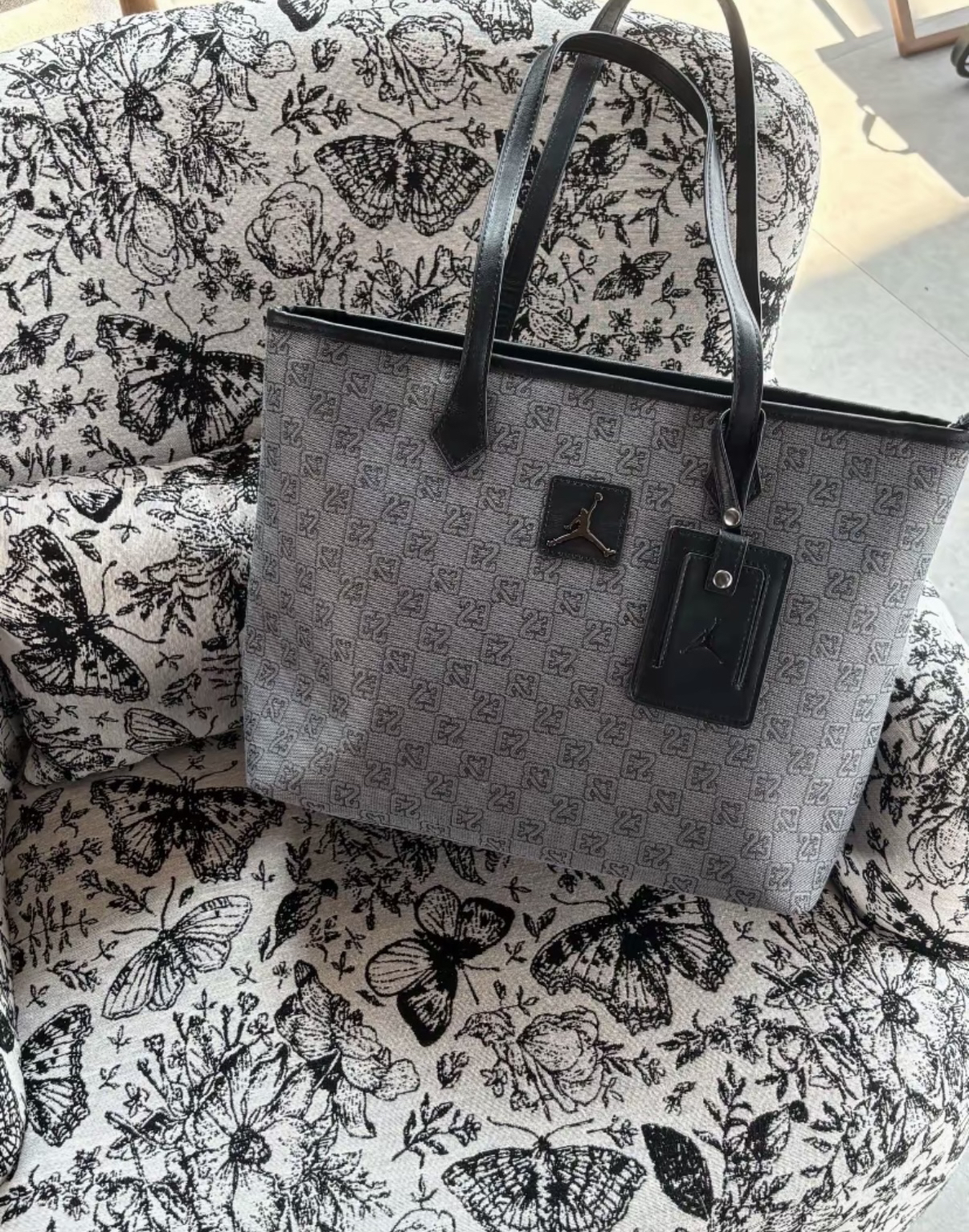 👜Jordan 23印花托特包,灰色织物+23号&飞人Logo,篮球氛围感拉满!双提手设计,容量超大,通勤、运动、短途出行都能装下日常用品或运动装备✨。耐用又时尚,实用与潮流兼备,是Jordan粉丝必入单品!