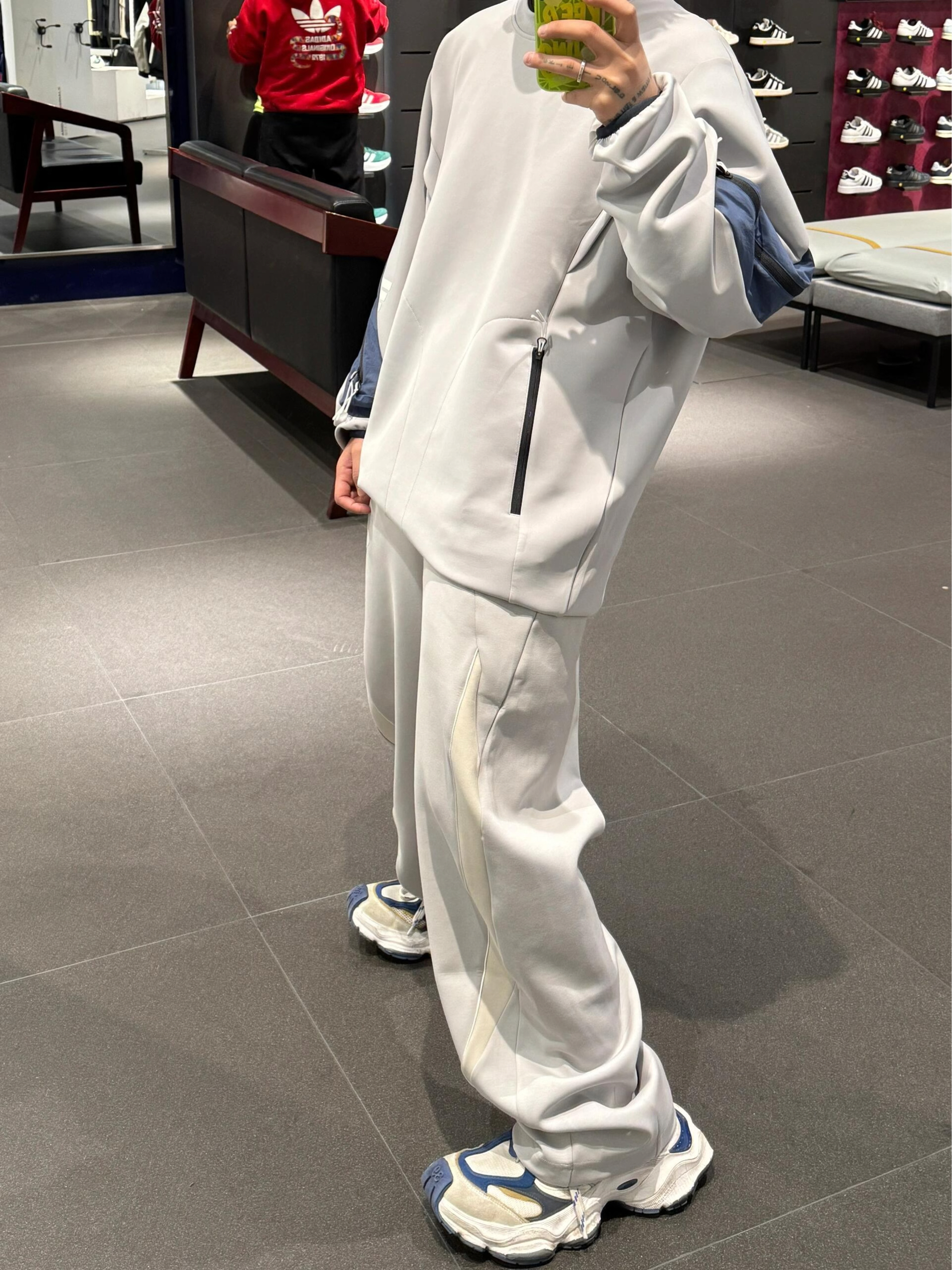 真的离不开我的舒适圈了~ 新款阿迪FOS终于到店!!! 清爽浅灰色系穿搭,机能感直接拉满。 拼接设计卫衣超有层次感,拉链位做了压胶处理,还有隐藏式拉链口袋,细节控直接狂喜👀 上衣+裤子全套都是轻薄太空棉材质, 软糯舒服还挺括,不用担心掉色、起球、变形,耐穿度拉满。 不管是运动健身、日常出街还是通勤休闲都能轻松hold住, 百搭又实穿,舒适度和颜值双在线,直接焊在身上都愿意!