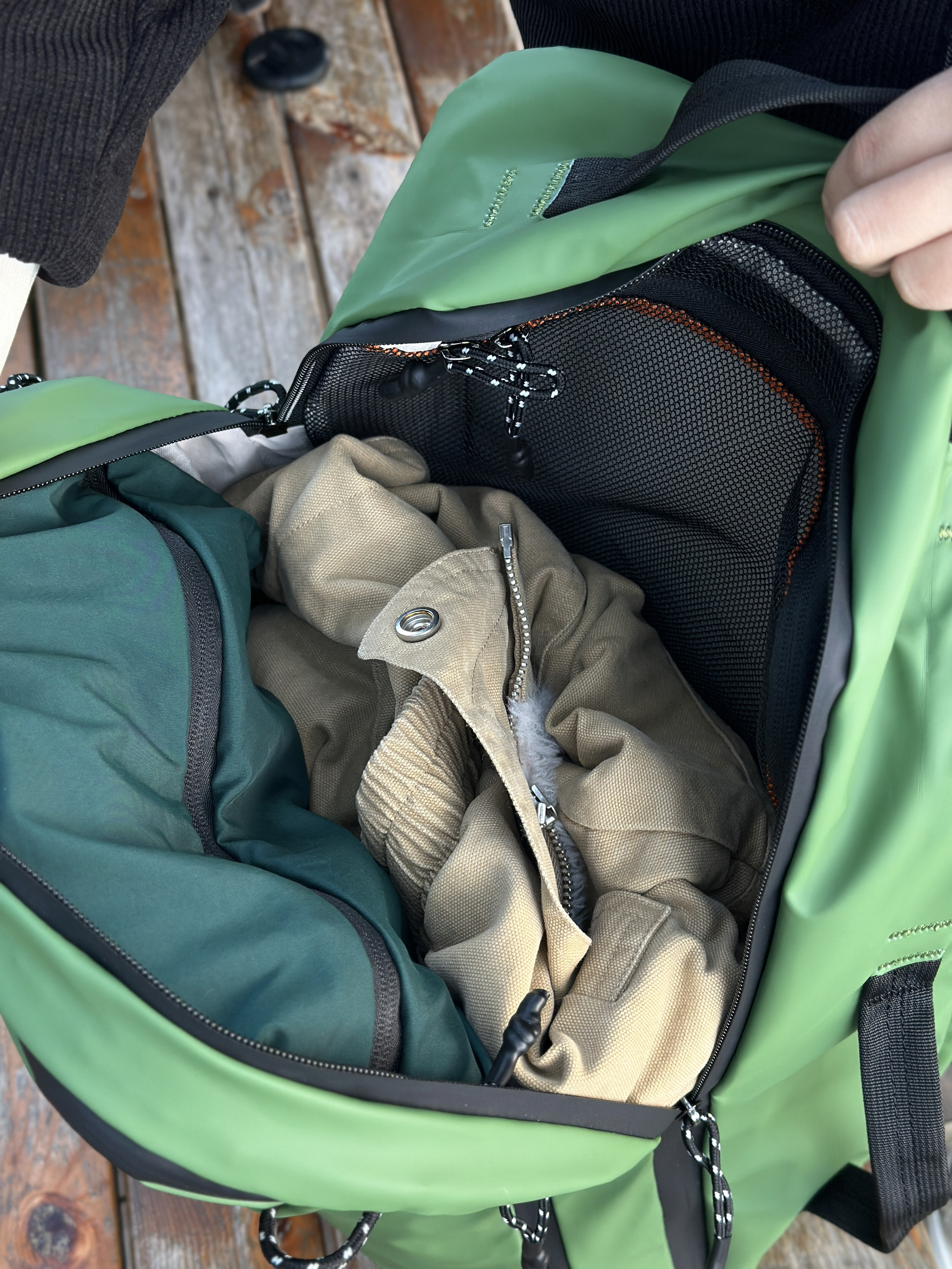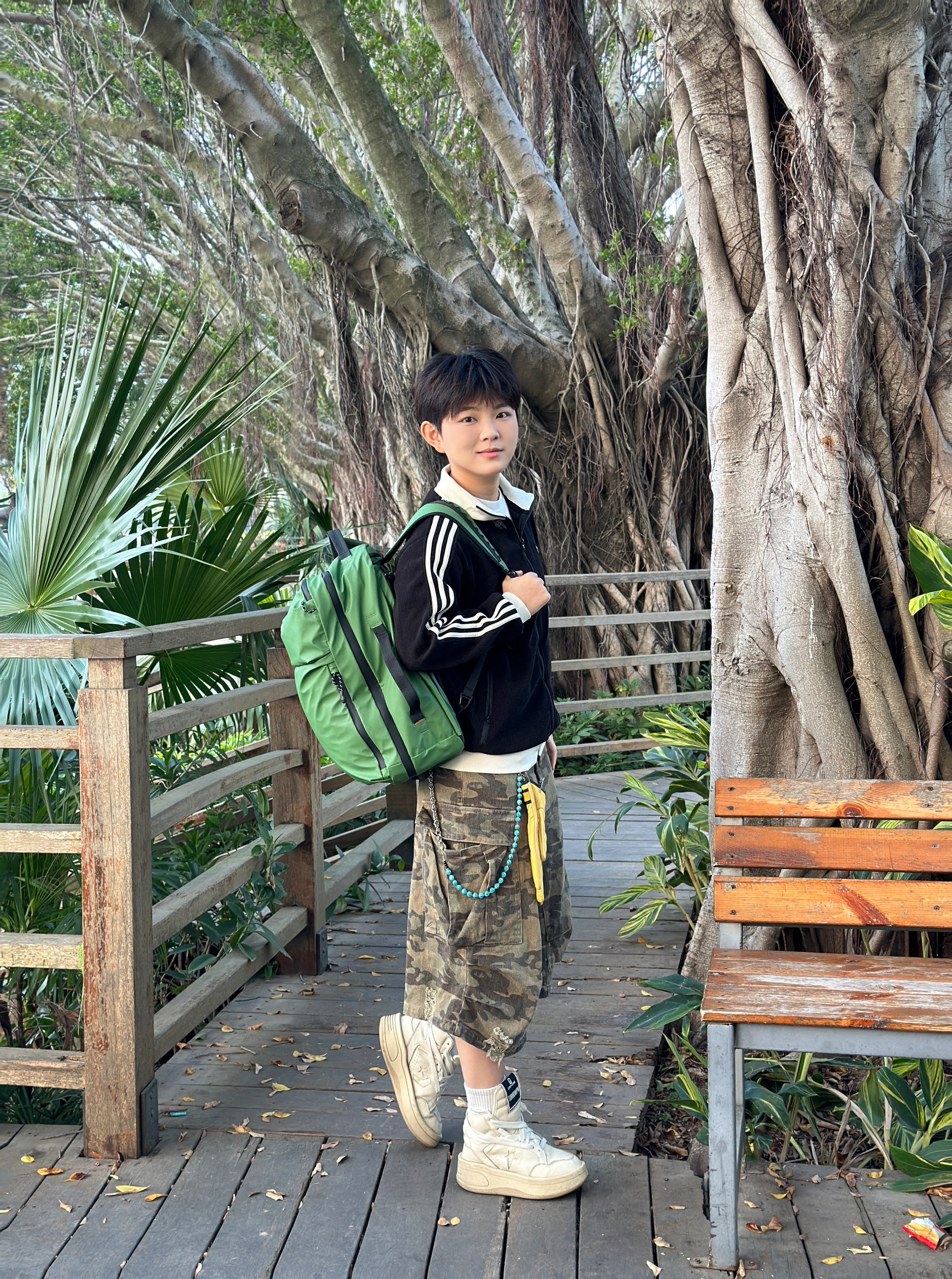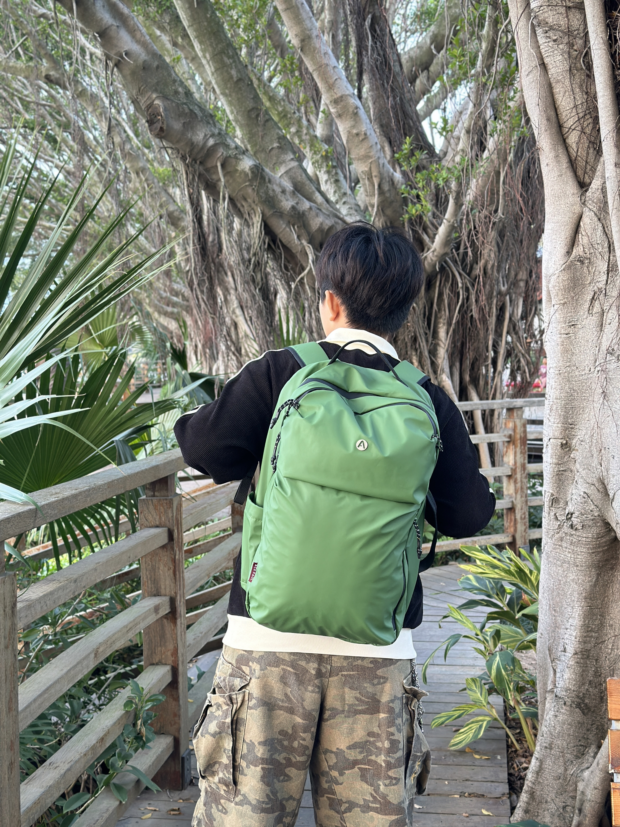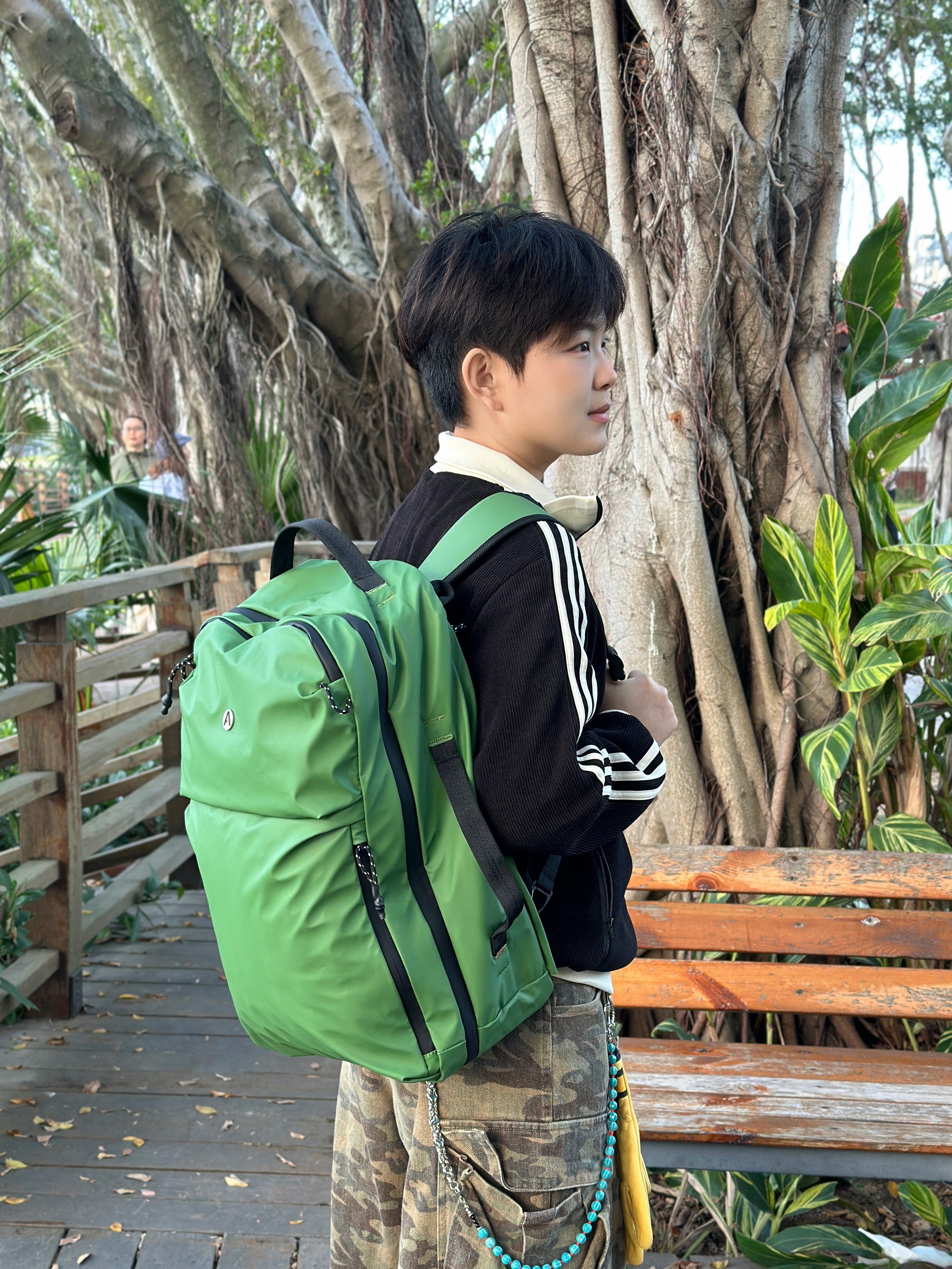 推着车去湖边晃悠,风里已经有春天的味道了。 • 🎒 核心单品:清新绿运动双肩包 亮绿色在户外太吸睛,大容量装得下骑行装备和随身物,肩带减负设计,背久也不累。 • 🌿 休闲运动风穿搭公式 黑白条纹运动外套 + 迷彩工装裤,简约又利落,和绿书包撞色刚好,活力感拉满。 • 🚲 氛围小tip 选湖边、林间栈道这类自然场景,和自行车同框拍,松弛感直接拉满。