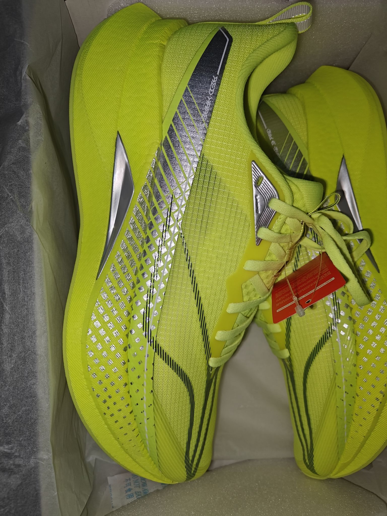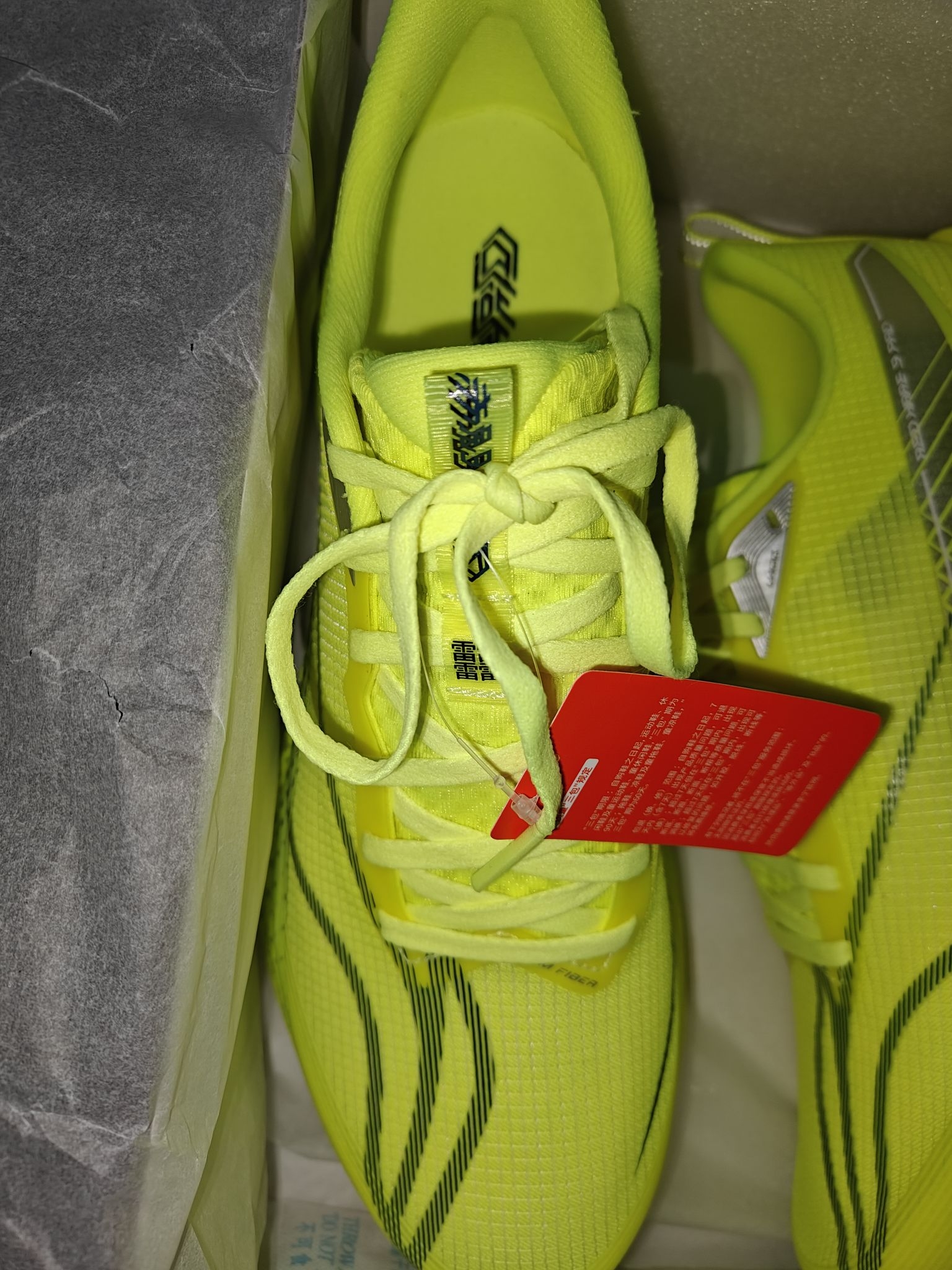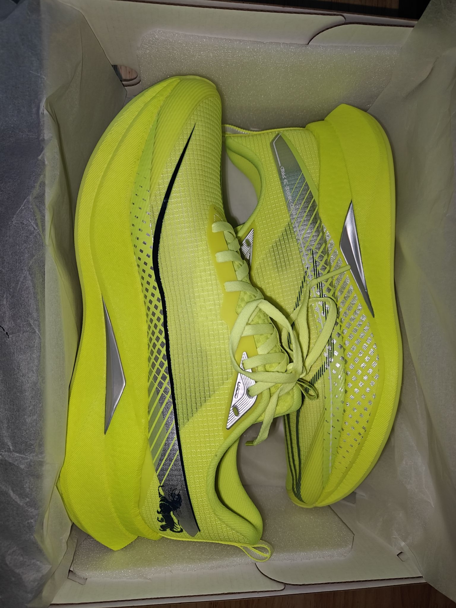 终于入手了李宁赤兔9 Pro荧光黄!这颜色在阳光下真的闪到发光,出门回头率直接拉满💡 上脚第一感觉就是轻,䨻科技中底软弹适中,跑起来回弹很干脆,不会像踩棉花一样卸力,5km下来脚也不酸,日常通勤和体测都能打。 GCR大底抓地力真的强,雨天跑操场也没打滑,网面透气不闷脚,夏天穿完全没问题。鞋型包裹感刚好,宽脚也能穿,性价比直接拉满! 想要一双颜值高、性能在线的训练跑鞋,这双真的可以冲!