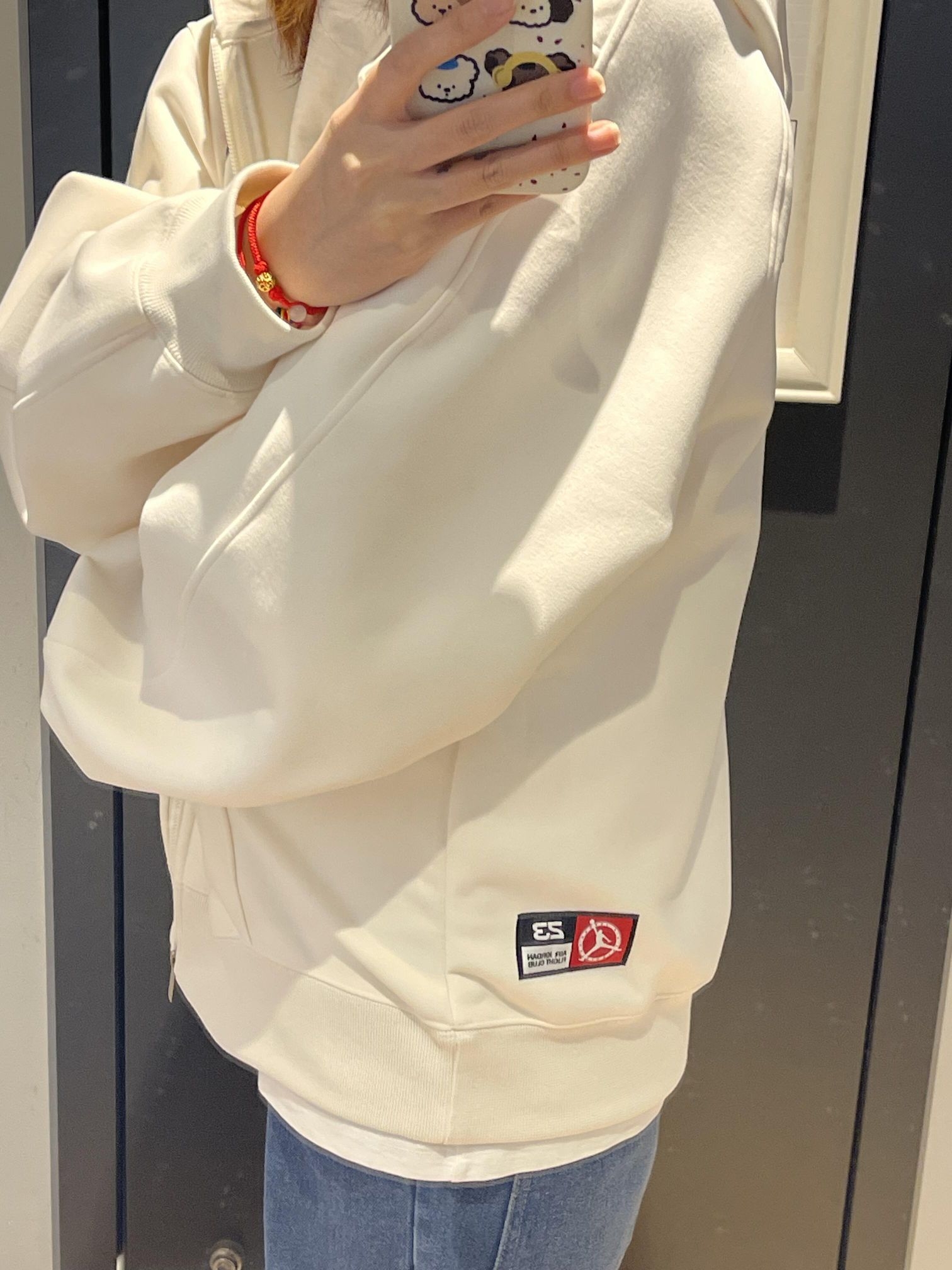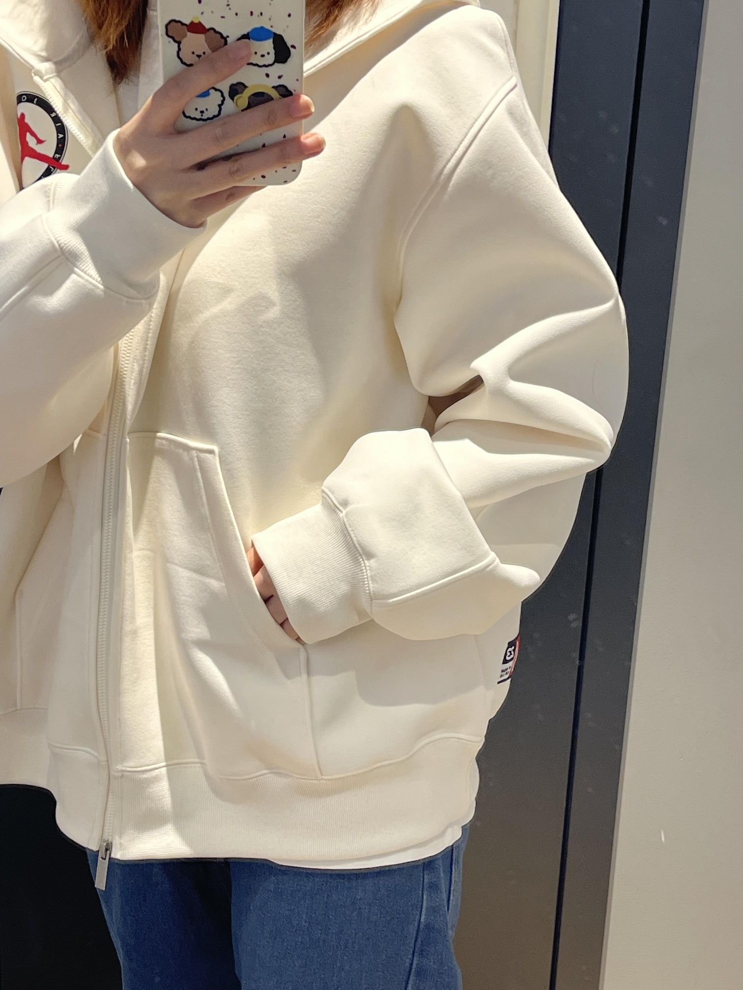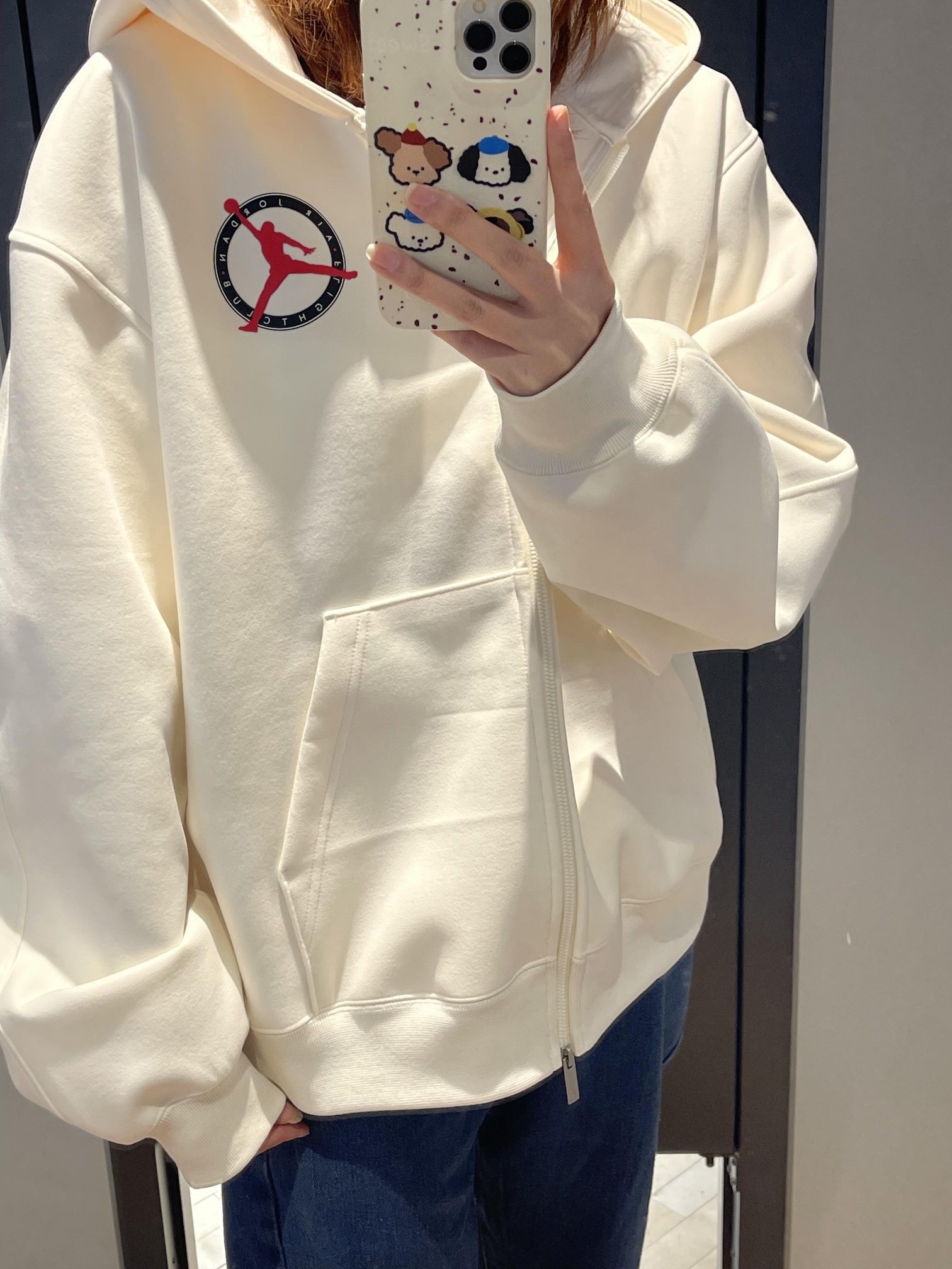 谁懂啊!这件奶fufu的米白色连帽外套真的戳中我心巴!💓 版型是宽松落肩款 对各种身材都超友好 藏肉显瘦一把好手 小个子穿也不会压身高~ 正面的红色飞人logo超吸睛 经典又有辨识度 简约中带着点运动酷感 日常通勤或者出门逛街都很适配 面料是那种软糯的加厚款 摸起来亲肤又有质感 深秋单穿 冬天内搭都很合适 保暖又不臃肿 搭配牛仔裤、运动裤都超好看 温柔又随性 妥妥的懒人穿搭模板