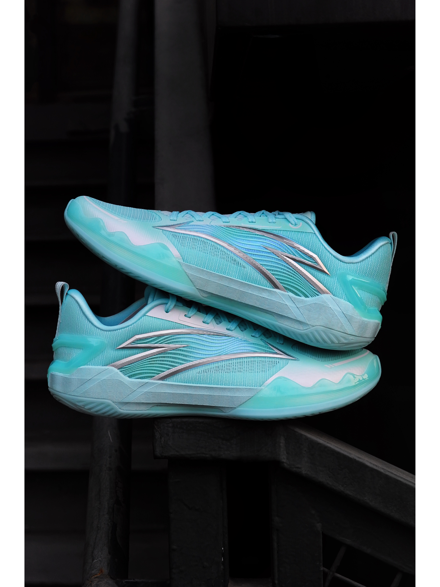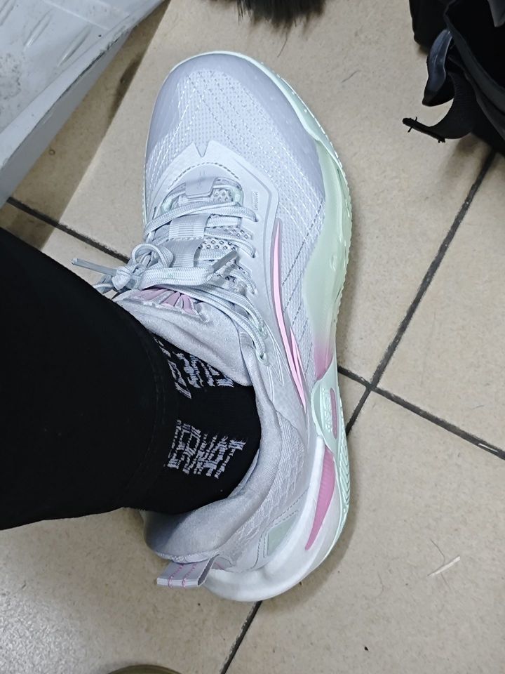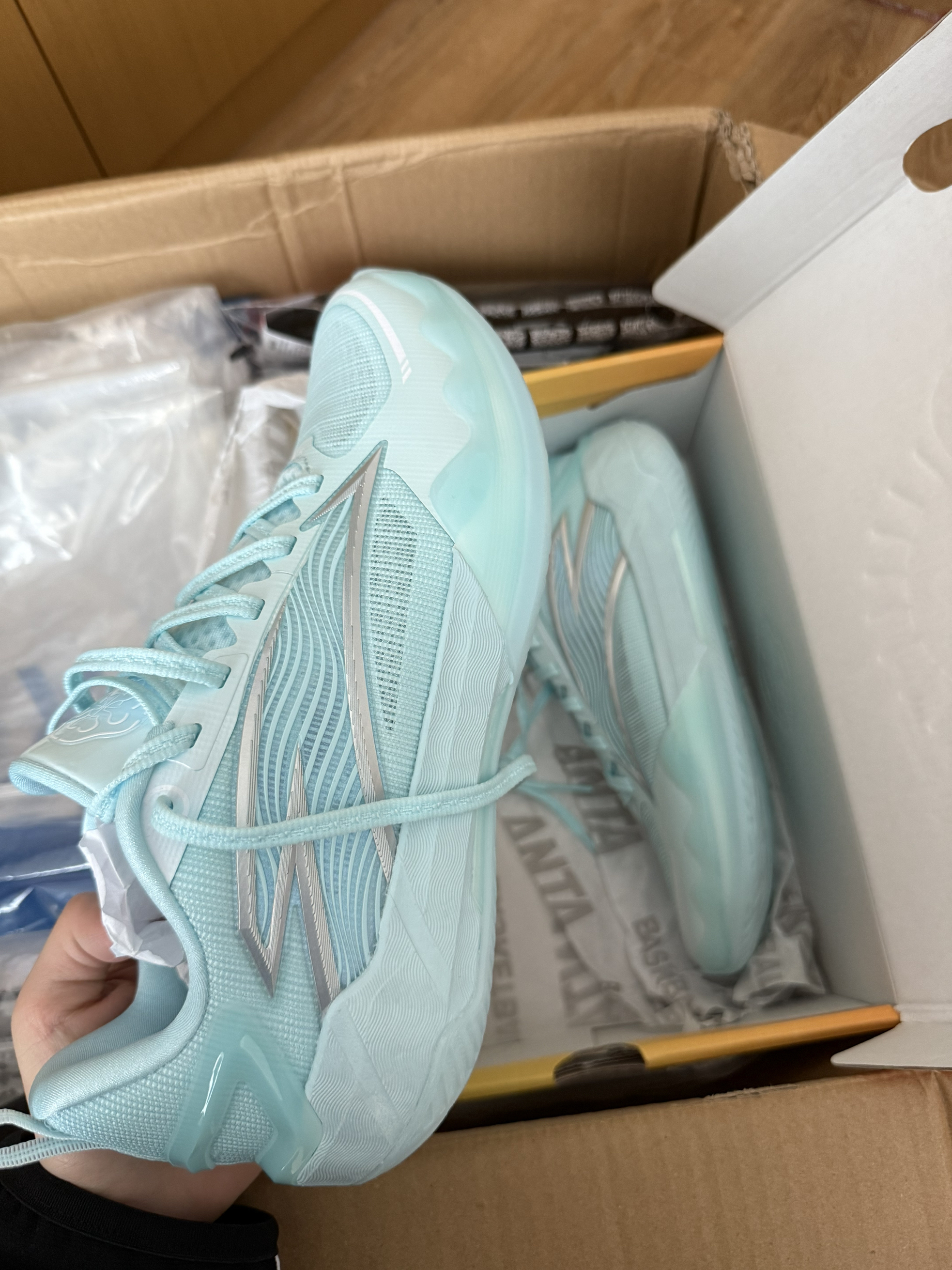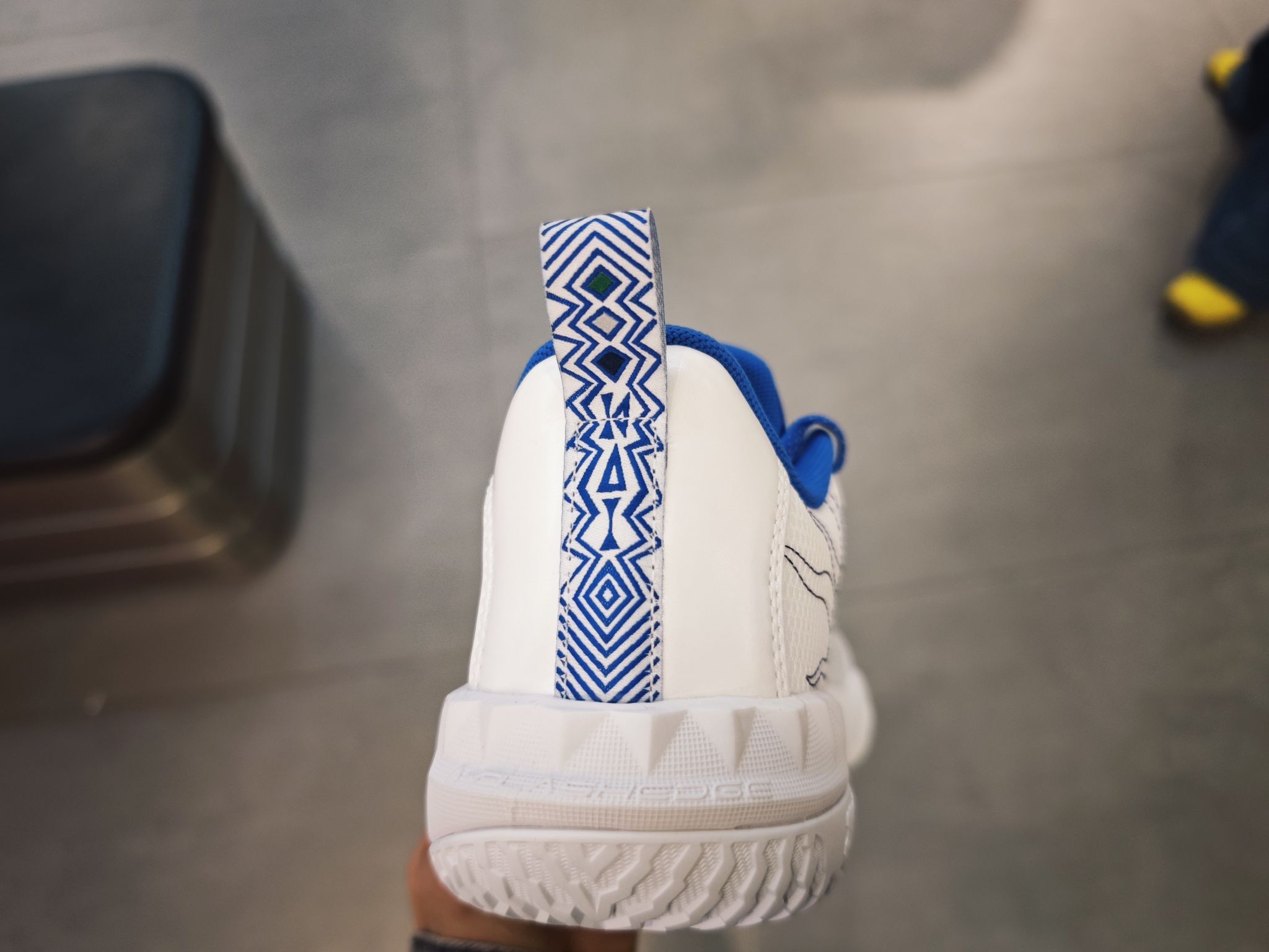 白蓝撞色干净清爽,鞋侧太阳刺绣+后跟民族风织带,细节感直接拉满,出街打球都好看,阳光下巨显干净,欧文粉丝DNA直接动了! 实战够用 轻量化网面透气不闷脚,夏天打球也舒服;全掌氮科技中底回弹够劲,起跳、变向都稳;外底深纹路抓地力强,急停急转不打滑,外场耐磨也在线,水泥地造也不心疼。包裹偏宽 瘦脚兄弟可能会觉得前掌偏宽,需要系紧鞋带或者换厚袜子,不然变向时会有点晃脚。