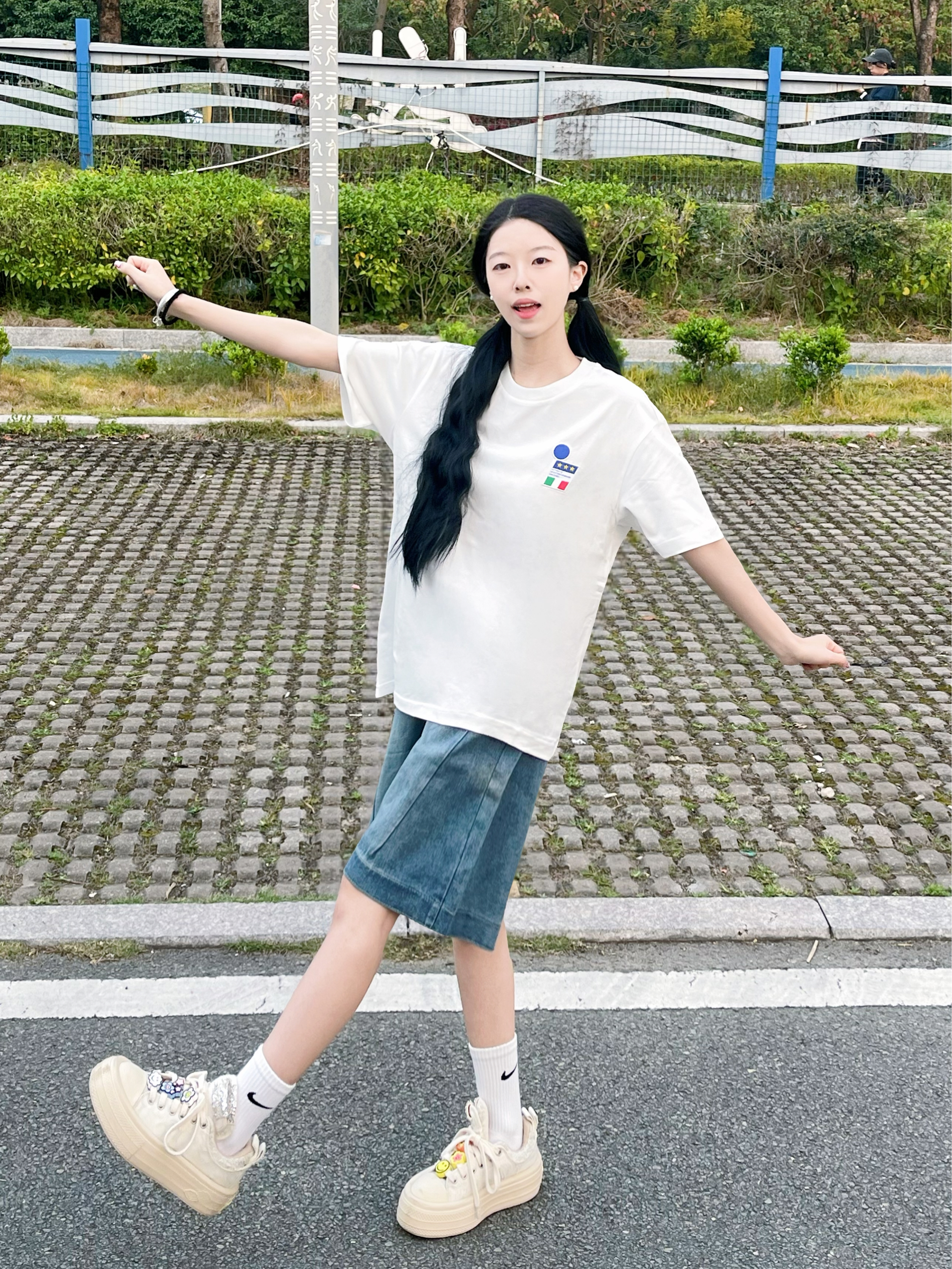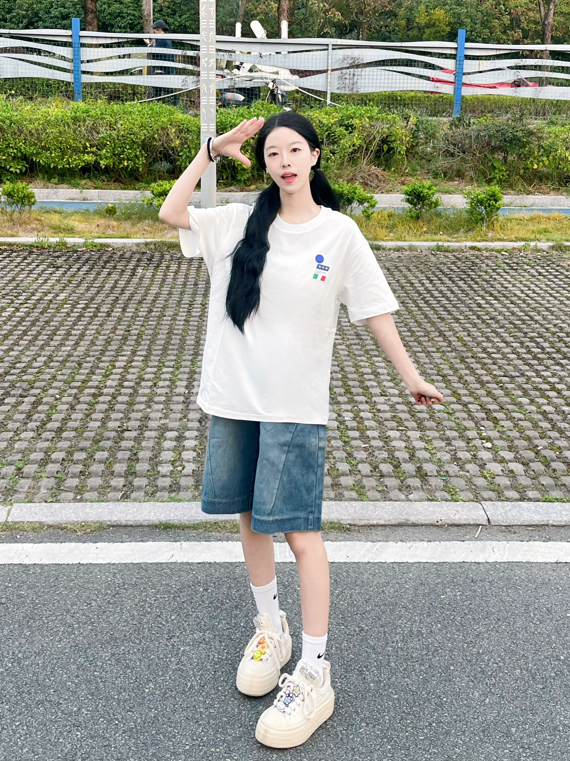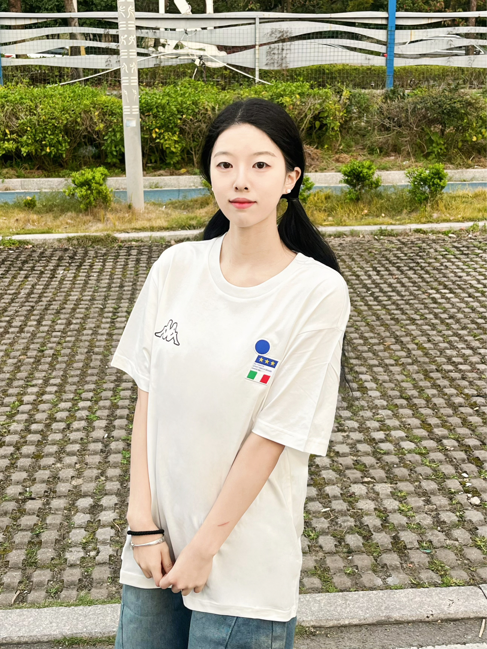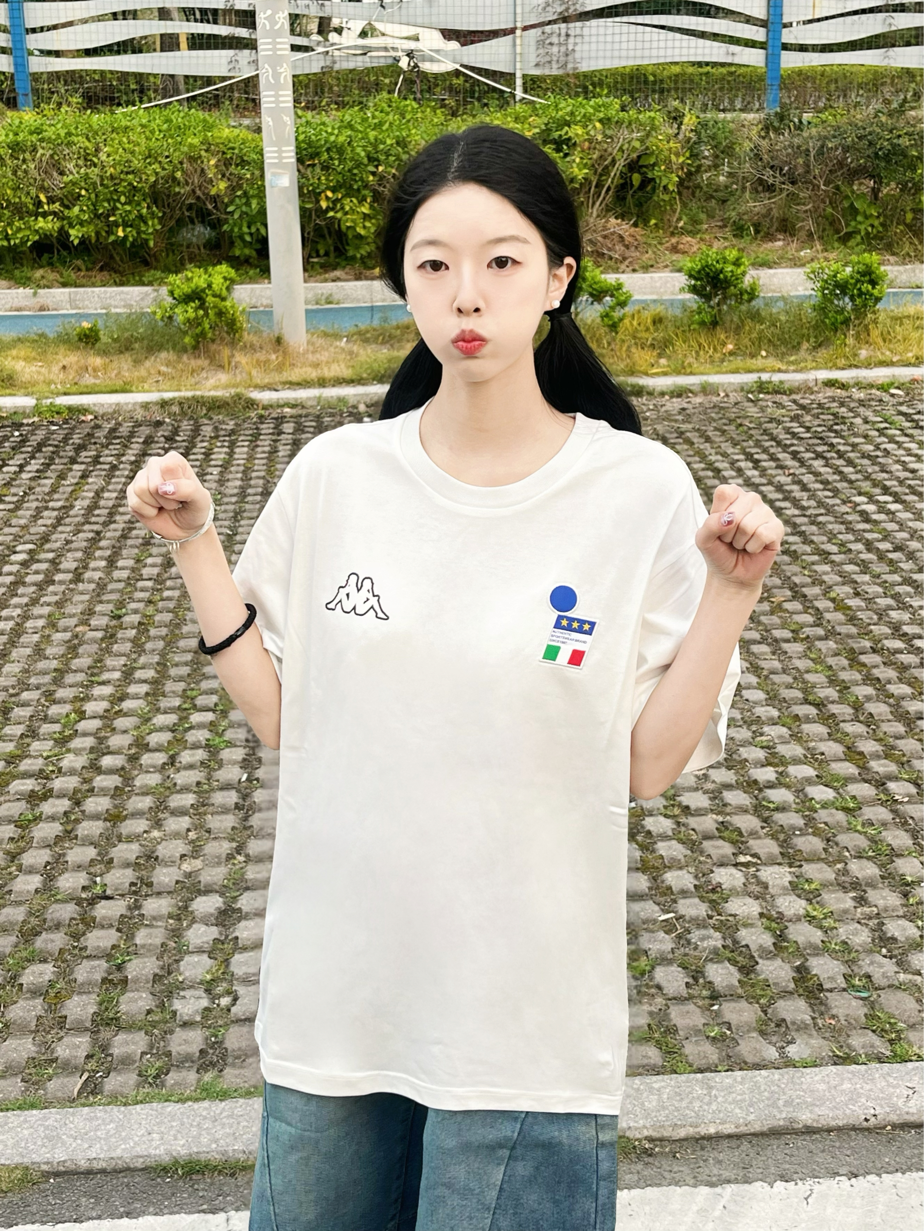 Kappa这个短袖我真的太爱啦 白T真的百搭又耐看 搭配牛仔五分裤真的很夏天 衣服透气舒适质量也不错 白色短袖夏天怎么搭配都不会出错 🧍♀️158/78