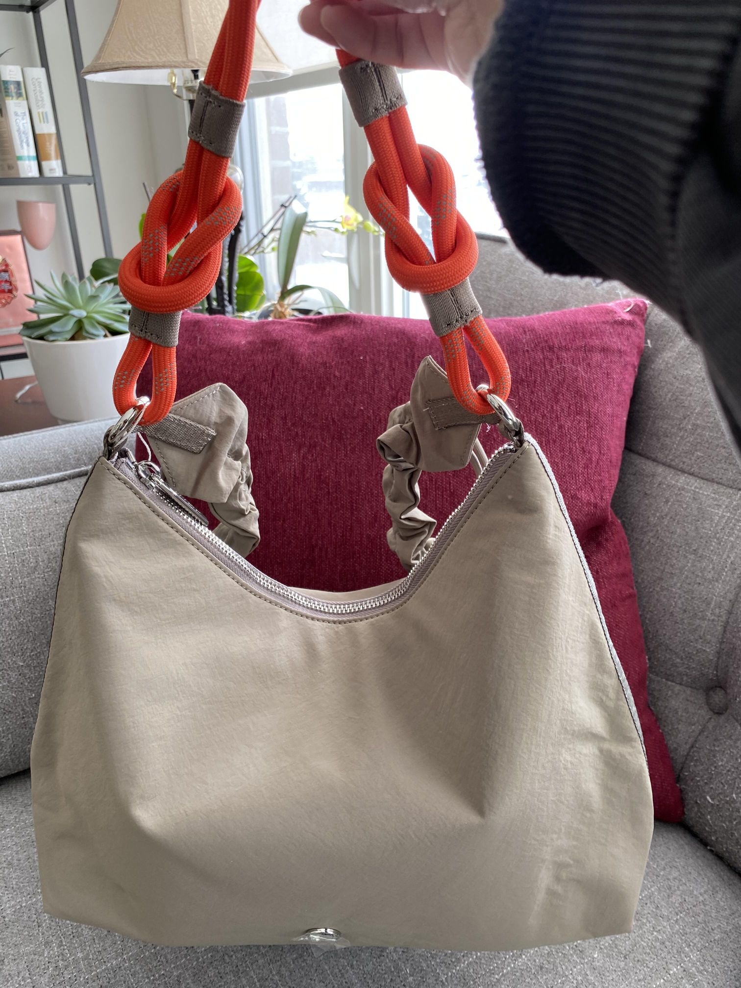 👜Lululemon这款多功能褶饰斜挎包,采用防水面料,日常通勤或短途旅行都超实用!6.5L容量,手机、钱包、化妆品轻松收纳,16L大容量还能装下电脑和水杯💻。肩带可拆卸,单肩、斜挎随心切换,橙色编织手提设计超有辨识度✨。褶饰外观慵懒随性,时尚又实用,轻松搭配各种穿搭风格!