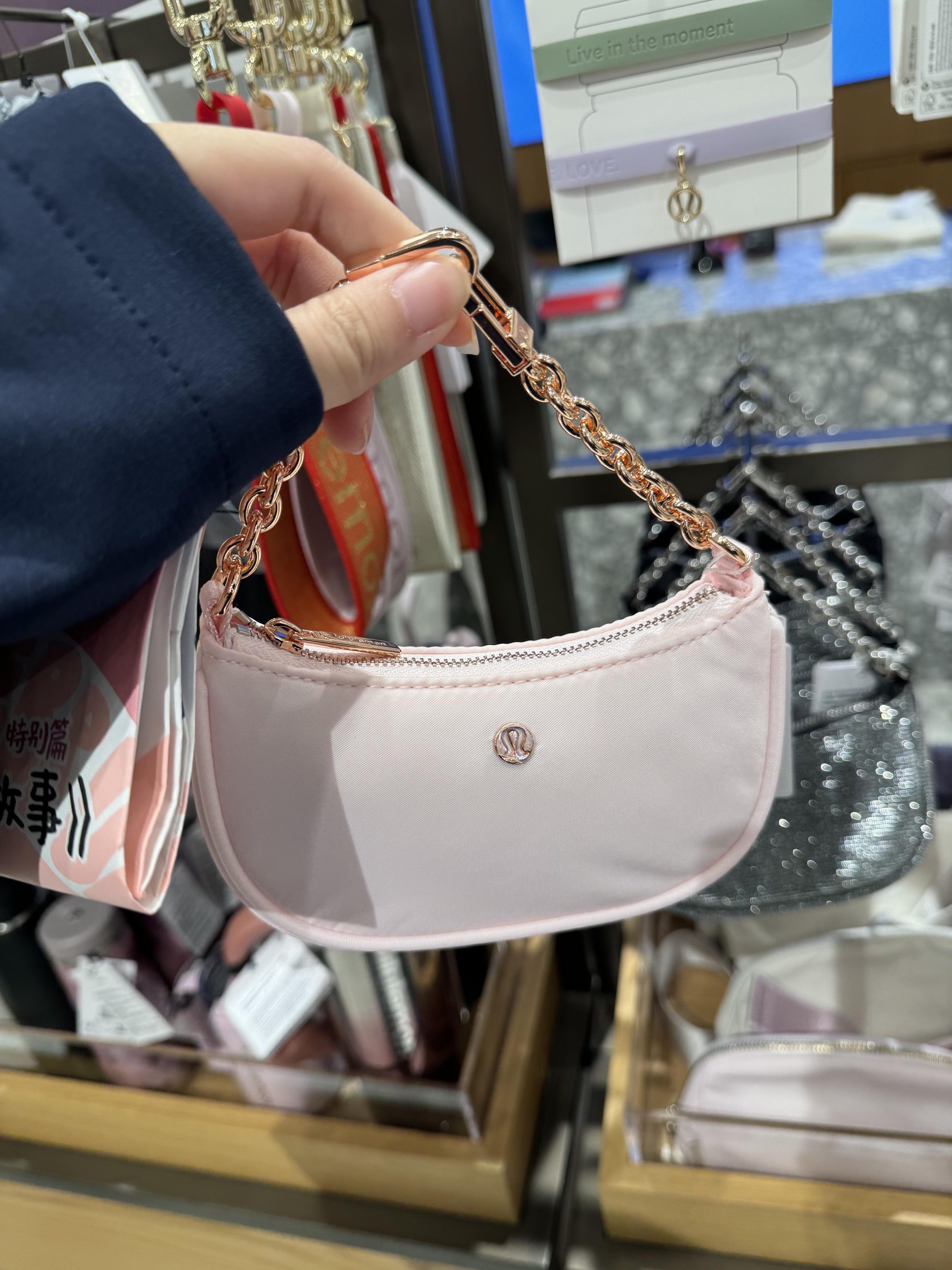 💗Lululemon City Essentials迷你单肩包,1L容量,珍珠粉配金色链条,简约又时髦✨。防水面料,日常通勤、轻便出行都OK!尺寸19x5x12.5cm,手机、钥匙、卡片轻松装下。外侧便捷口袋+内侧拉链袋,收纳超方便。链条肩带可调节,单肩斜挎随心切换,实用又百搭,是都市女生的理想小包👜。