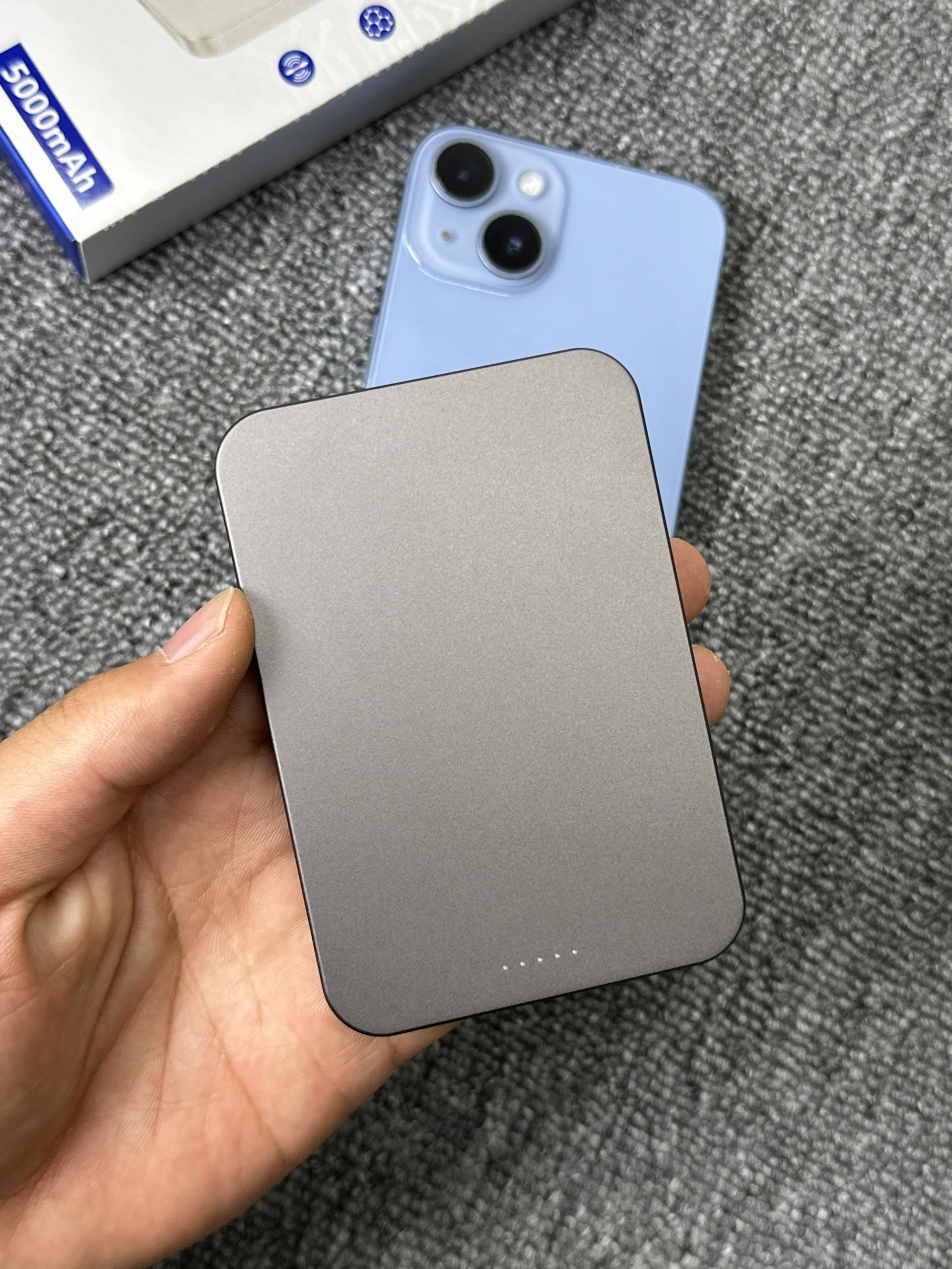 前一段时间入手的磁吸充电宝 没想到平时用起来还挺方便的 主要是它的小巧便携 和我的手机一样的厚度 5000mAh的大小也够一天的使用 磁吸充电宝比起传统的充电宝确实做到了 好看便携、轻薄!