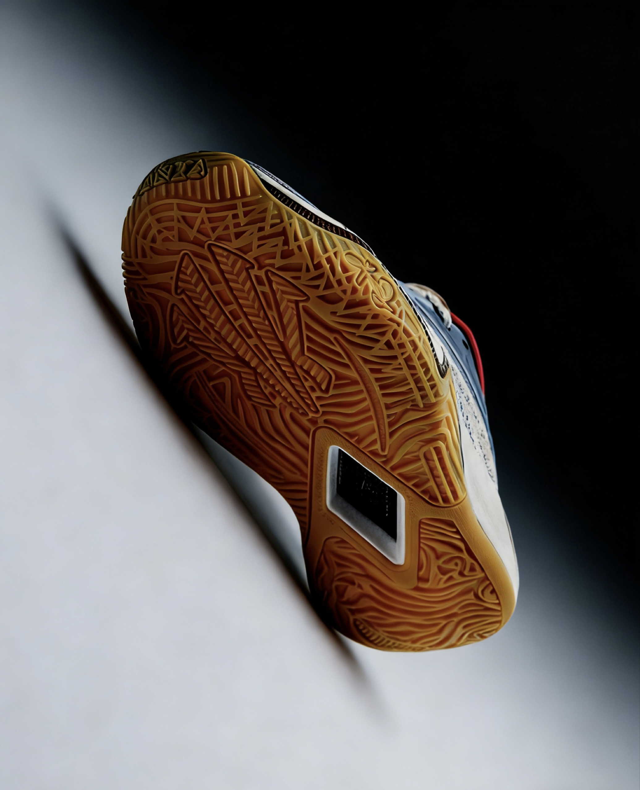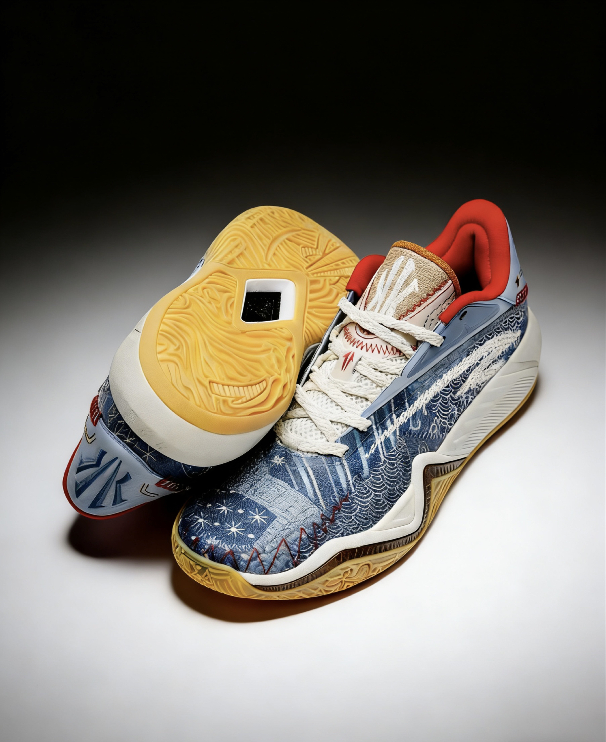 安踏欧文3代 × Sneaker Politics Patchwork联名直接把复古质感与文化故事拉满,颜值党+情怀党简直狂喜! 外观以美式拼布工艺为核心,多层丹宁蓝网眼+深浅蓝裁片拼接,水洗复古色调超有腔调;麻质鞋舌+亚麻刺绣鞋带,细节拉满;内衬红边点睛,撞色吸睛不会浮夸。后跟欧文之盾很有辨识度,球场实战、街头出街都能hold住。 作为欧文第三代签名战靴,低帮流线+稳定支撑,适配欧文式变向与节奏...