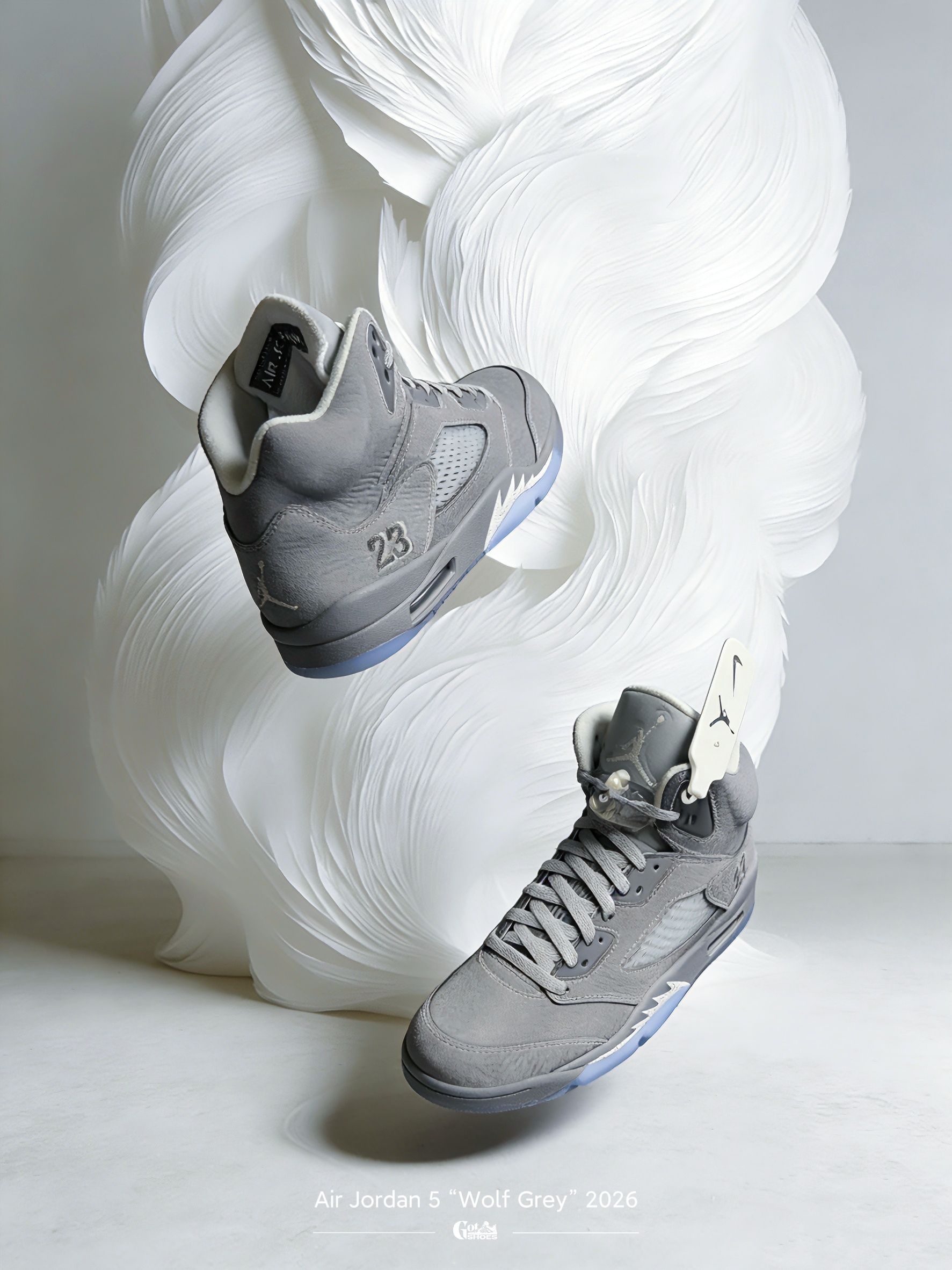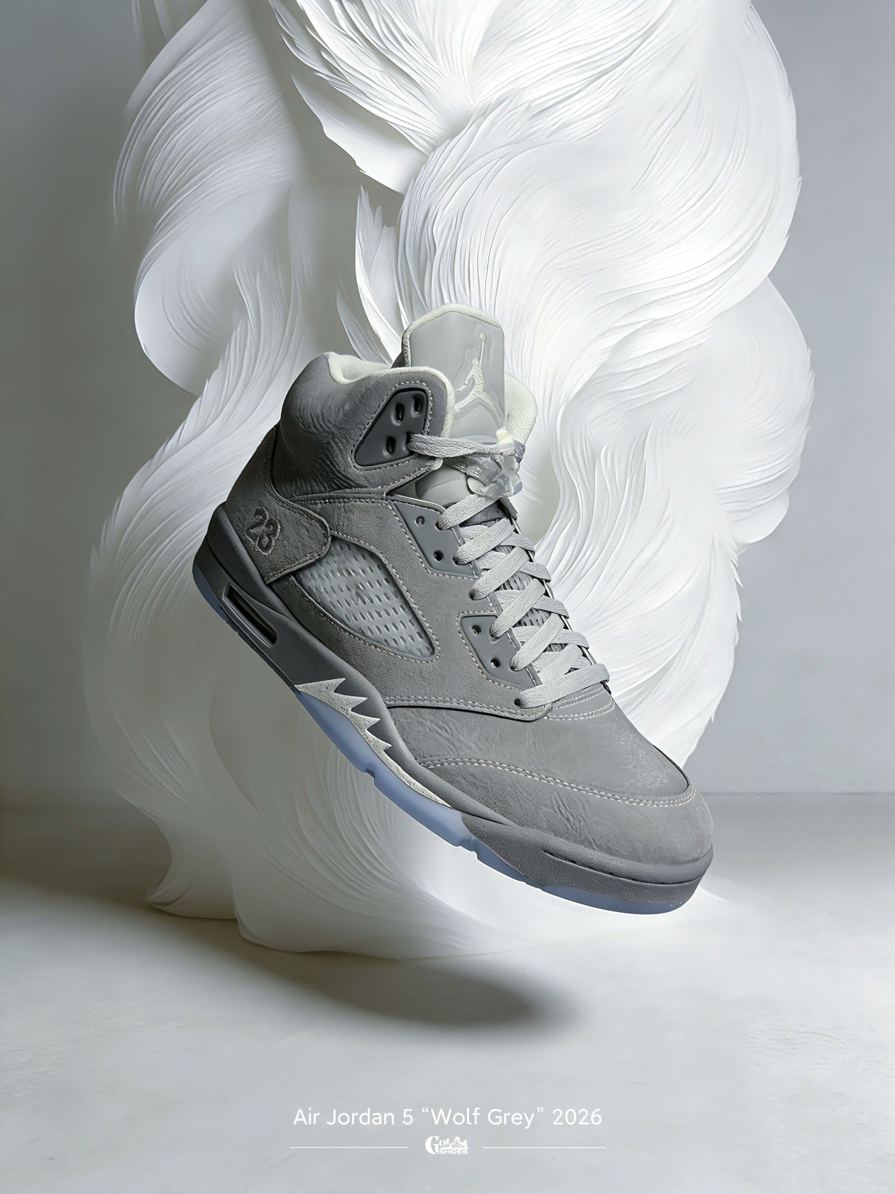 这双「狼灰」Air Jordan 5 “Wolf Grey” 虽非 OG 元年家族成员,却一直深受球鞋玩家喜爱,当年就已人气不俗。自 2011 年首发以来,此番是它的首次复刻。发售至今已近一个月,不妨一同来细赏这款 2026 版的细节。此番复刻很好地保留了当年的韵味,鞋身依旧以大面积的狼灰色牛巴革打造,视觉上高度统一。细节方面,后跟延续飞人标志,未换用 Nike Air 字样。而鞋型轮廓与外侧的“...
