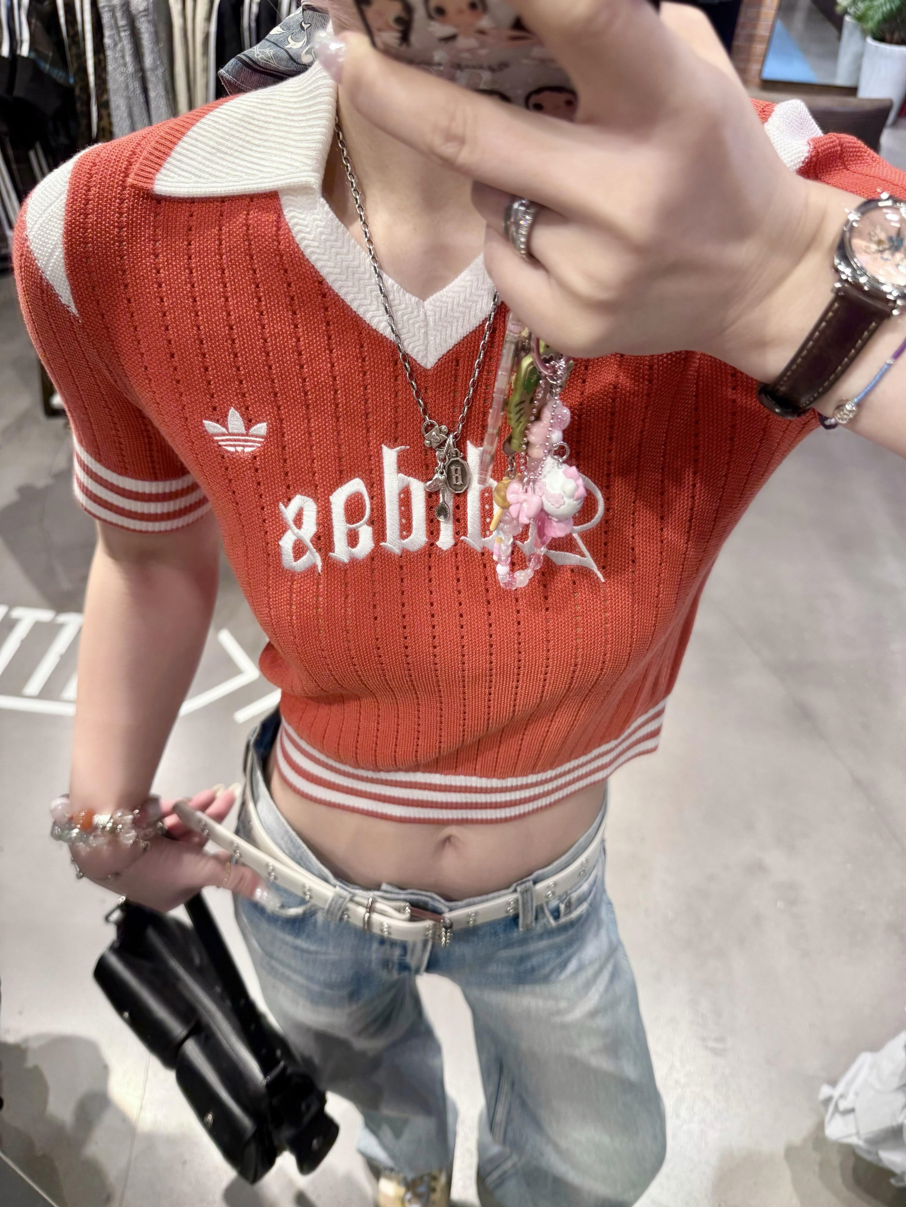 都看过来🧚🏻♀️谁还没被阿迪这件针织短袖狠狠美到! 妥妥春天第一件让我一眼心动的针织上衣~ 元气橙红撞色奶白,温柔又显白,上脸直接提亮一个度,气色好到不用化妆☁️ 经典撞色Polo翻领搭配精致小刺绣logo,简约又有细节,美式甜心氛围感直接拉满~💕 恰到好处的短款版型,温柔显瘦还显腿长,对小个子超友好! 随便搭一条牛仔裤👖,秒变清爽校园甜妹,减龄又耐看。 上身巨舒服,拍照更是巨上镜📸春夏出门随便...