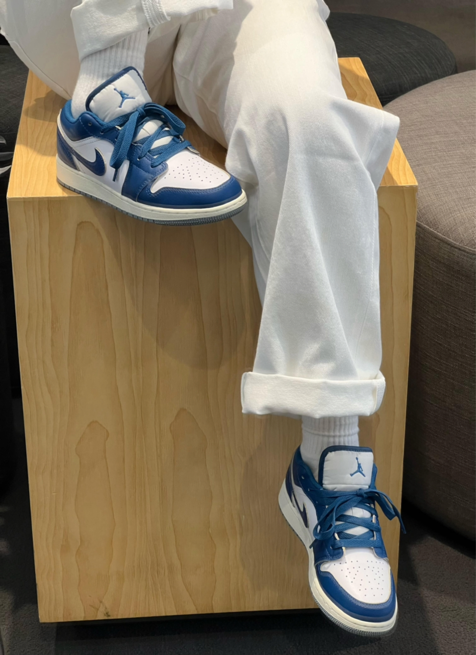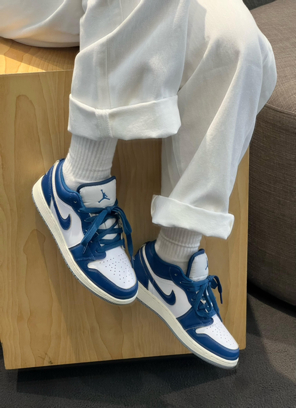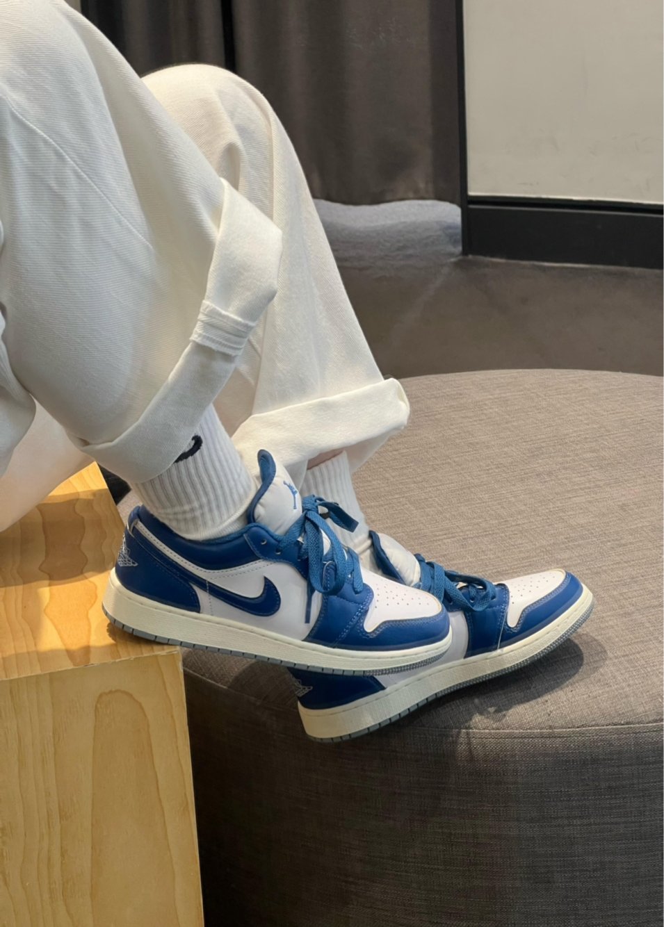 家人们!这双AJ1 Low白蓝风暴真的太香了🥹 清爽白蓝撞色+复古做旧中底,颜值直接封神 皮革鞋面质感在线,耐穿又透气,久穿不累脚 低帮版型显瘦显高,百搭到离谱,配白裤、牛仔裤都超好看 春日氛围感直接拉满,拍照巨出片,谁穿谁是少年感天花板 经典款永不过时,喜欢的宝子快冲,手慢无!