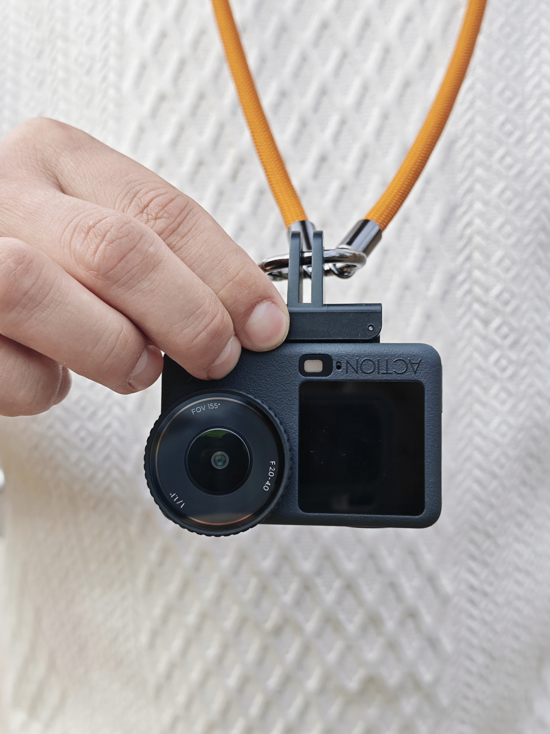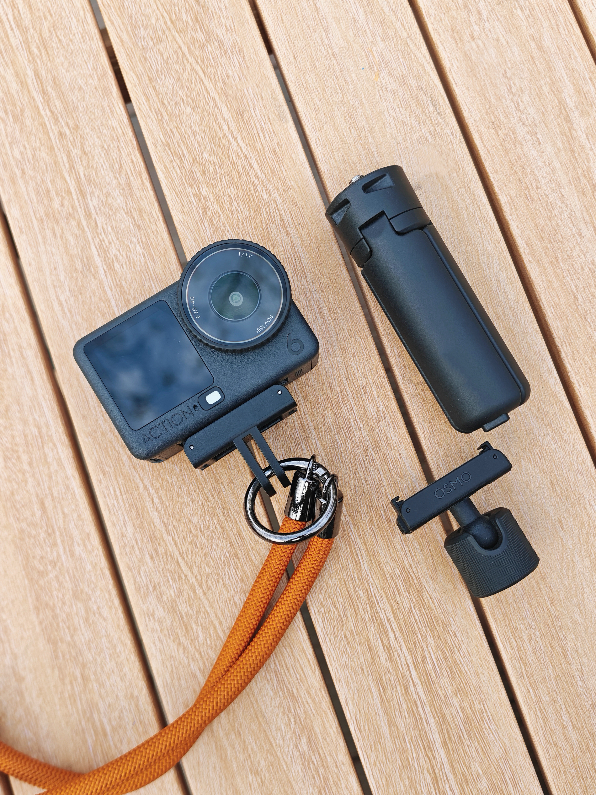 新入大疆Action6,配件一分钱💰没多花。 之前给Osmo Nano配的挂绳,也能搭配Action 6自带磁吸底座挂在胸前(其实磁吸转换底座几代都通用),用的时候拿起就拍,不用就挂在脖子上,解放双手,安全又方便。 翻出多年前Action2的磁吸万向球头(Osmo Nano也标配了这款),搭个迷你快开三脚架,既能手持又能放桌面,任意角度随意调。连Action 6的电池都和Action 5 Pr...