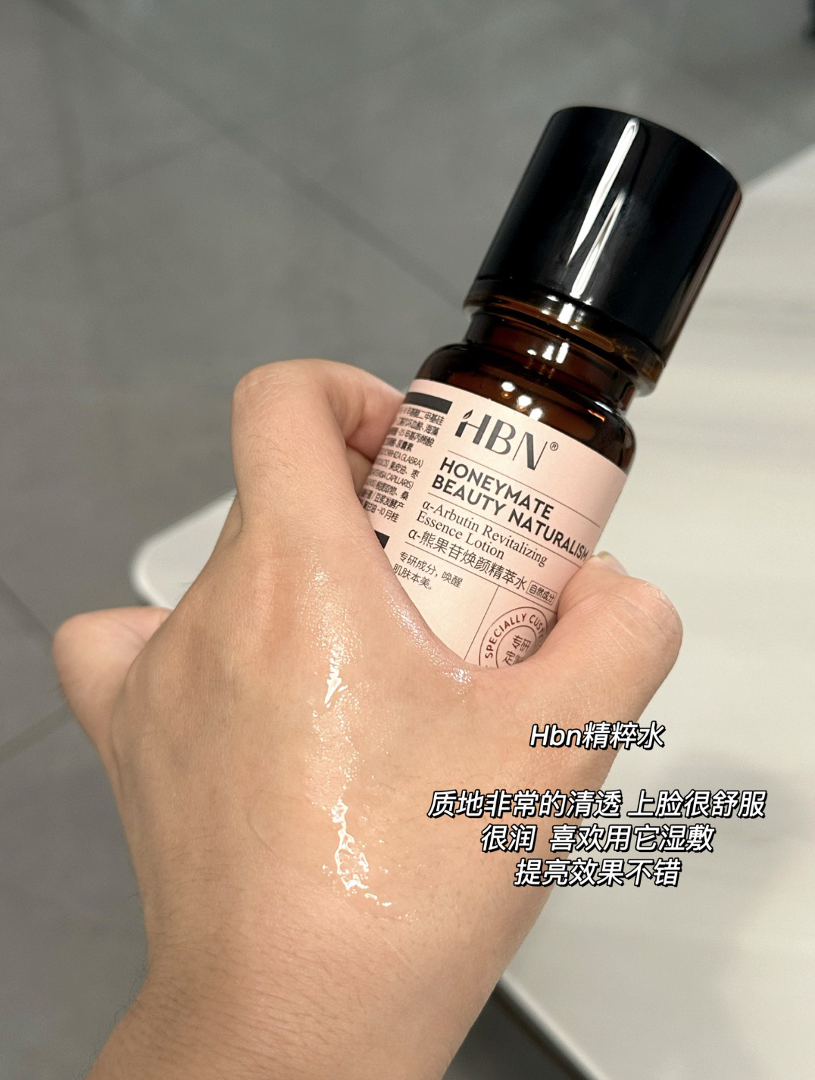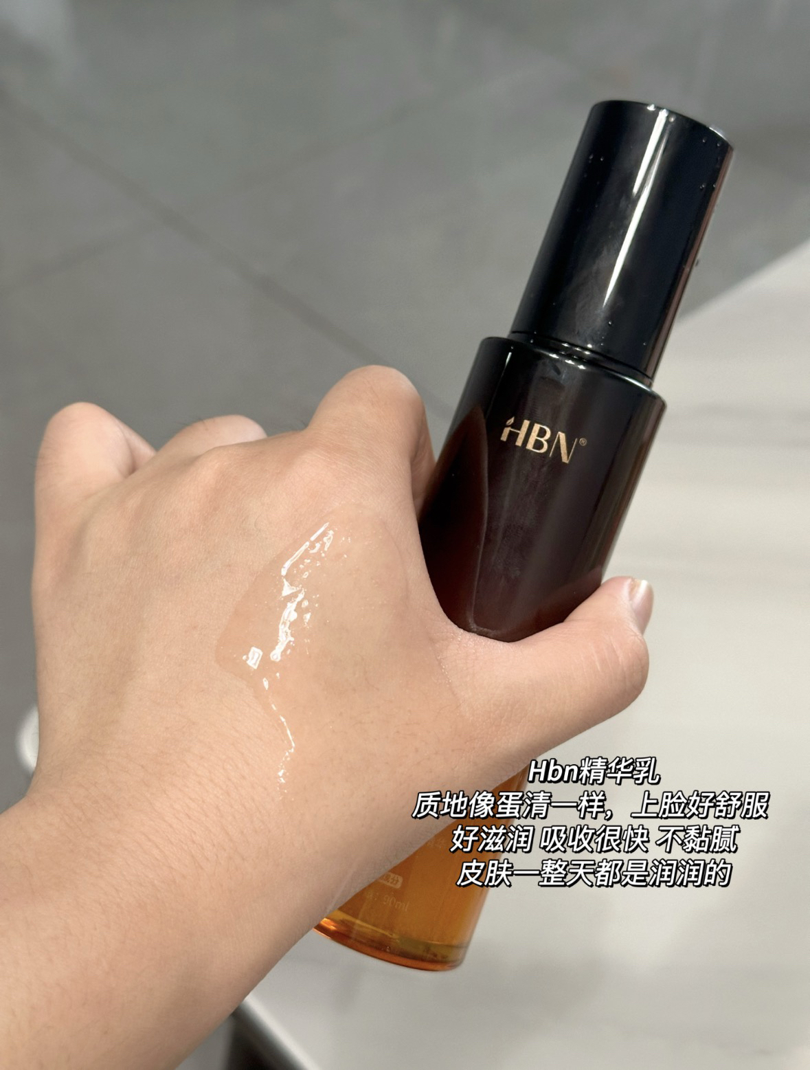 说真的!在提亮美白这事上我这大黄糙脸挺有发言权的 用过蛮多品,还是觉得HBN这套水乳?好用发光水是清透质地,吸收嘎嘎快一周我会用它湿敷2-3次补水提亮可以滴乳液质地温和又轻薄,还持有美白特证 用着特别安心 勤勤恳恳坚持用下来,脸透亮白嫩多了而且包装好看,还送好多小样!入股不亏!