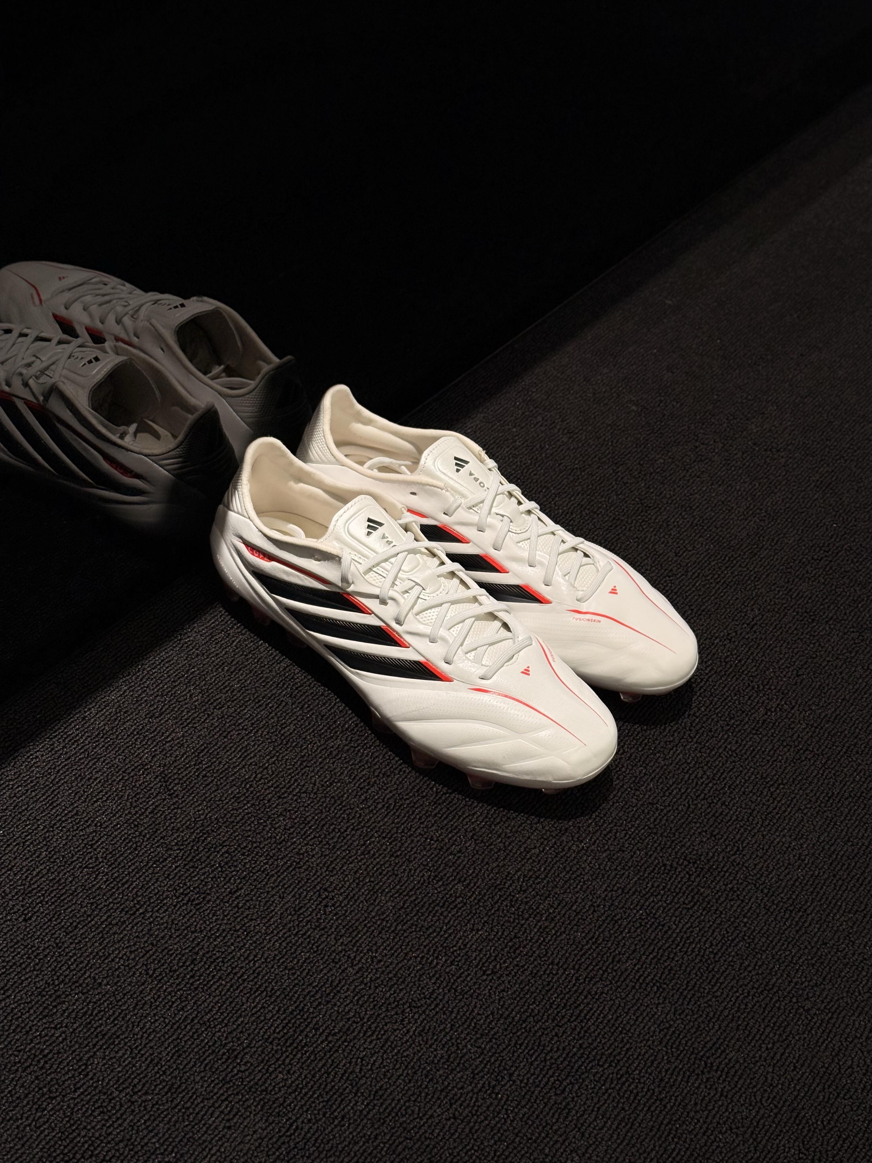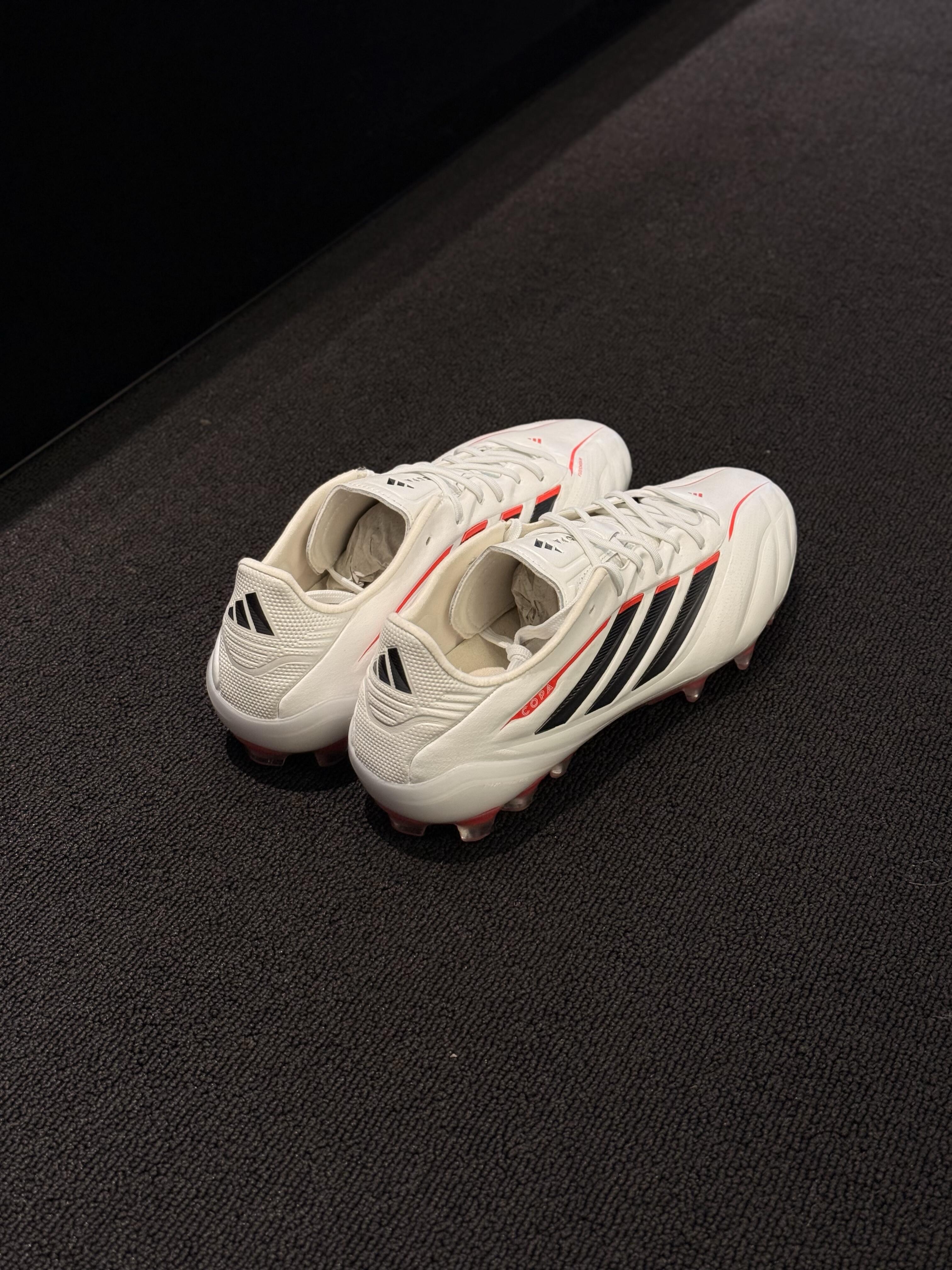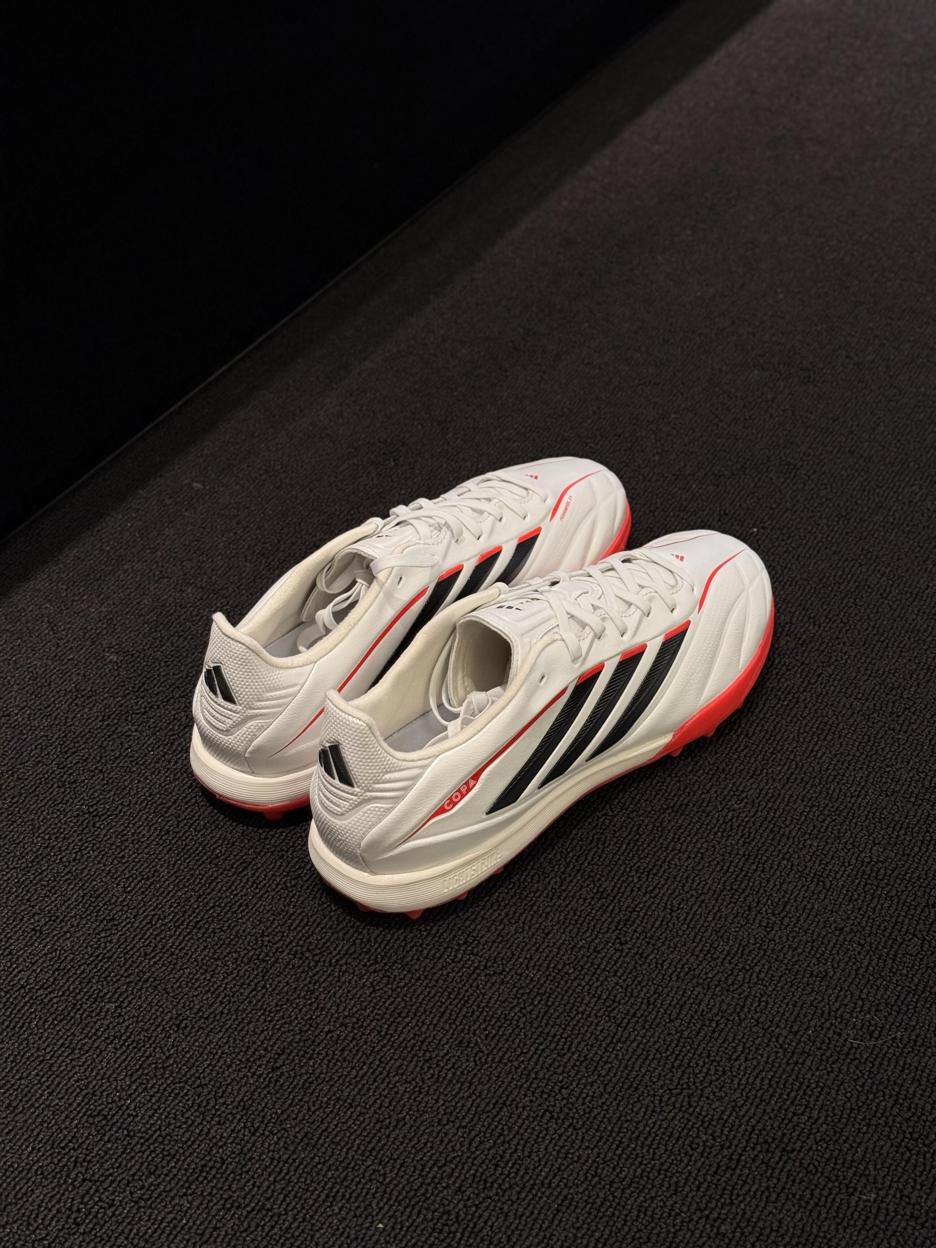 绿茵掌局,气场全开!阿迪达斯COPA白红战靴重磅登场😎 干净利落的白红撞色,经典又吸睛,上脚直接拉高全场颜值。 专为控球打造的鞋面质感,触球清晰、发力干脆,一脚触球即掌控全场节奏⚽ 无论是盘带、传球还是射门,都能给你稳稳的支撑与反馈,球场表现直接拉满。 颜值与实力双在线,实战党与颜值党都能狠狠爱住! 球场想要更出彩,这双COPA别错过,快来冲吧