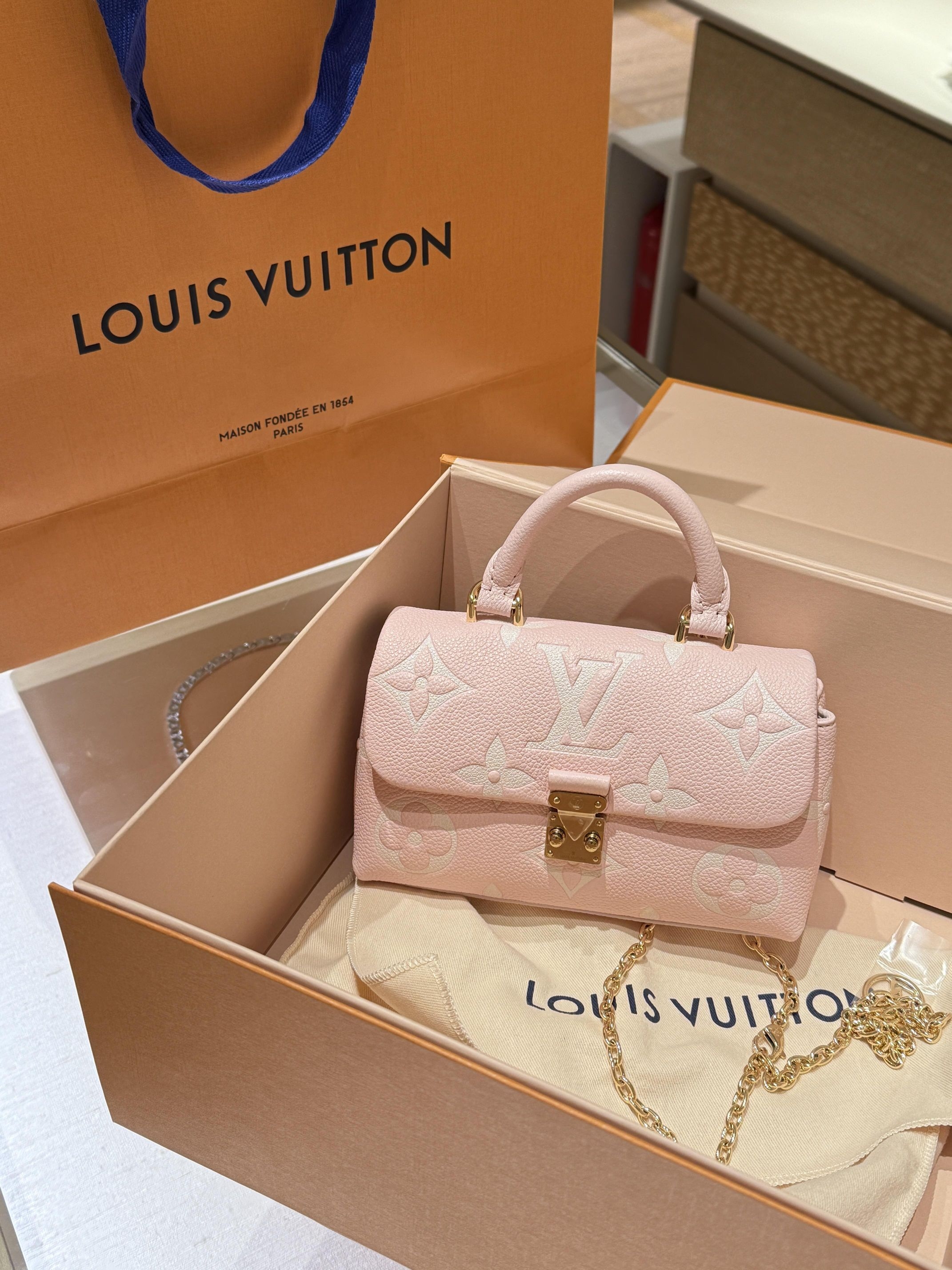 🌸卡思乐MINI马甲包,樱花粉植鞣牛皮,柔软细腻有自然褶皱,质感满分!正面四叶草压花,简约又有辨识度✨。包型小巧轻便,手提斜挎都OK,通勤、踏青、日常出街都能轻松驾驭。内部空间合理,手机、钱包、化妆品都能装下,实用又时髦,是春夏百搭神器!
