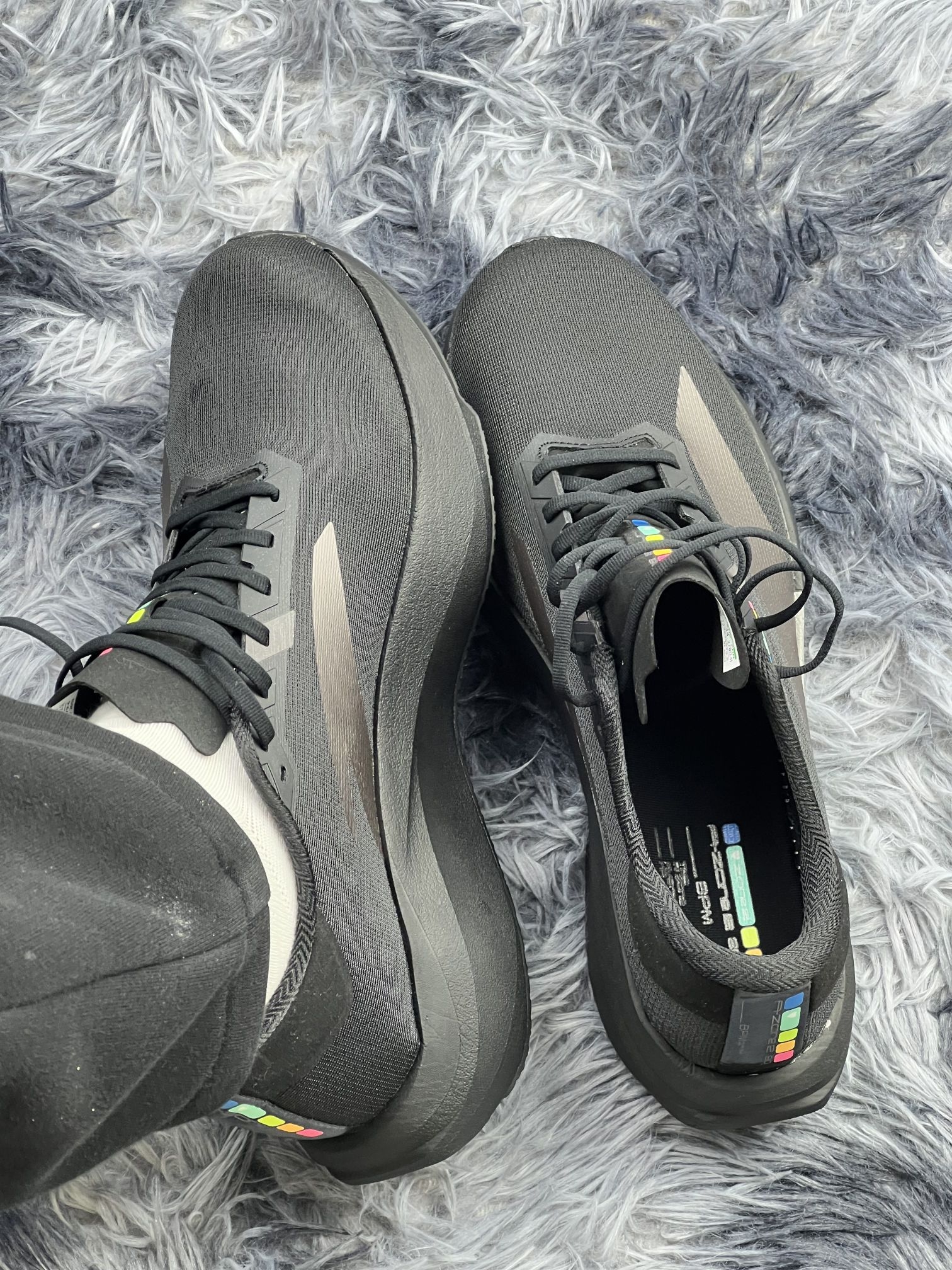 这双安踏二区心率90,穿了快两周,聊聊真实感受。 日常通勤:鞋型偏利落,全黑配色挺低调,搭运动裤、牛仔裤都不违和,鞋面透气还行,春天穿不闷脚。中底软弹感明显,走路久了脚不酸,但也不是那种踩屎感,支撑刚好。 小缺点也很实在:鞋舌有点薄,系紧鞋带后会有点压脚背;鞋楦偏窄,宽脚的朋友得大半码;鞋底纹路偏浅,雨天走瓷砖路有点滑,得小心。 适合场景:日常走路、慢跑都ok,长距离竞速就别指望了,毕...