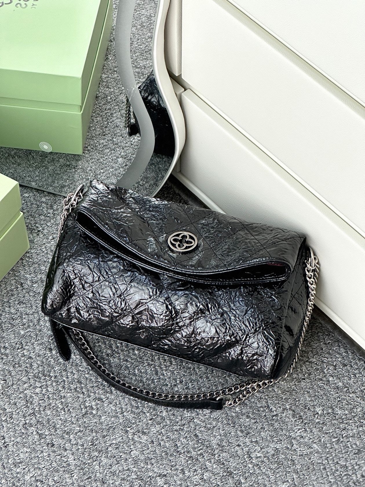 本篇笔记关联了cassile/卡思乐 小众设计菱格中性风欧美时尚百搭高级感大容量褶皱牛皮拼合成革链条包腋下包流浪包单肩斜挎包 黑色等商品,为用户提供真实的使用体验和购买参考。