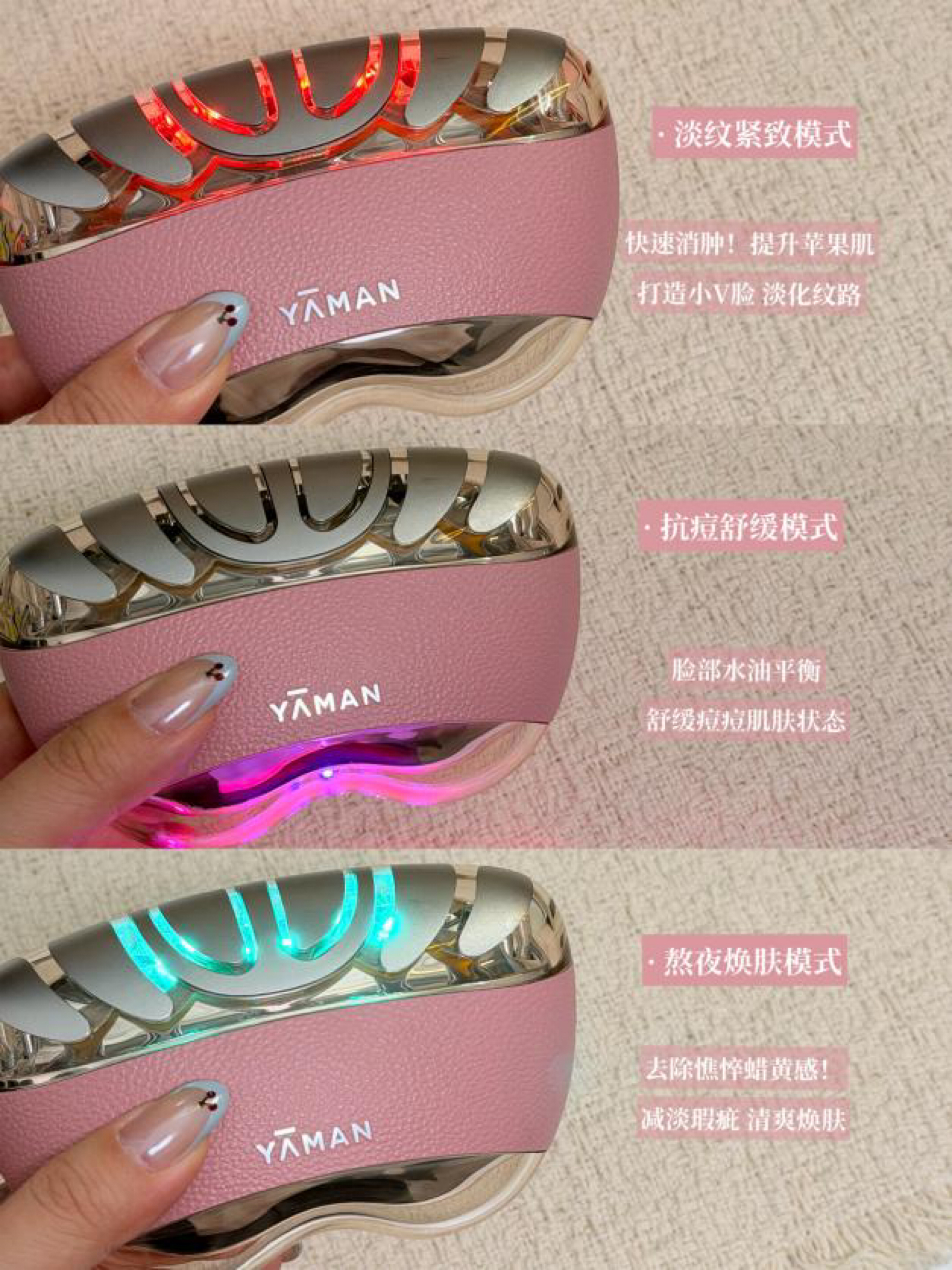最近熬夜+空调房双重debuff,下颌线消失、疲态明显。 精挑细选入了一台美容仪,雅萌闪修仪pro 效果很明显,尤其是我一直在意的口角年轻化,表现的也很给力 机身3种模式➕小🍊序9大模式,对我来说完全够用 不用专属的凝胶耗材,手上现有的精华面霜,搭配着用就ok,太方便了!!! 完全不需要改变护肤习惯,懒人福音,轻轻松松就坚持下来了,实用性拉满~ 分享几个我日常自用的搭配: ✅红光-紧致淡纹模式...