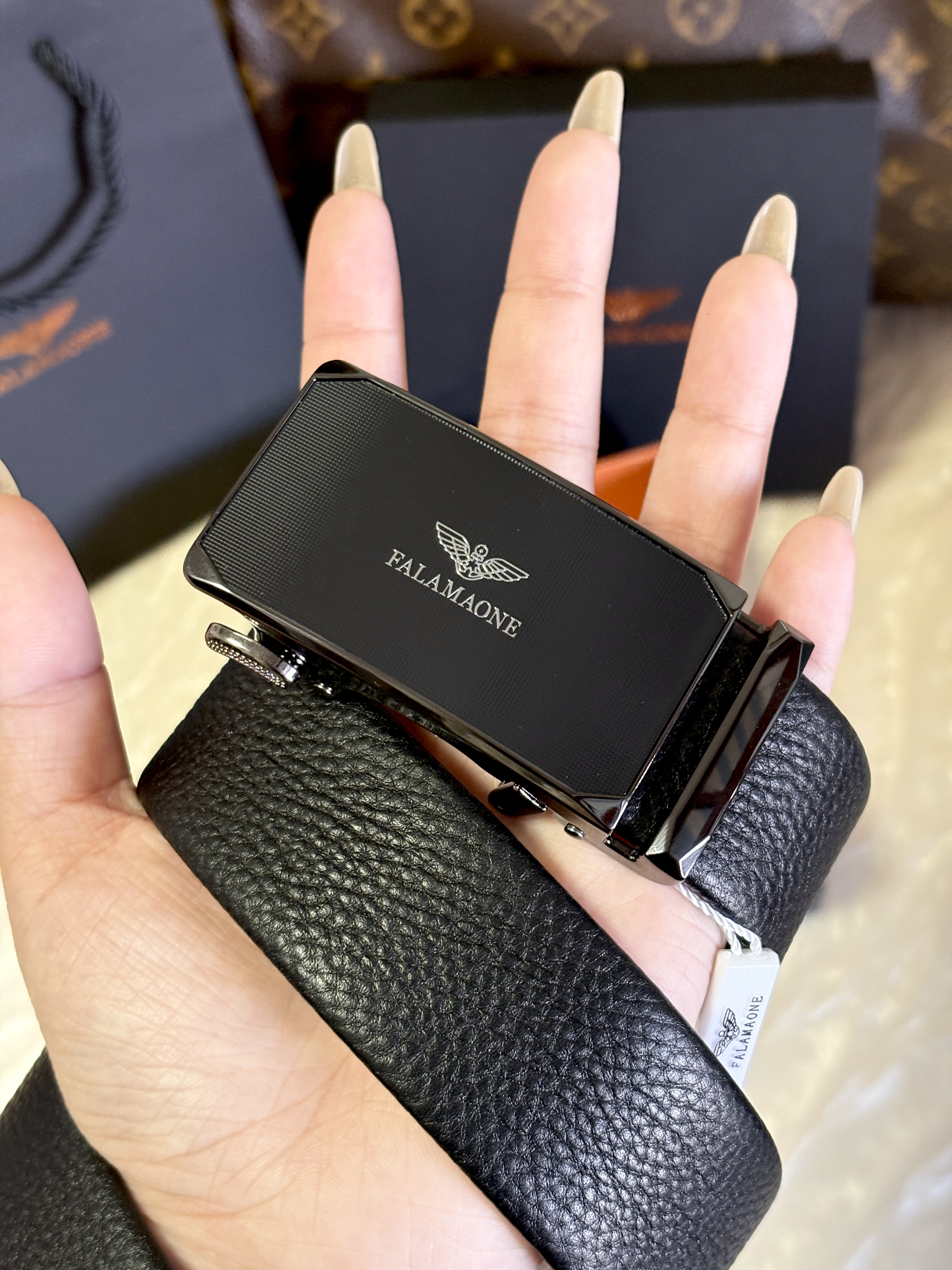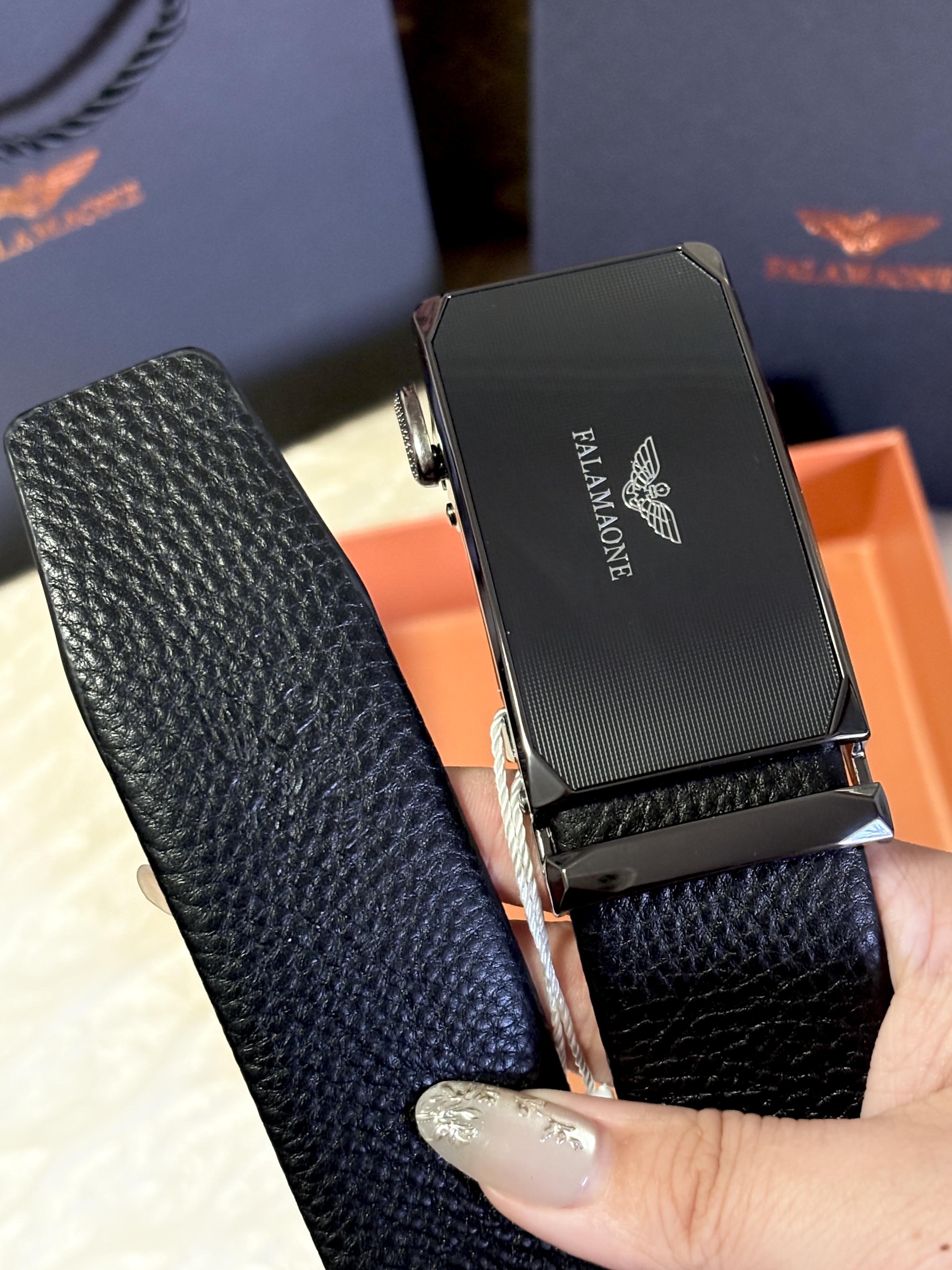 这条皮带简直颜值质感双在线 选礼物尊嘟得挑实用的~ 法莱阿玛尼这条皮带就挺不错 礼盒包装送人敲体面 简约大气的合金自动扣头 日常用也hin方便 皮带用的是双层头层牛皮 手感柔软还耐磨 做工细节精致 风格百搭 休闲商务穿搭都能驾驭 不管是自己戴还是送礼都合适 实用又有档次 送人不出错