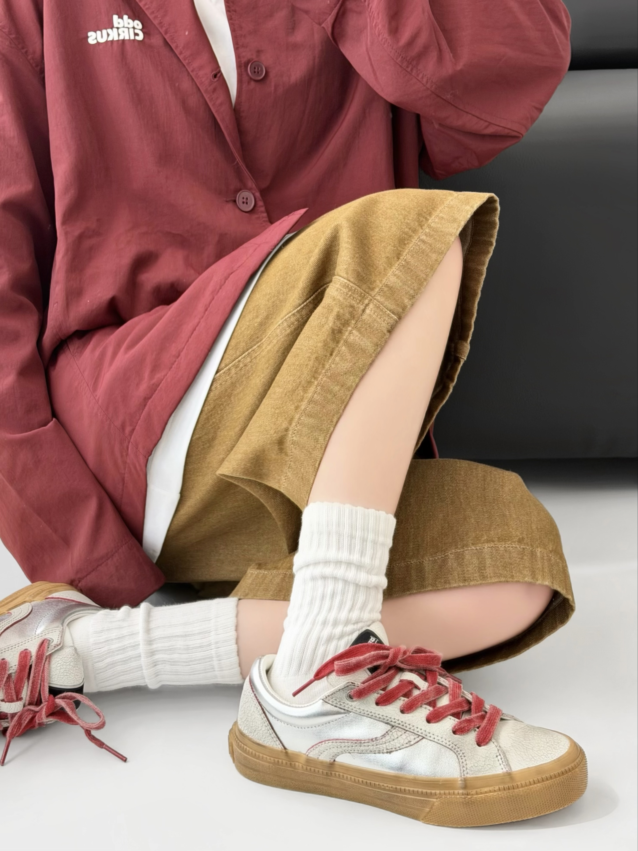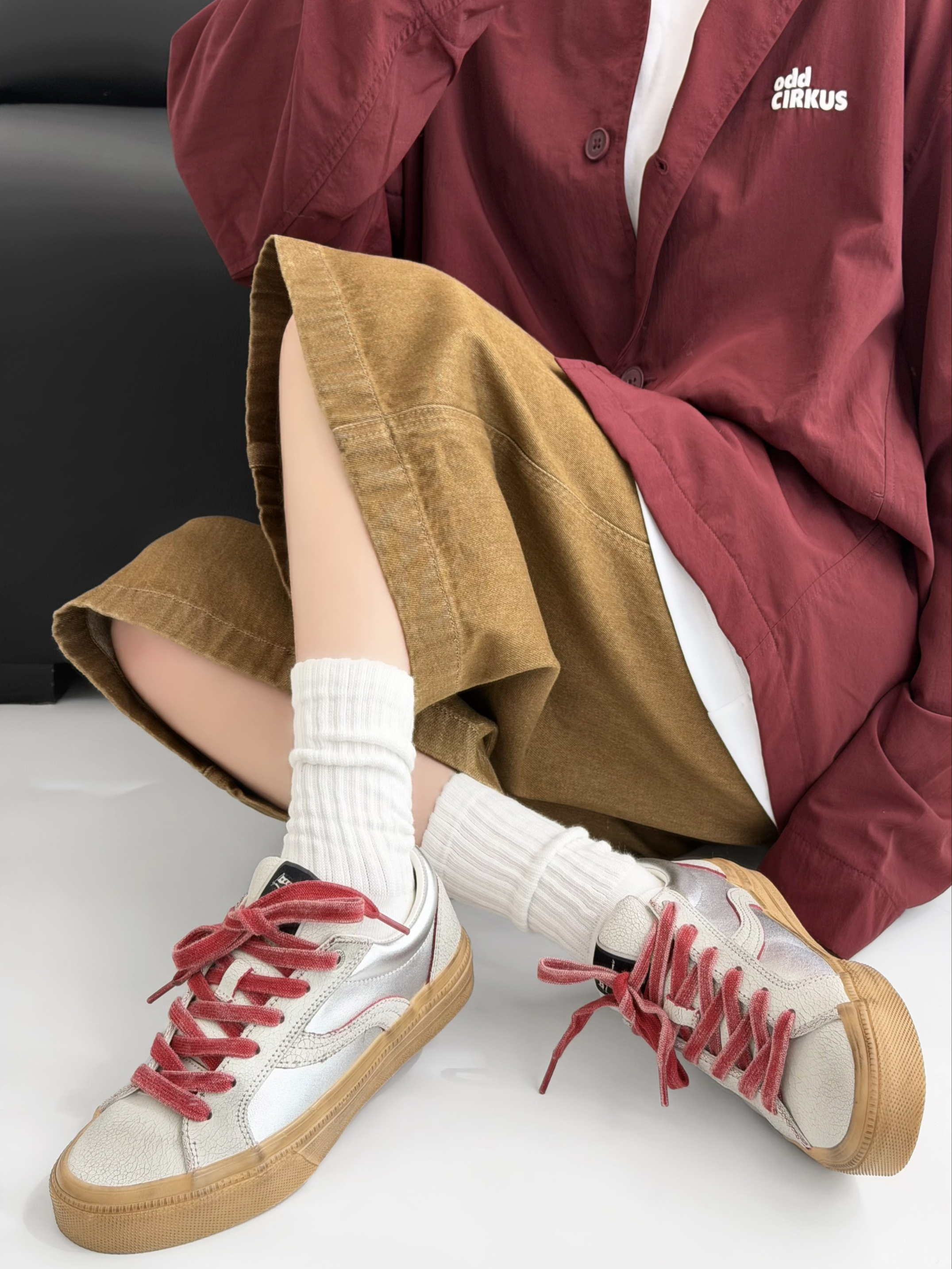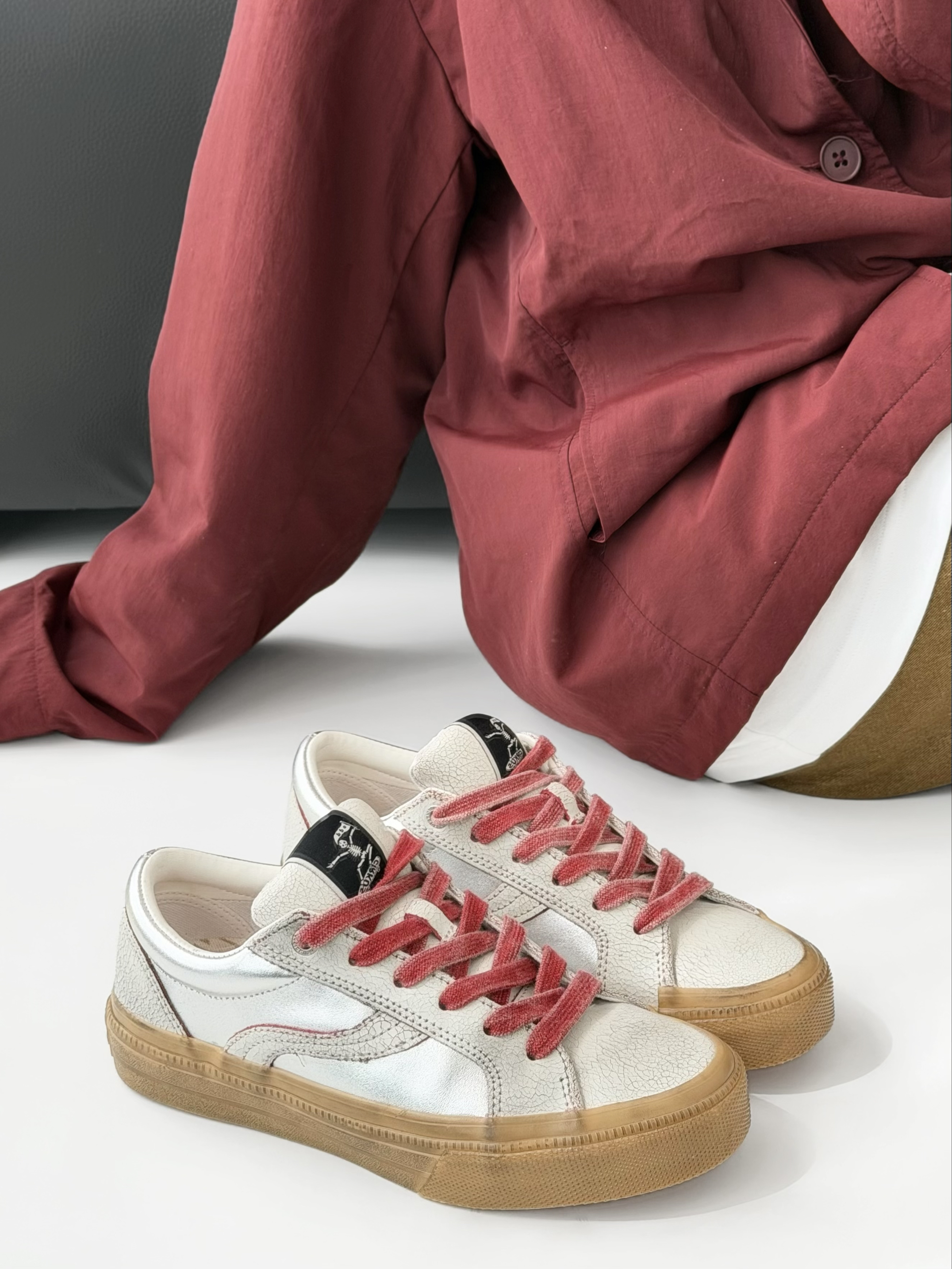 帅不帅!!谁还没双越穿越帅的鞋! 滑板鞋千千万🛹 但被会 “开花” 的滑板鞋狠狠戳中! 就是这双oddCIRKUS「ASTLEY PRO LOW 」爆焰银 是我见过最特别的一双!! 这双会蜕变的滑板鞋真的太有灵魂了 白色爆裂纹的皮面 随着一次次刷板、摩擦会剥落、开裂 里面的红色肌理就会慢慢露出来 被磨出来的质感,会变的独一无二 水洗做旧的红鞋带,擦脏的生胶色鞋底 复古金属银眼扣再和银色鞋面...