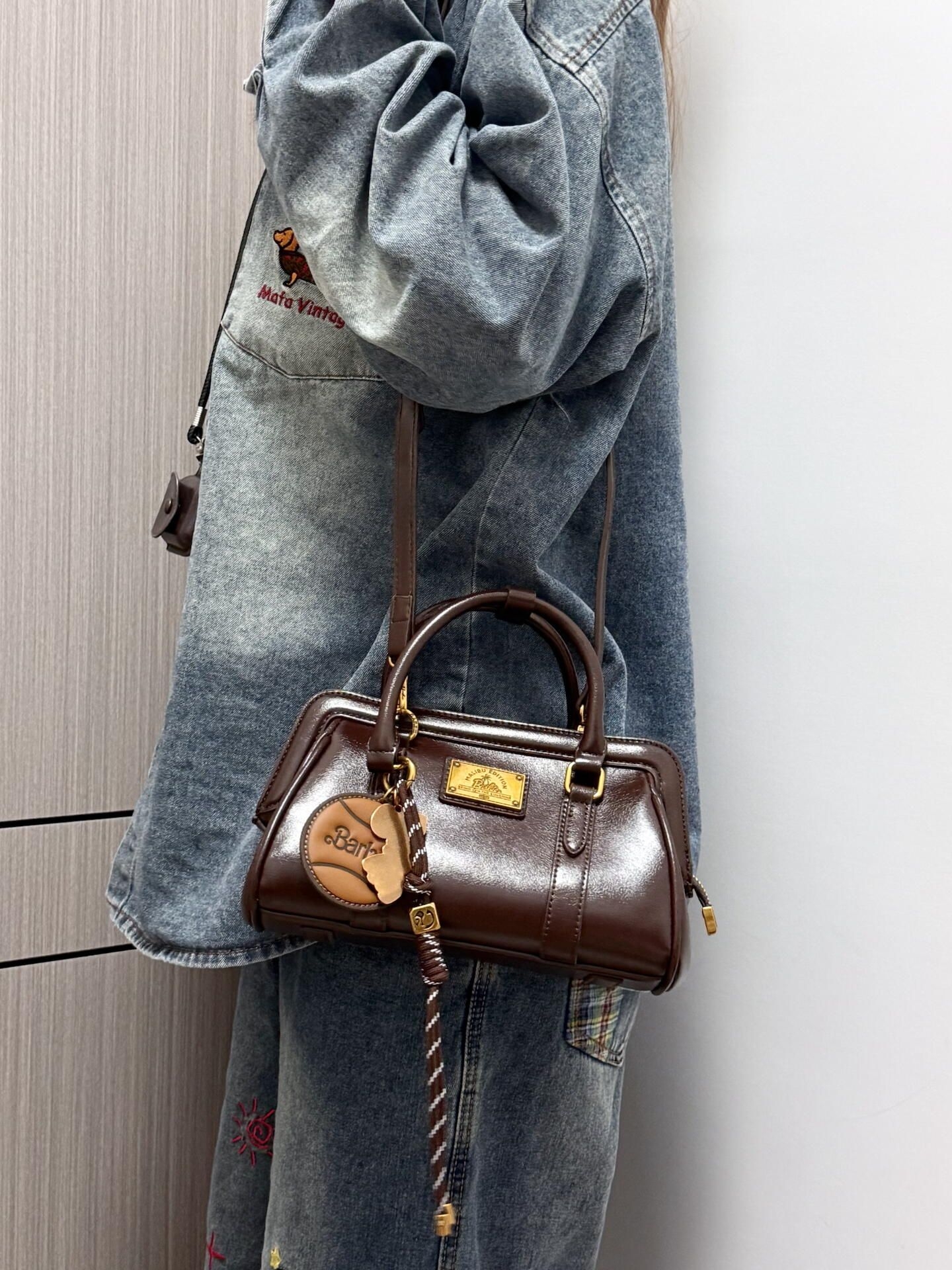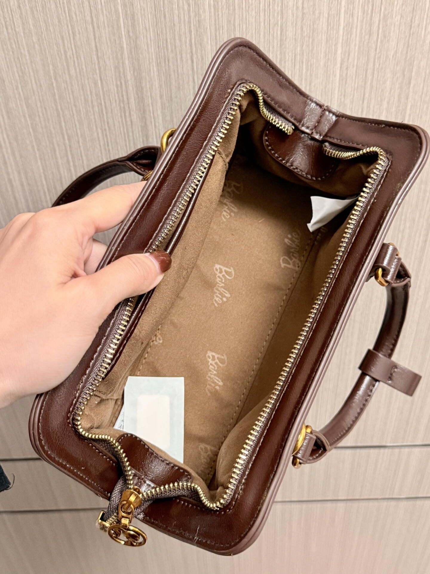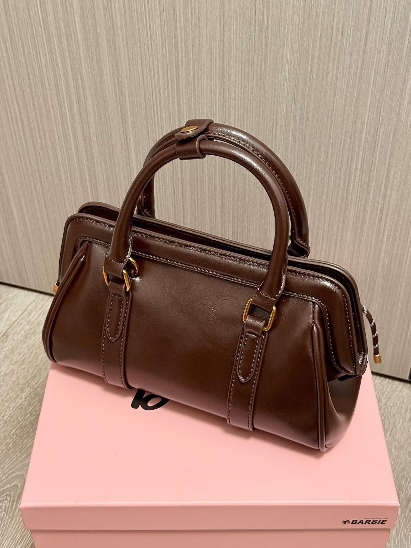 最近天天拎着这个芭比小包包出门,棕/黑两色都耐看,PU皮软乎乎的还耐磨。小号尺寸装手机、口红、钥匙刚好,手提斜挎都顺手,搭卫衣、小裙子都不违和,百元价位真的闭眼冲!