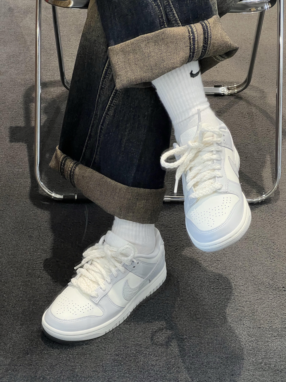 沃趣!这双灰白浮雕Dunk我真的很需要‼️高级感直接封神 沃趣!这双灰白浮雕Dunk我真的很需要‼️ 整双鞋以干净白色为主调,搭配浅灰色框架勾勒轮廓, 简约干净却超有层次感,日常百搭完全不挑穿搭。 全皮革材质质感拉满,鞋头透气孔设计清爽不闷脚, 侧身Swoosh特别采用立体浮雕工艺,精致又高级, 再配上麻花编织鞋带,瞬间摆脱基础款的单调。 鞋垫与后跟Nike标识都做了创新细节, 后跟还点...
