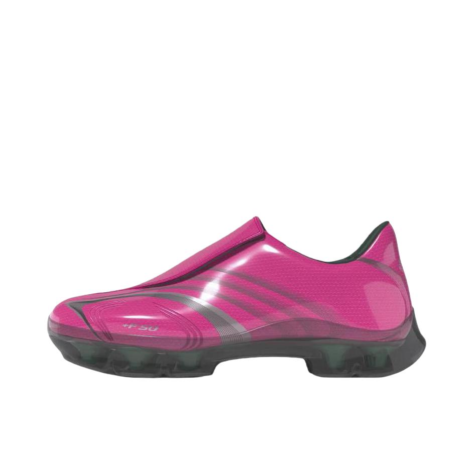 Y2K辣妹本命鞋|电光粉F50直接封神💖 谁懂啊!这双电光粉F50也太绝了✨ 高饱和电光粉上脚又甜又炸,自带Y2K千禧辣妹滤镜, 无鞋带设计利落又前卫,穿脱超方便, 搭配透明果冻大底,复古赛车鞋DNA狠狠动了! 流线鞋型超显脚瘦,街头感拉满, 搭配工装裤、短裙都超吸睛, 辣妹出街一脚拿捏,颜值与个性双双拉满, 千禧风爱好者直接冲就完事!